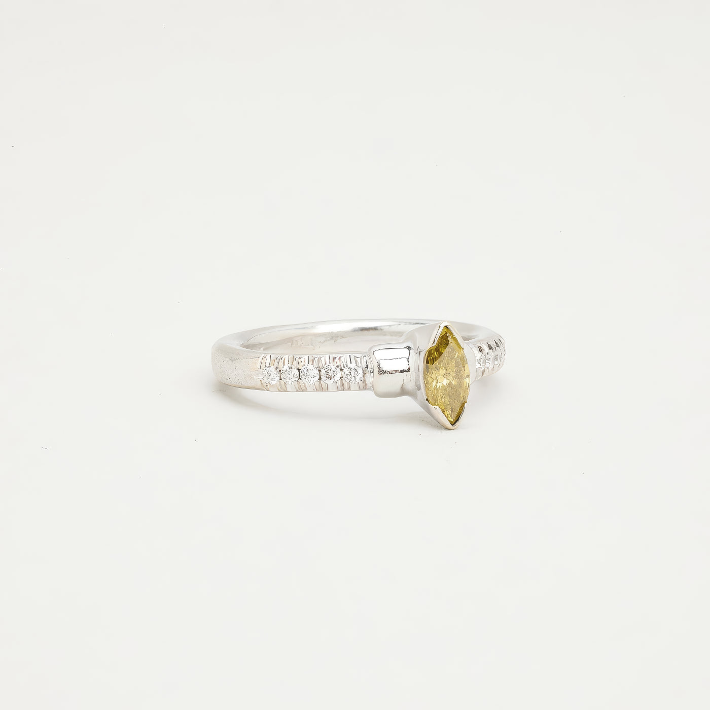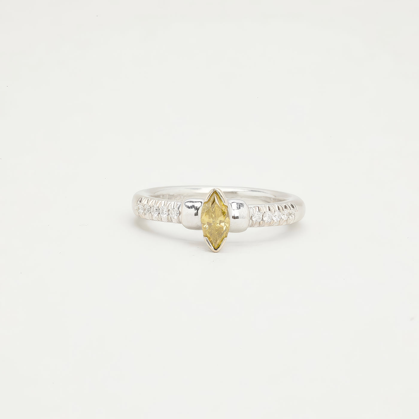 Marquisring med diamant (0.11 ct) i 14K hvidguld med en diamant, str. 51