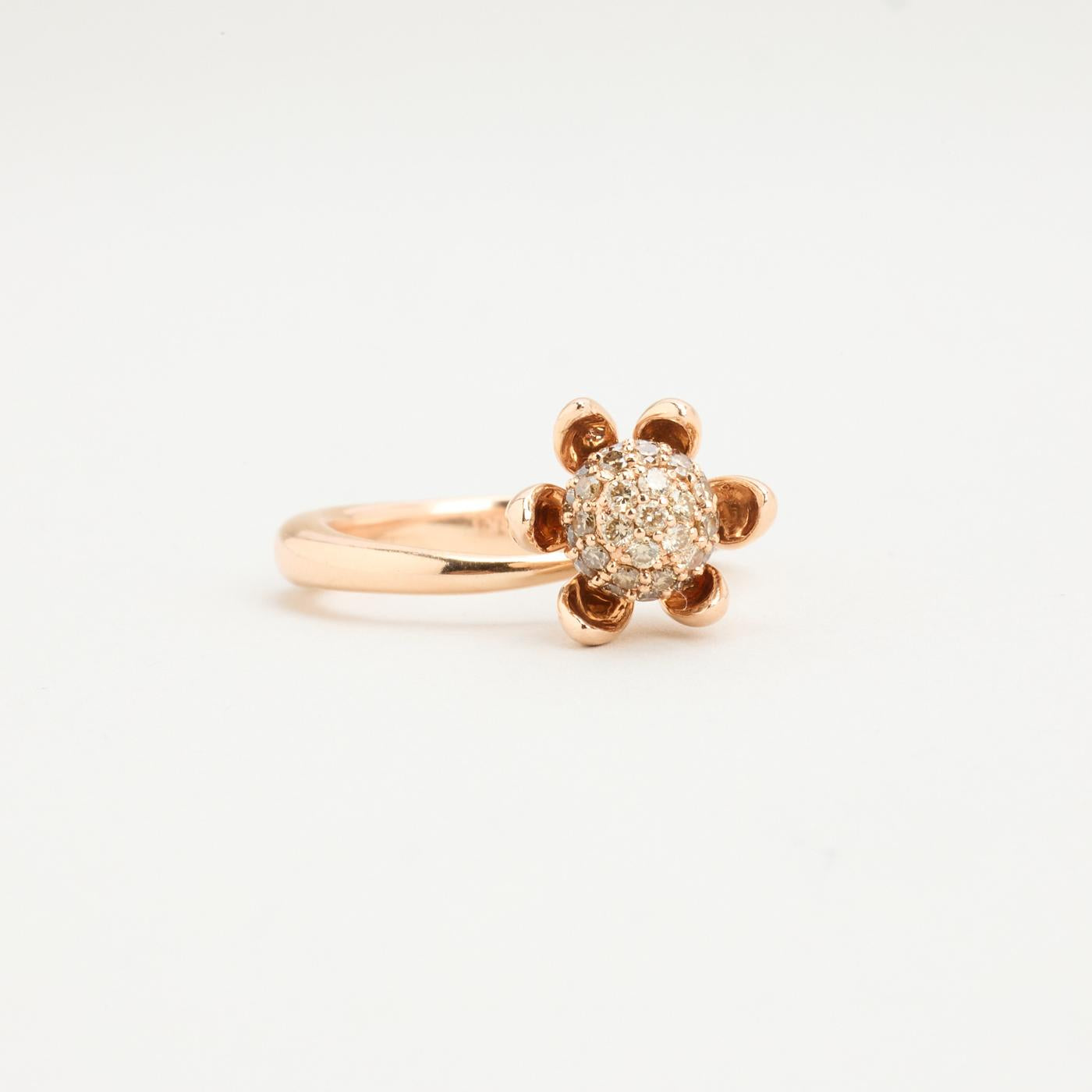 Blomster ring i 14K rosaguld, med diamanter (0,68 ct), Str. 54