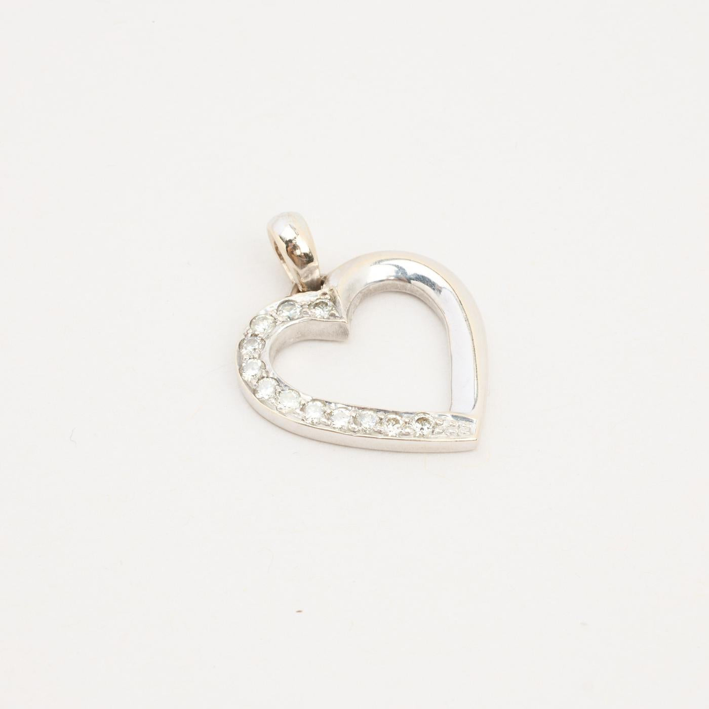 Hjerte vedhæng i 18K hvidguld med diamanter (0,25 ct), højde 2,5 cm