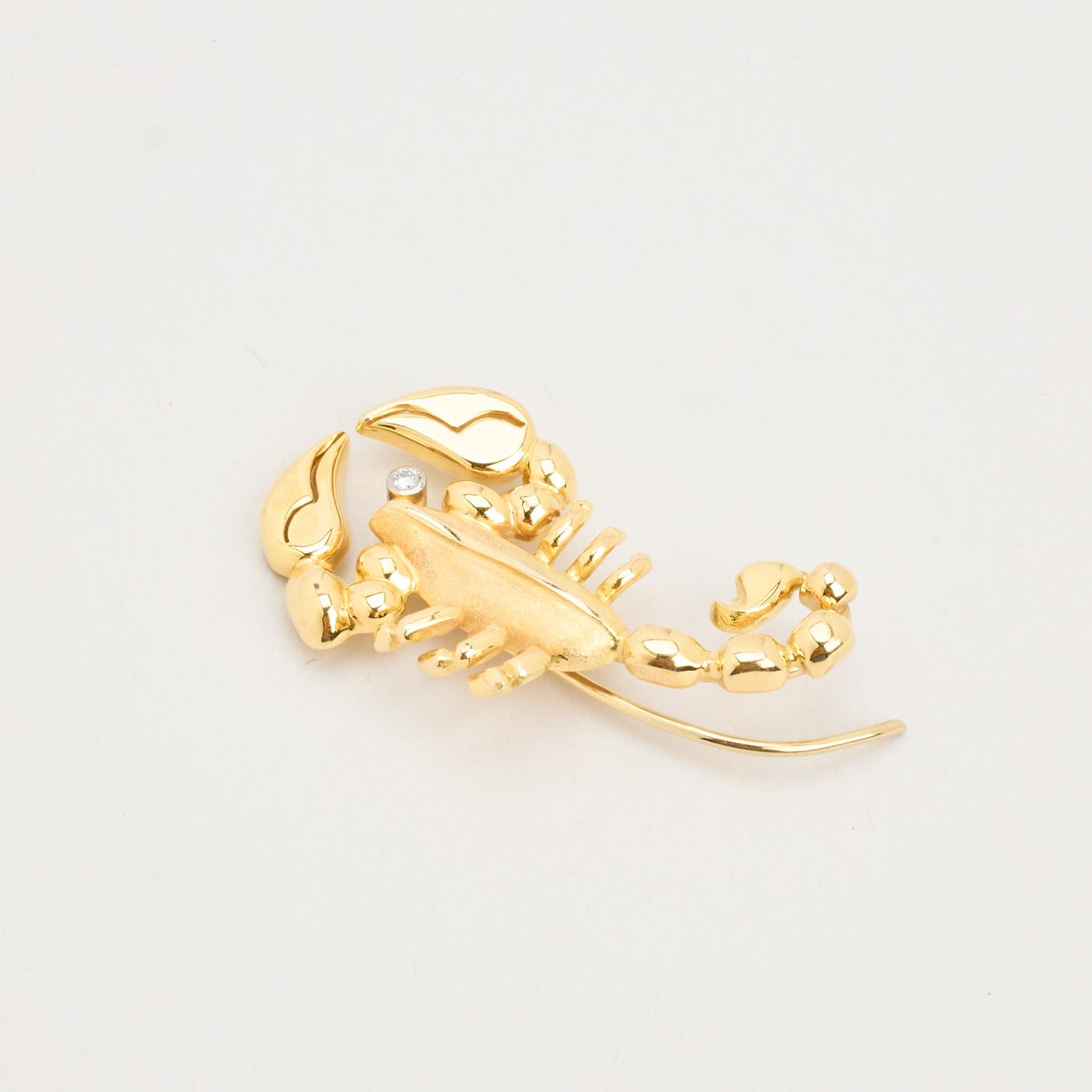 Broche med diamant (0.02 ct) i 14 karat, 5 cm