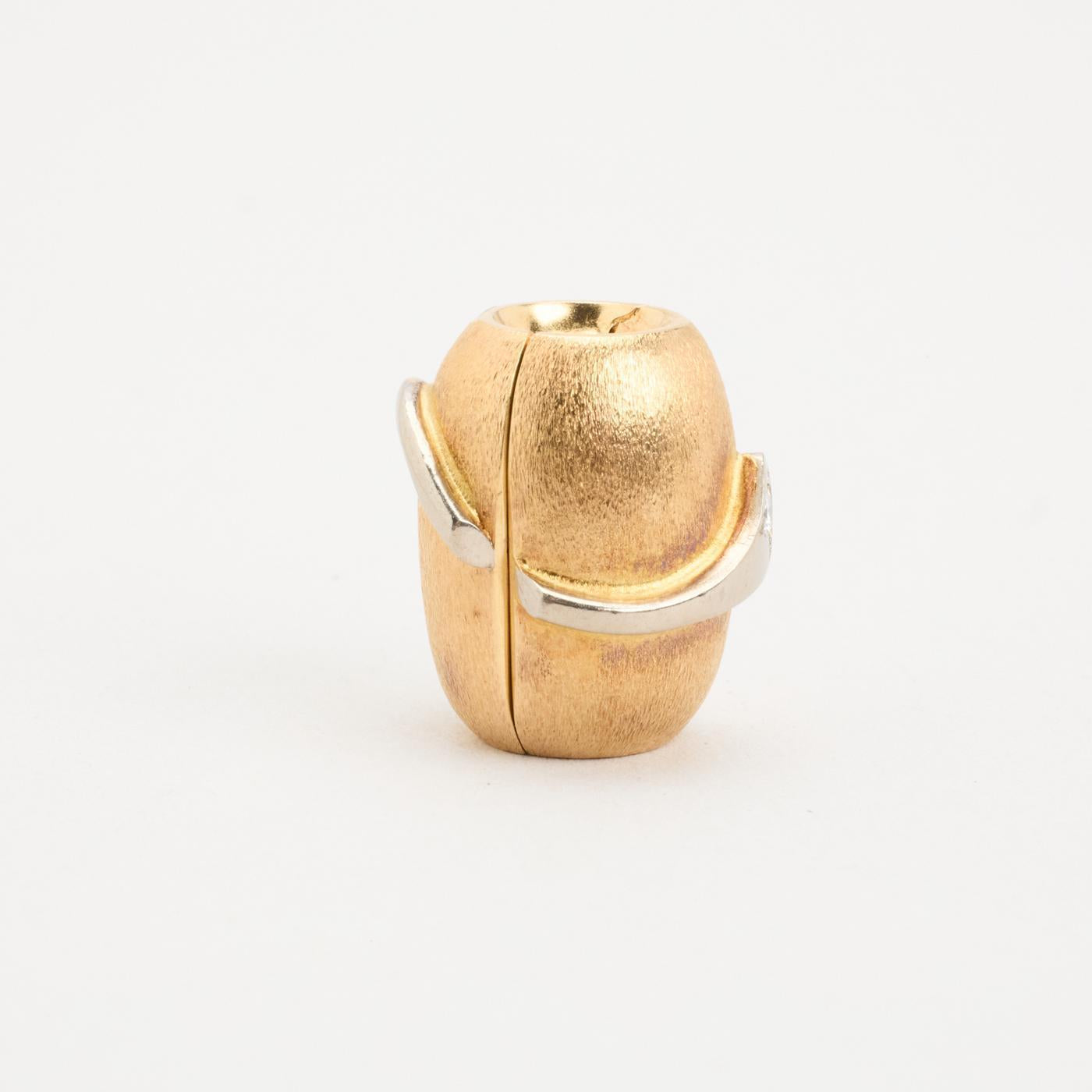 Perlelås i 14K guld og hvidguld med en diamant (0,04 ct), 1,6 cm