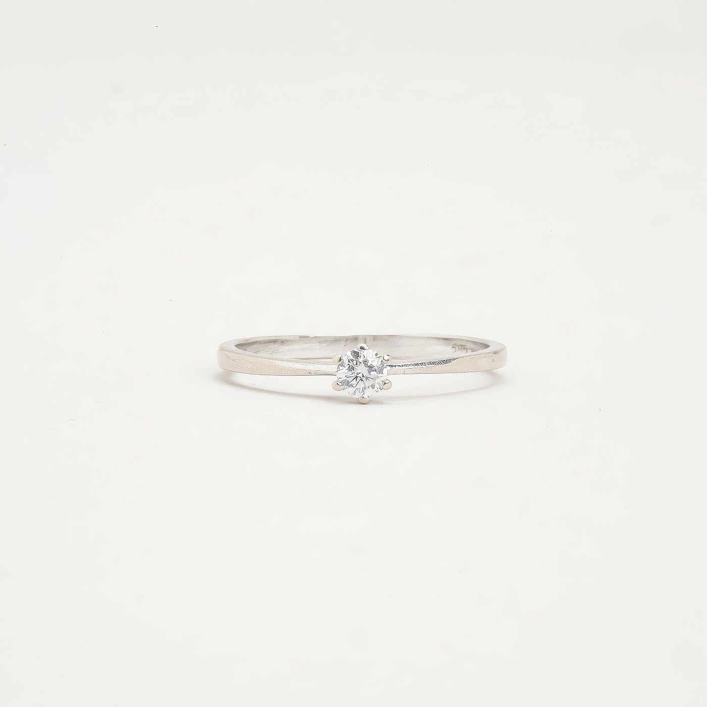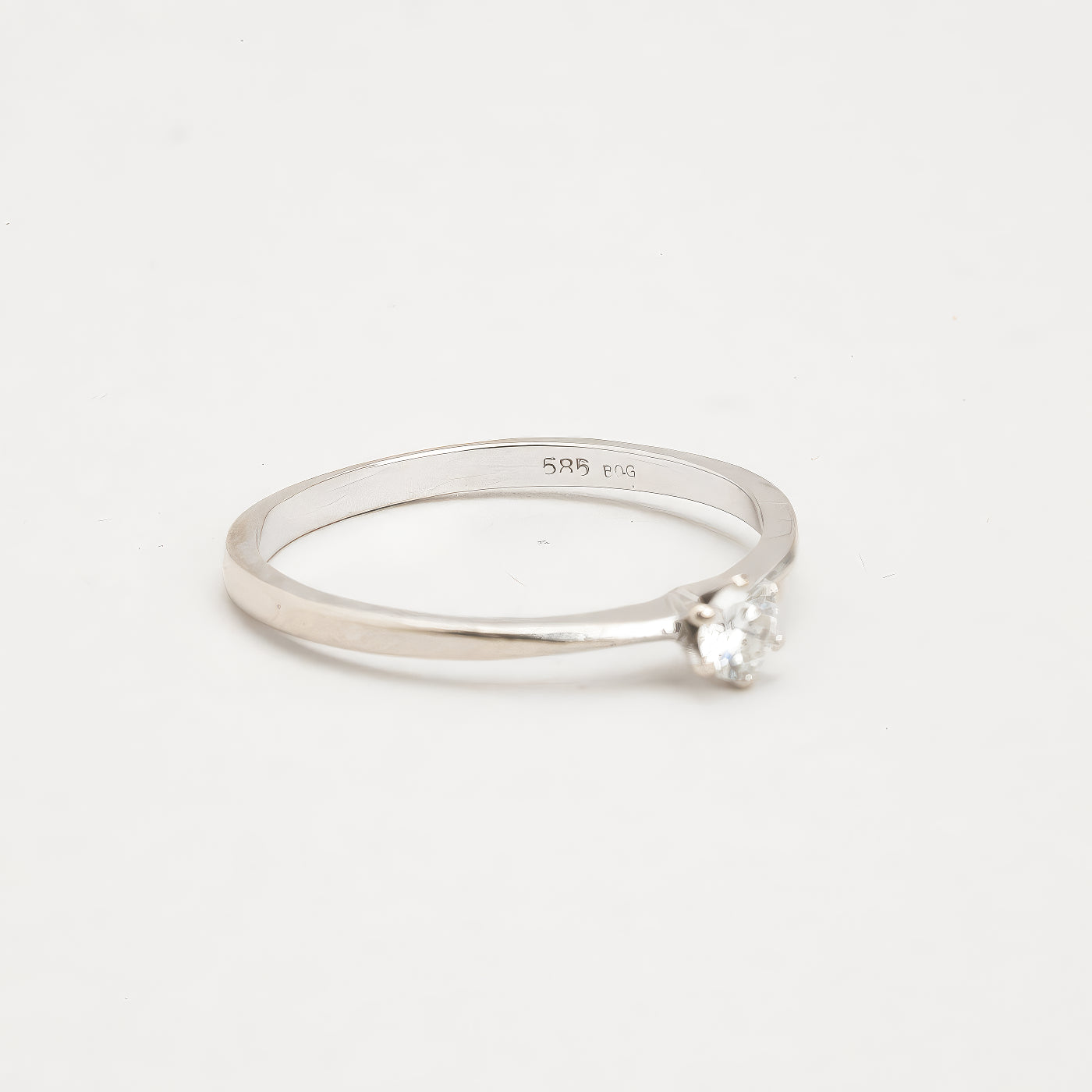 Solitairering med diamant (0.15 ct) i 14K hvidguld, str. 57