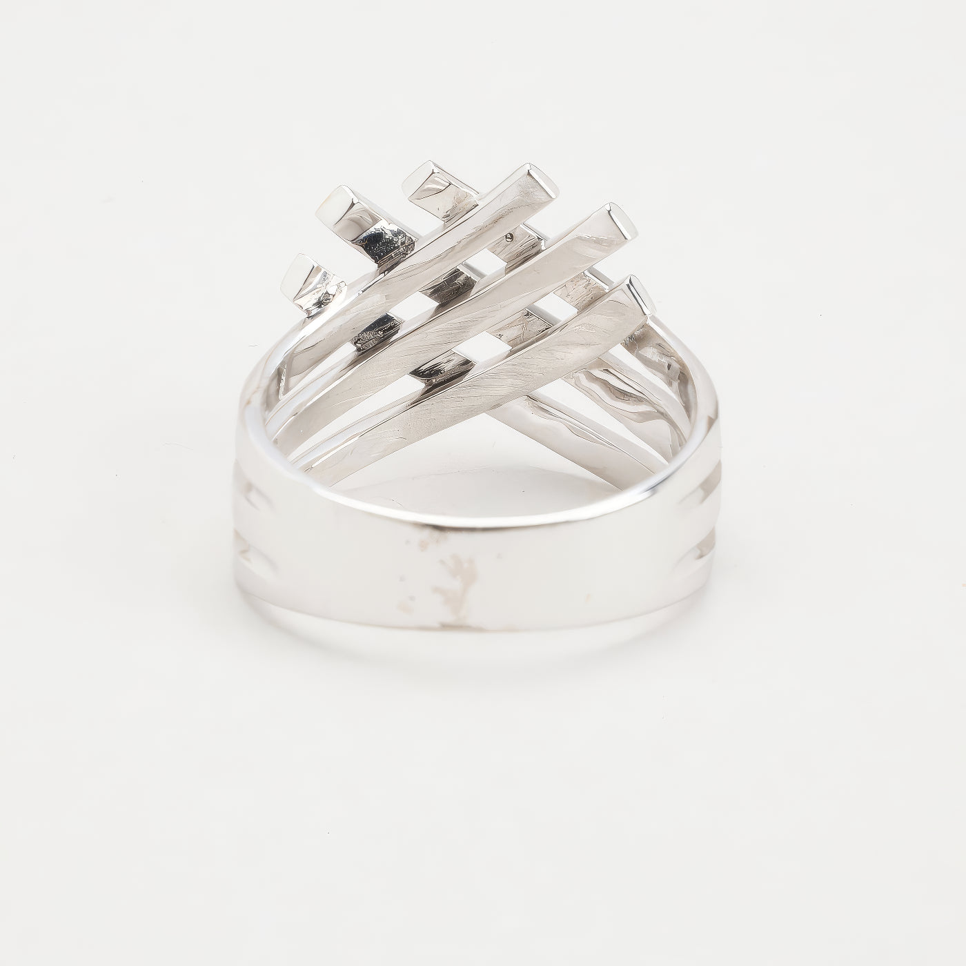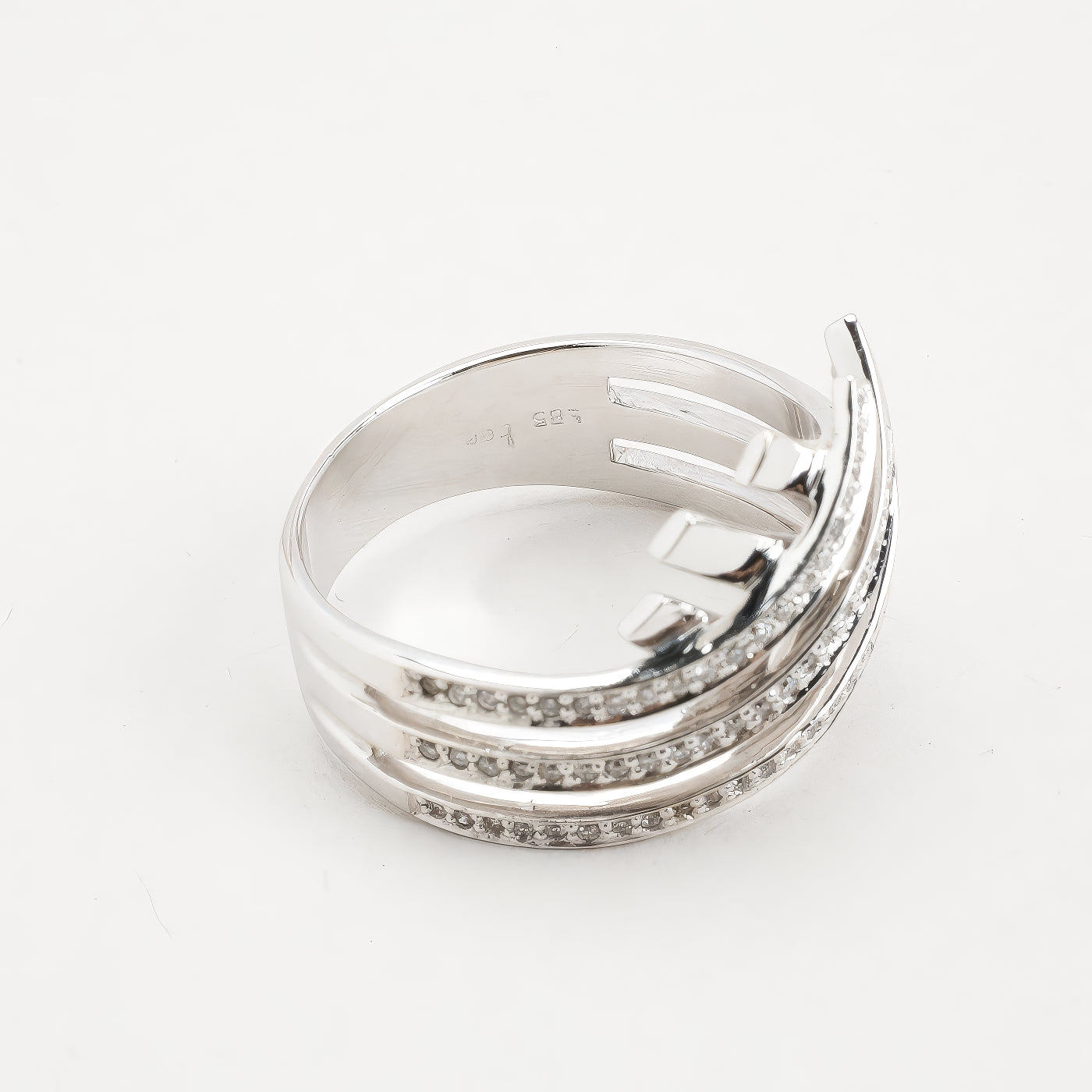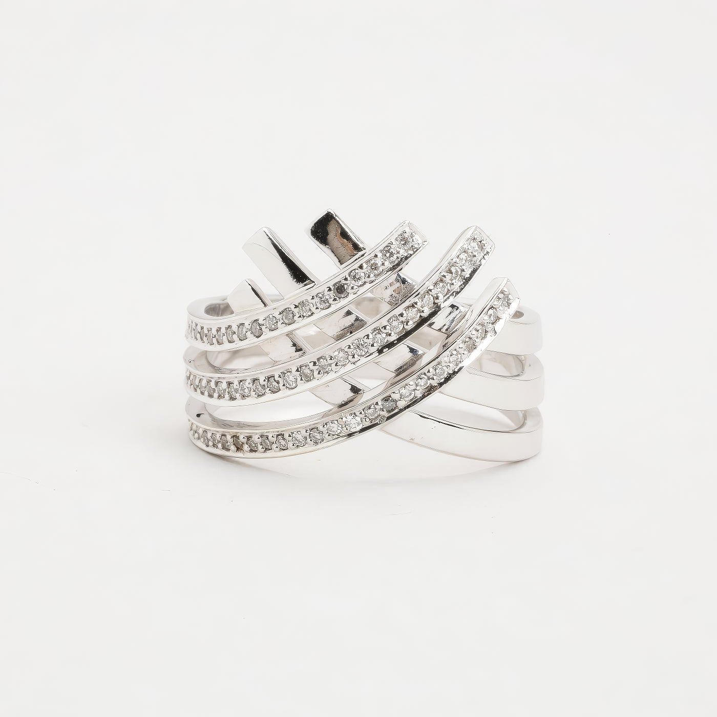 Crossover ring i 14K hvidguld med diamanter (0,18 ct), Str. 53