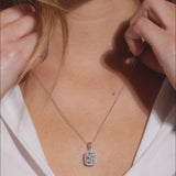 Halskæde i 14K hvidguld med pudeformet diamant (2,34 ct) omkranset af små diamanter, 43 cm