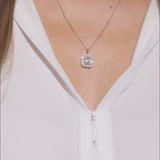 Halskæde i 14K hvidguld med diamant (2,52 ct) i halo af mindre diamanter, 46 cm, karabinhage