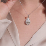 Vedhæng i 14 karat hvidguld med laboratoriedyrket pæreformet diamant (5,02 ct) og halo af små diamanter (0,68 ct), 2,7 cm.