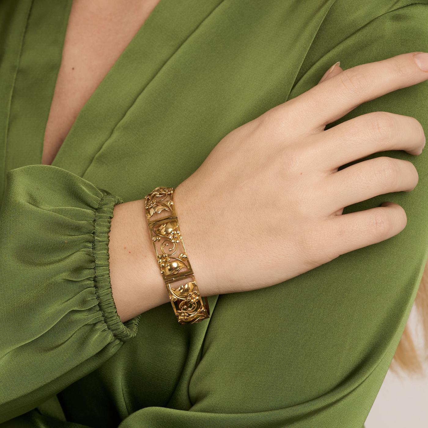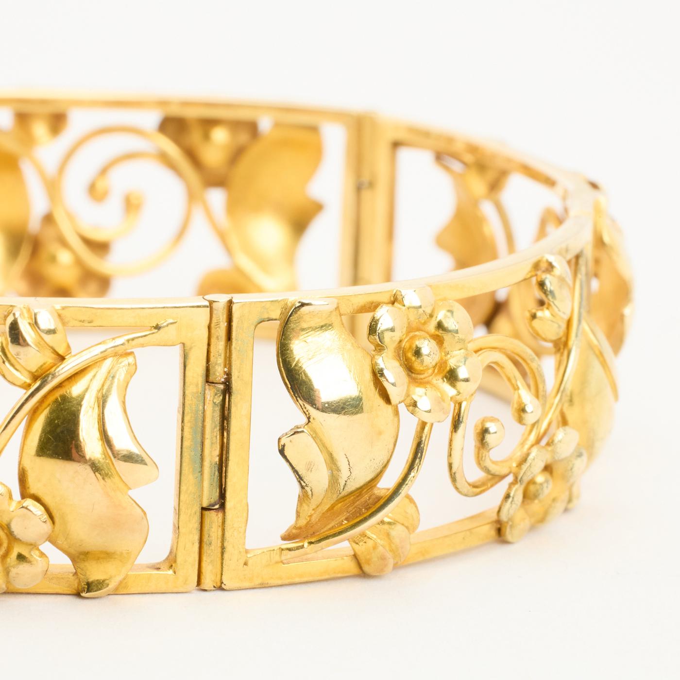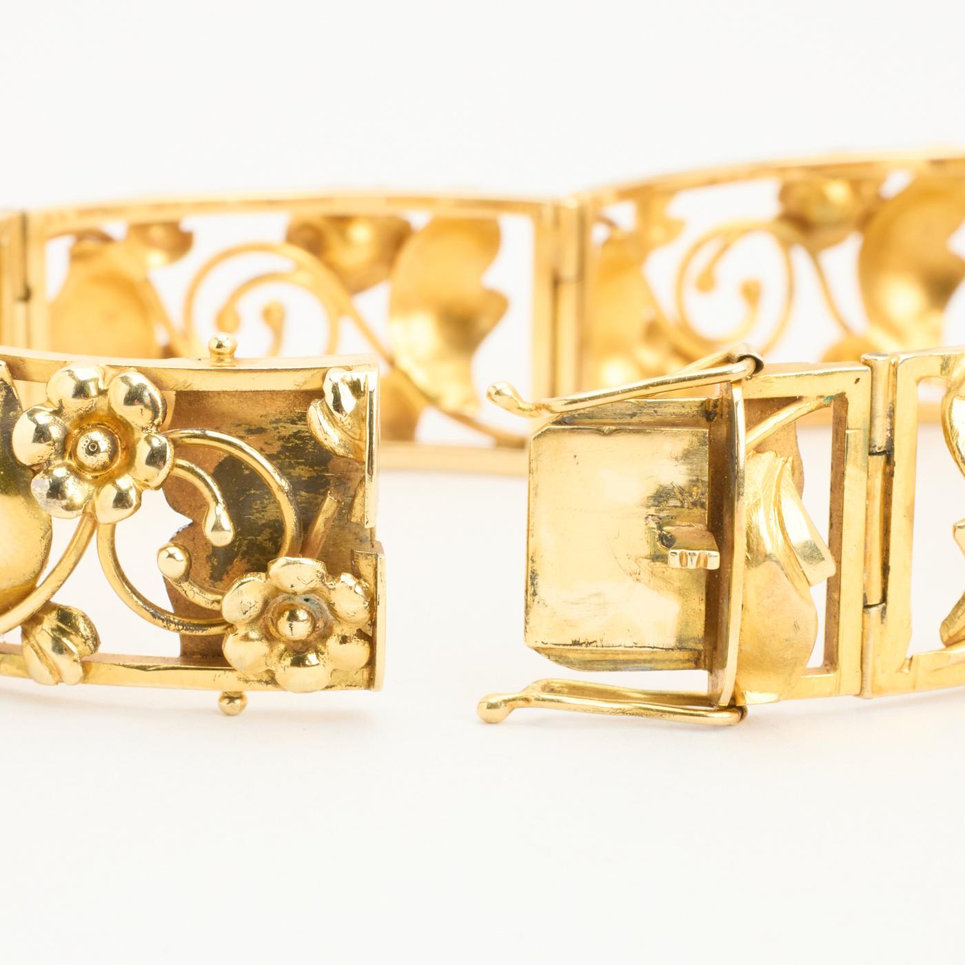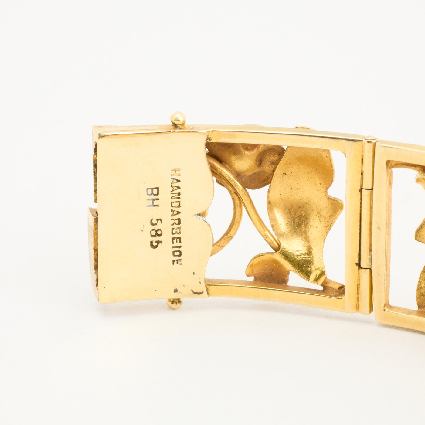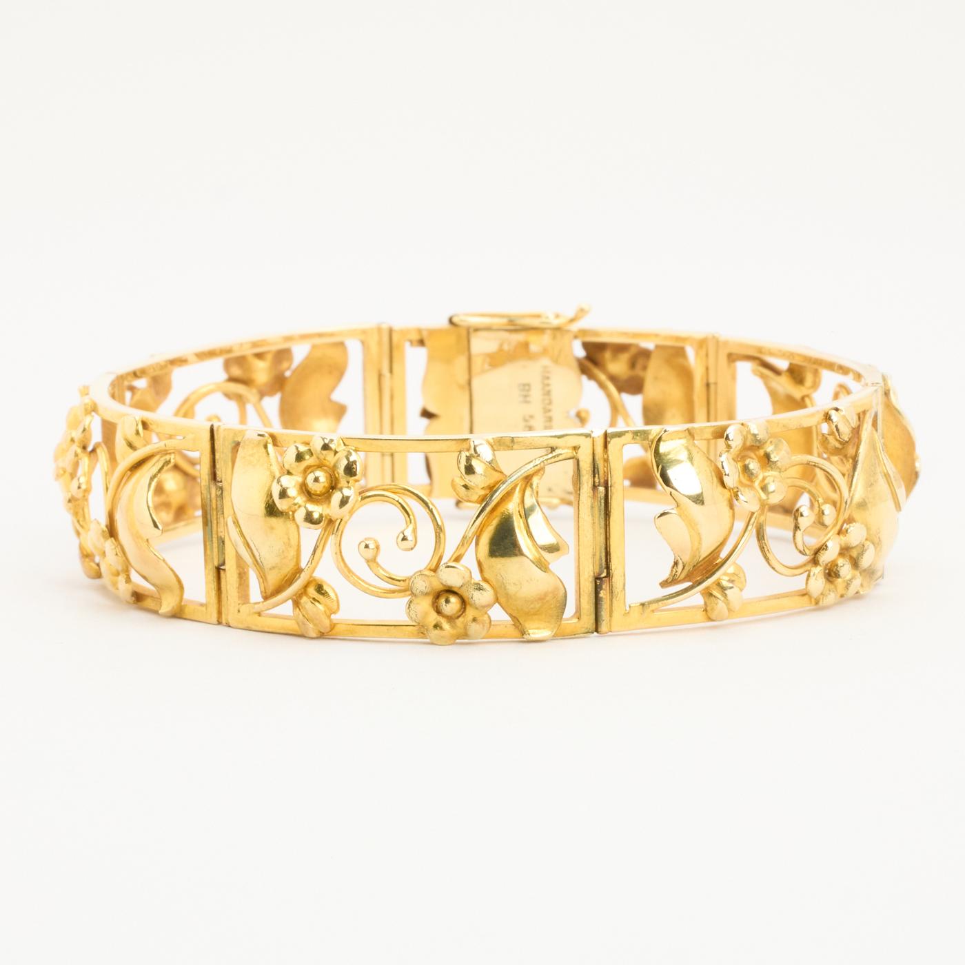 Armbånd i 14 karat guld med plantemotiv og kasselås, 17 cm