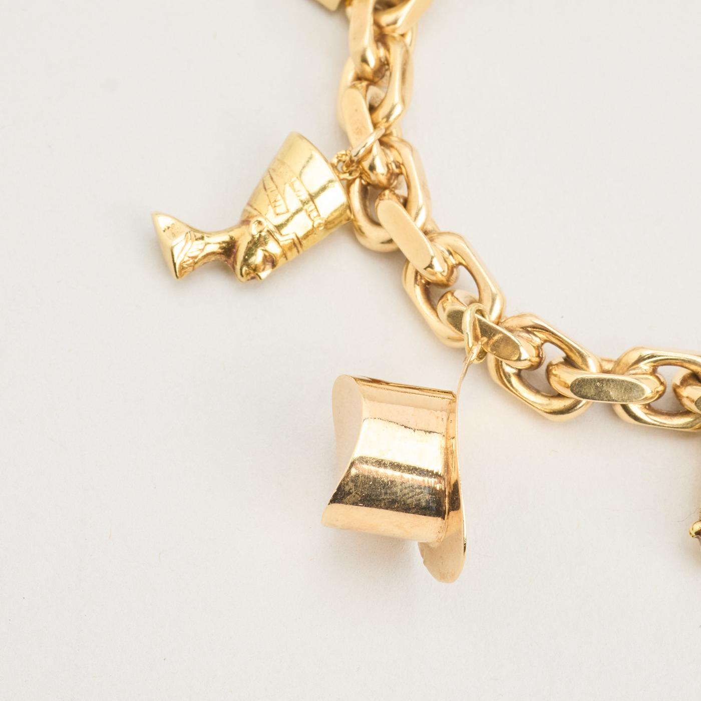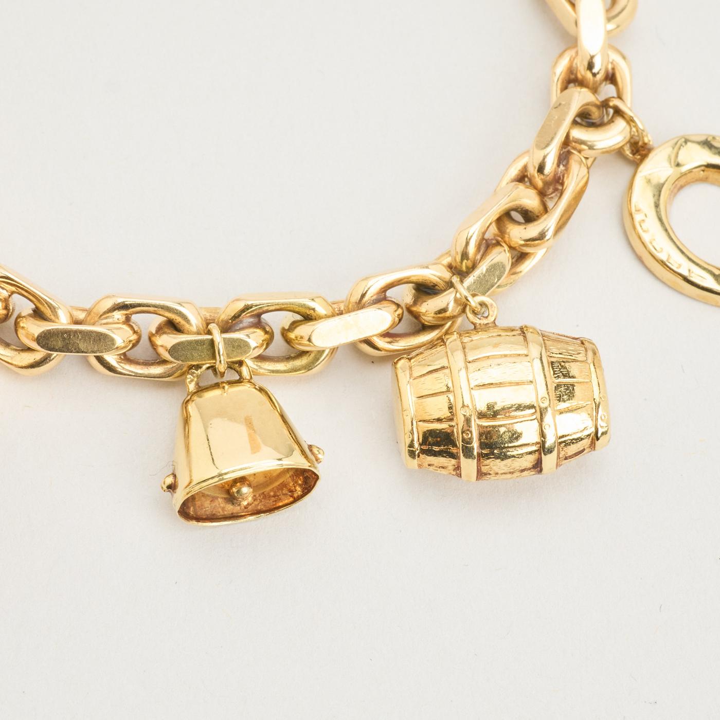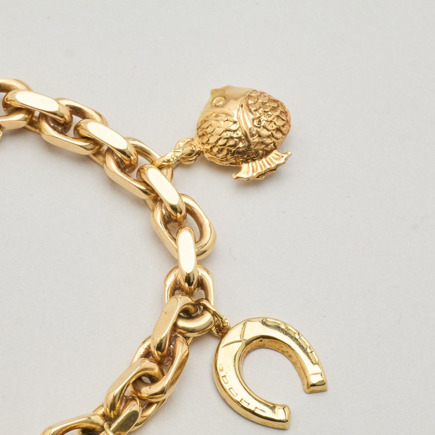 Model: Ankerkæde charm armbånd i 14K guld med syv lykke-symboler, 19 cm, kasselås