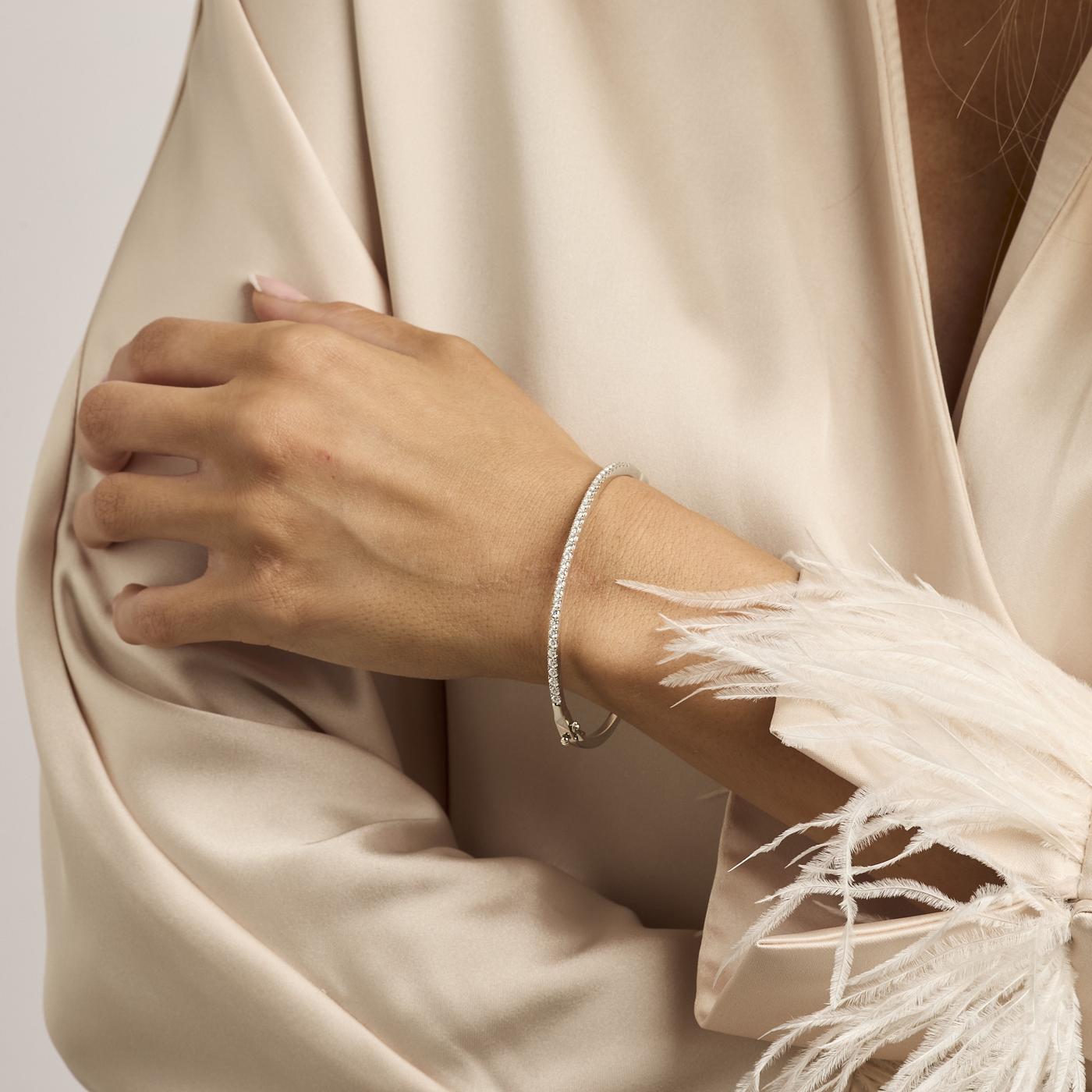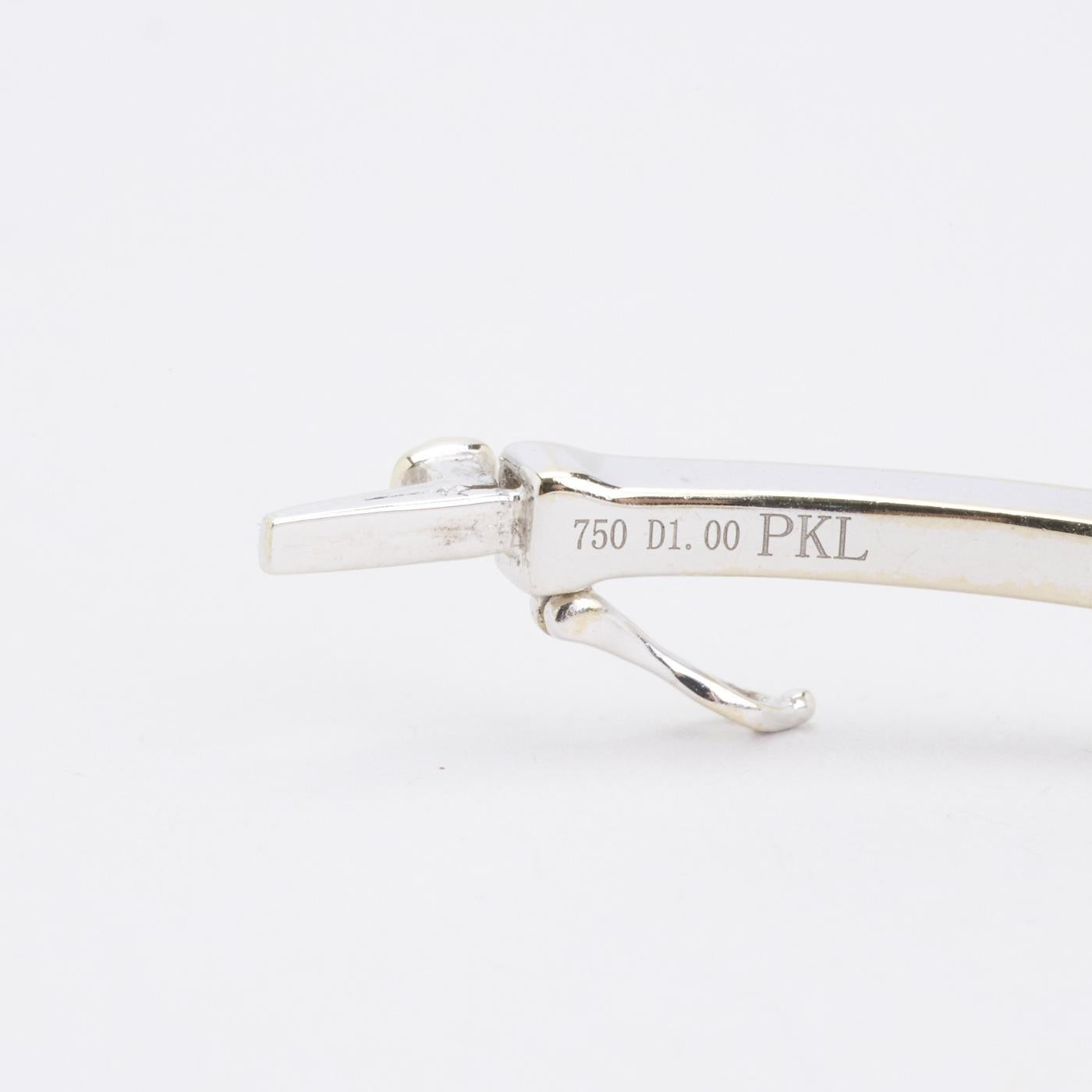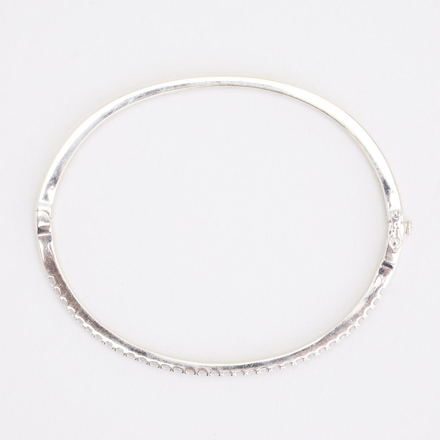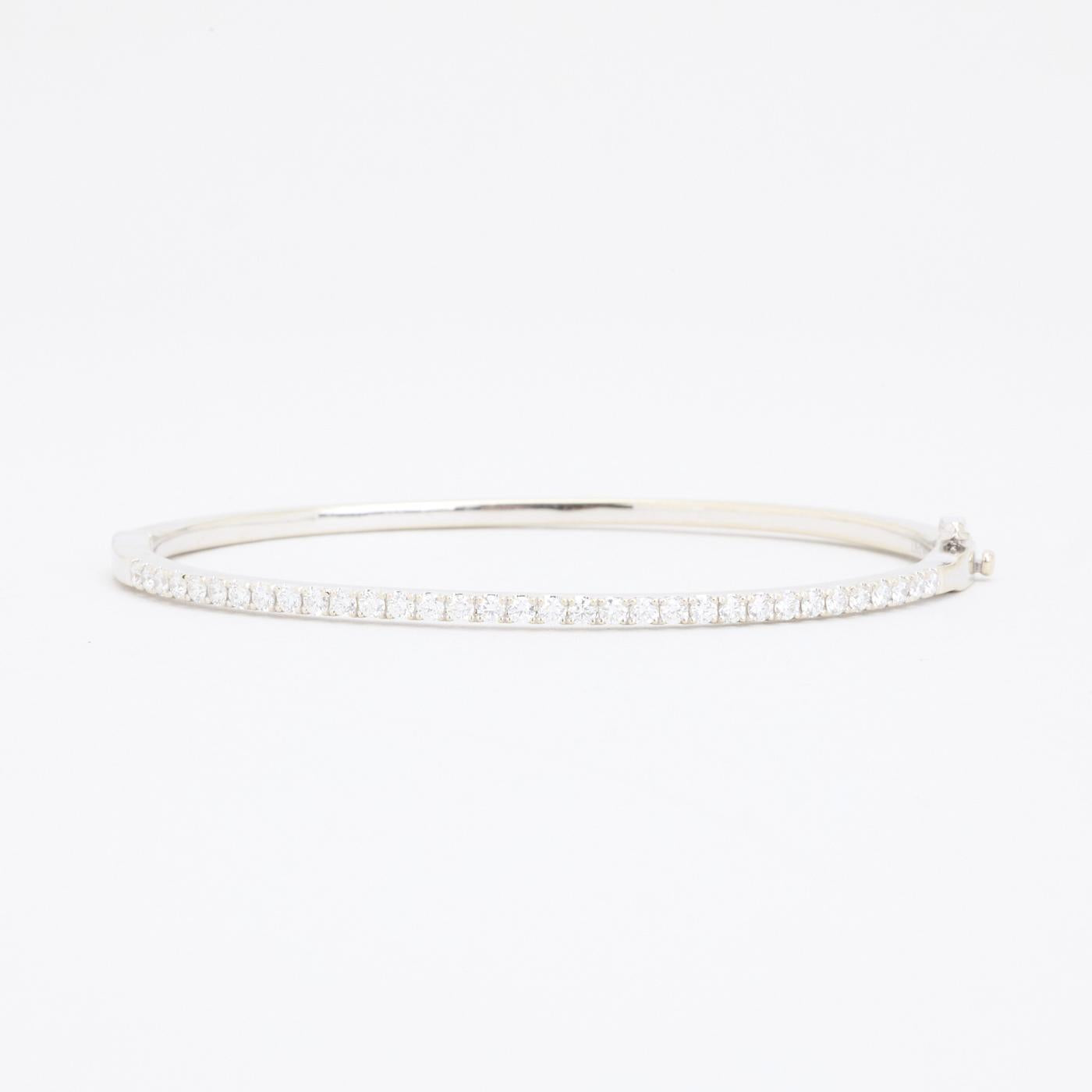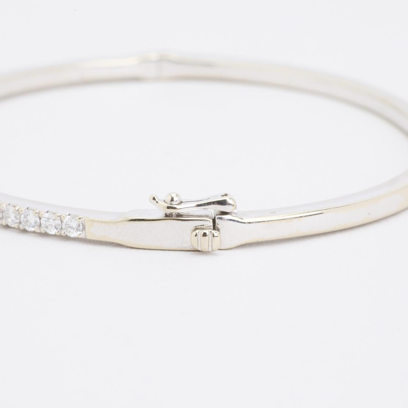 Stiv armring i 18K hvidguld med diamanter (1 ct), 6 cm, med kasselås og sikkerhedslås