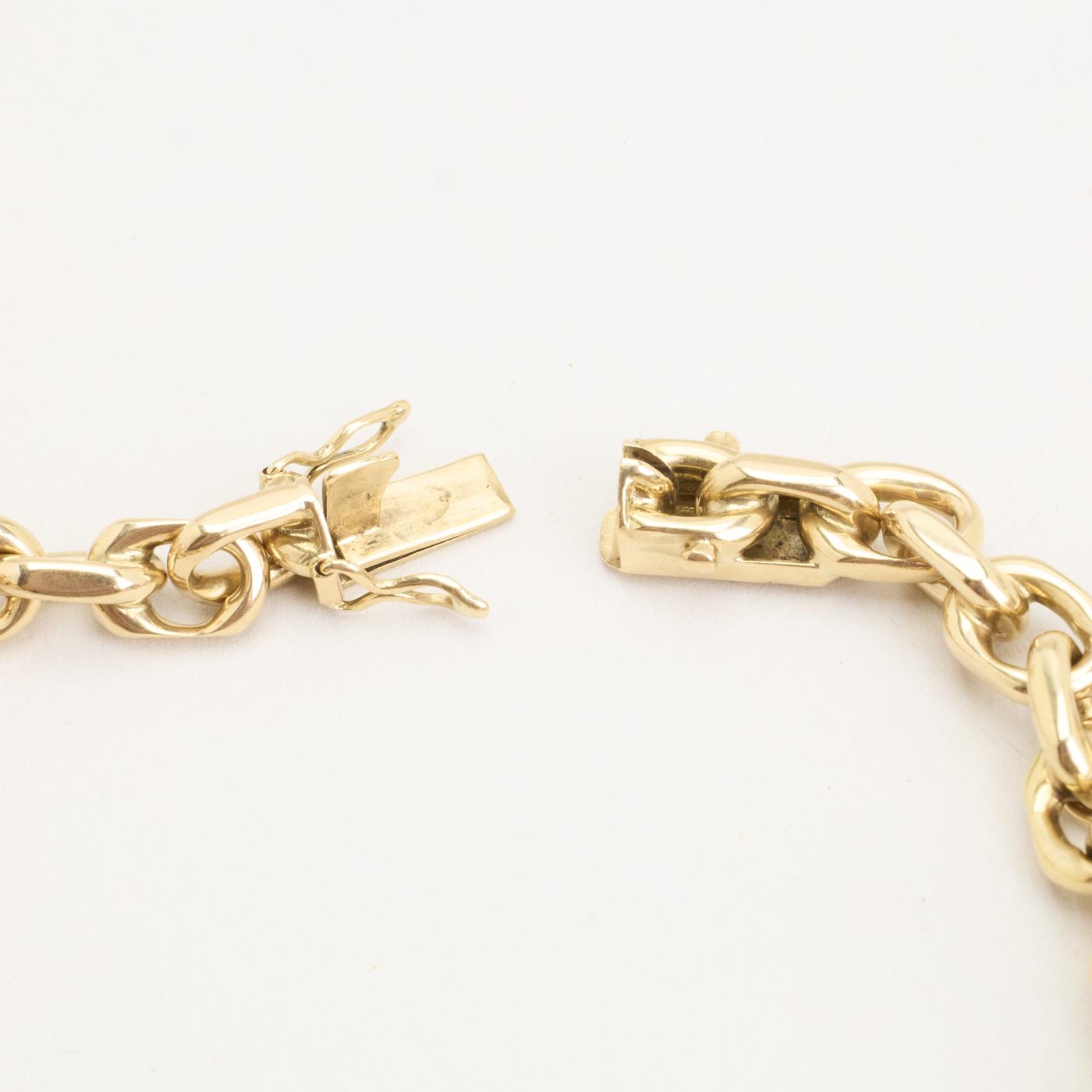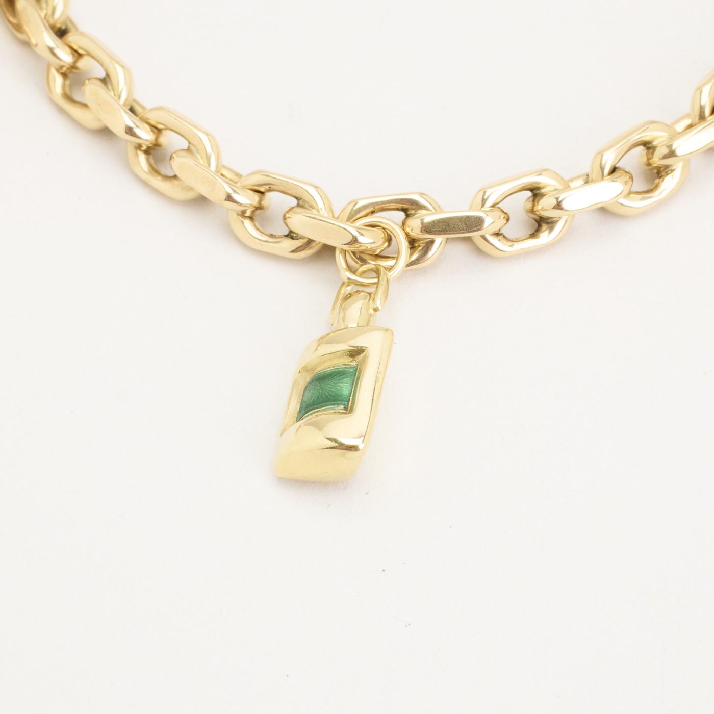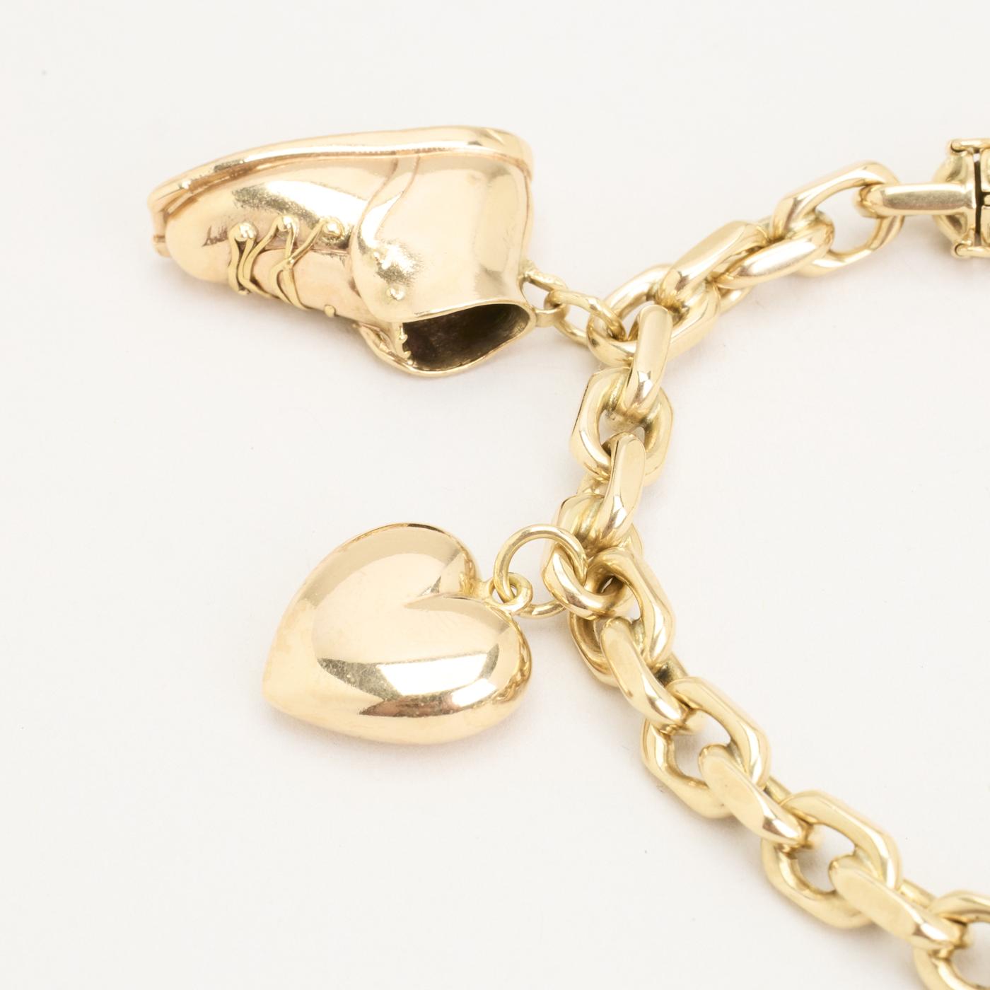 Model: Ankerkæde charmarmbånd i 14K guld med seks charms, 20 cm, kasselås