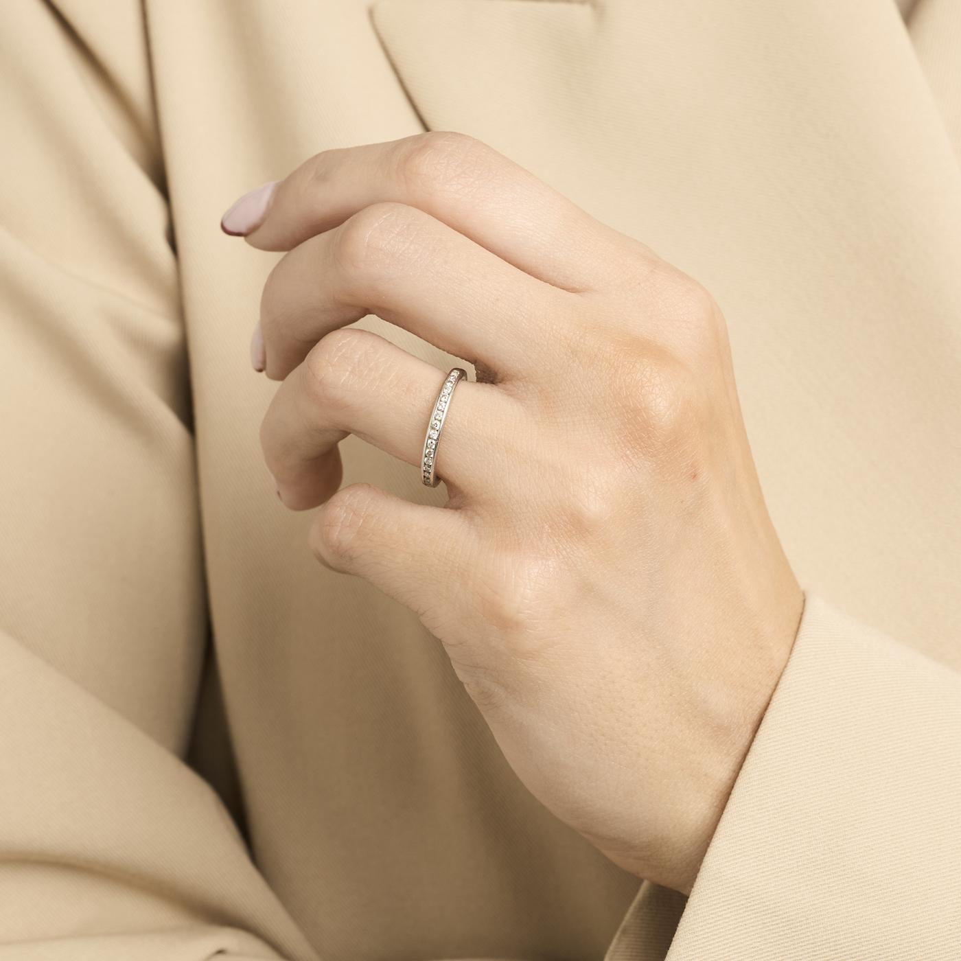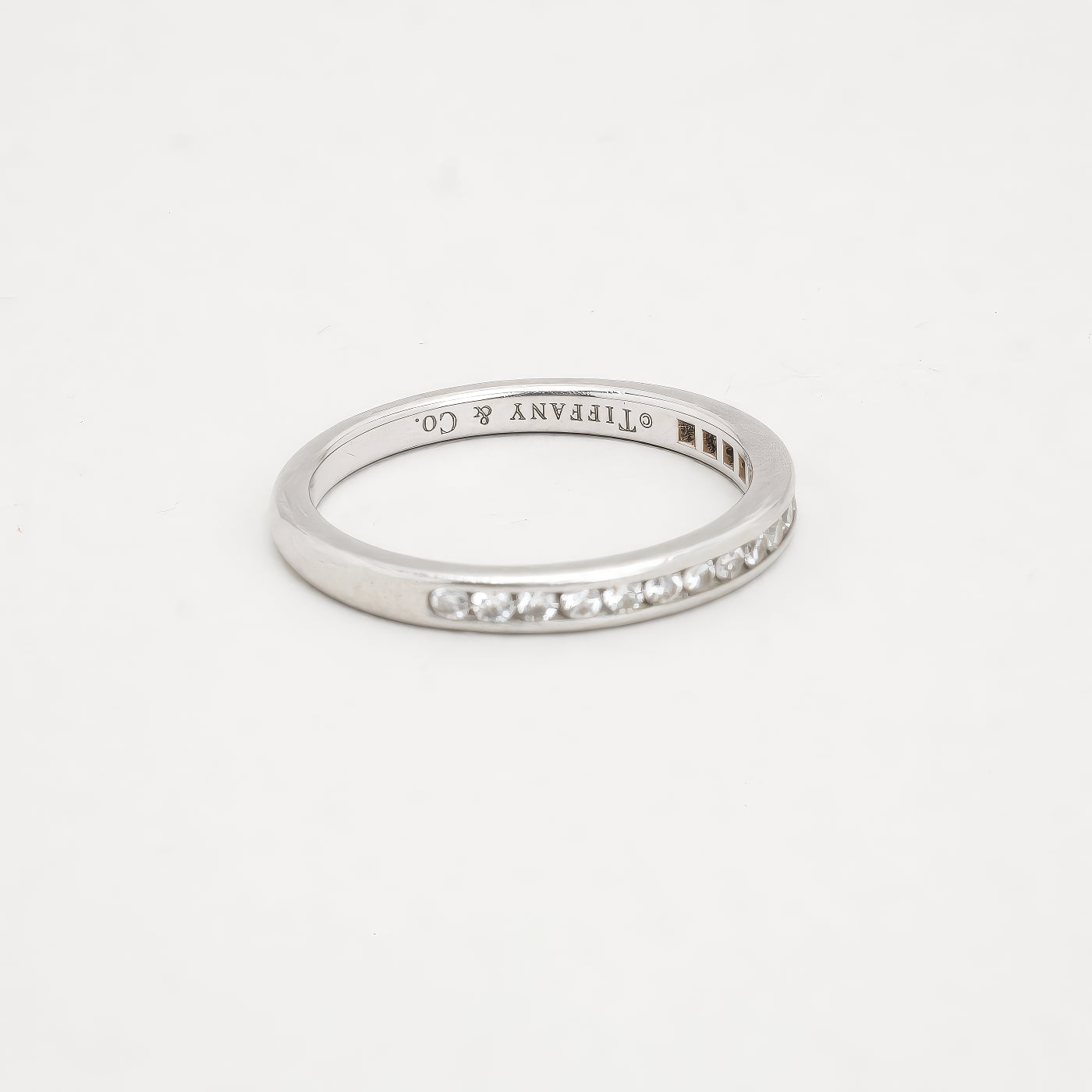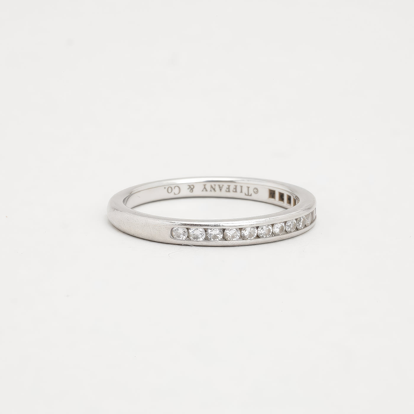 Tiffany & Co. alliancering i 18K hvidguld, med diamanter (0.12 ct), Str. 49