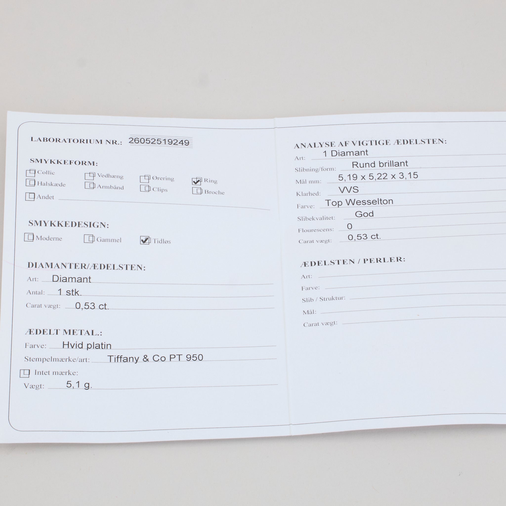 Tiffany & Co Solitaire ring i platin med diamant (0.53 ct)