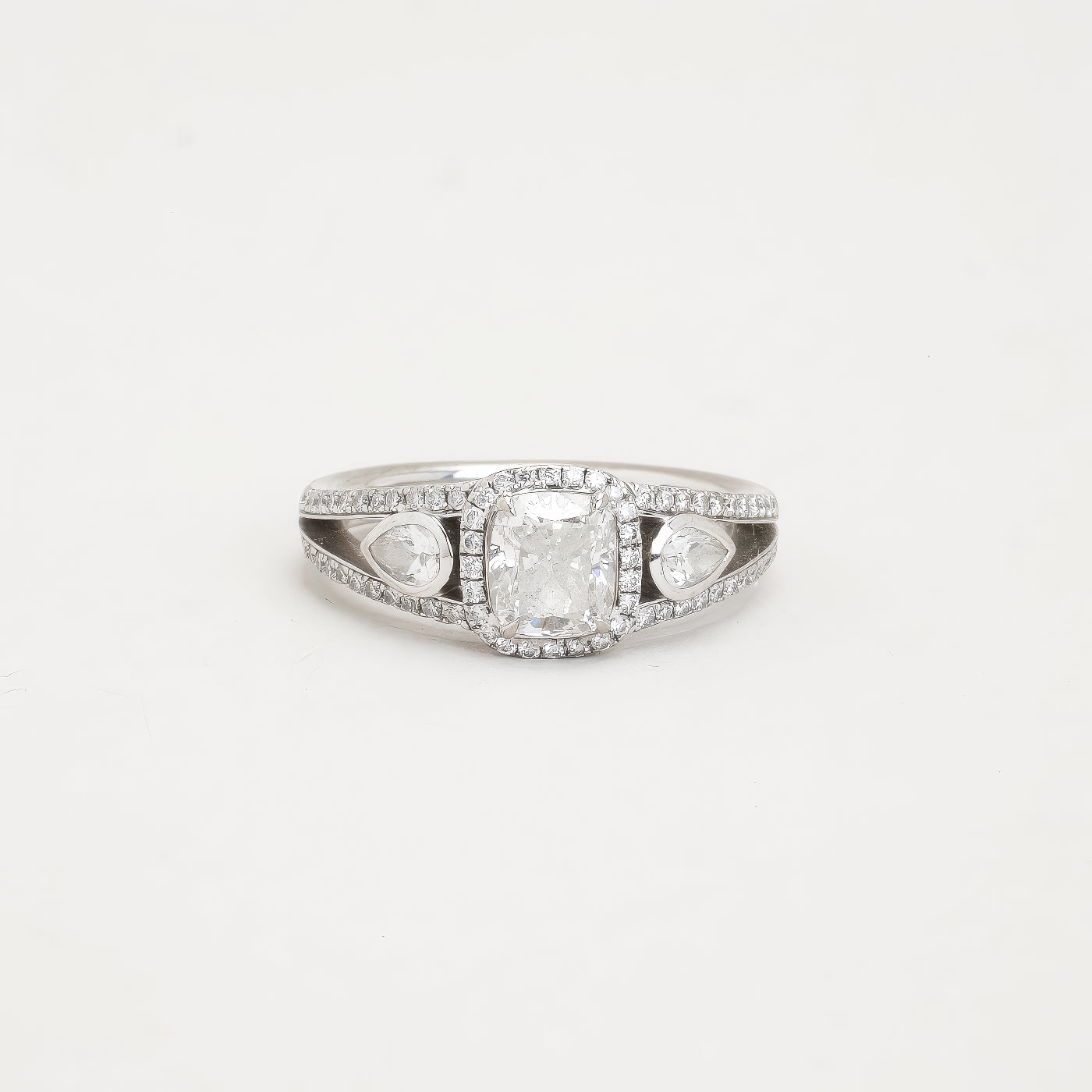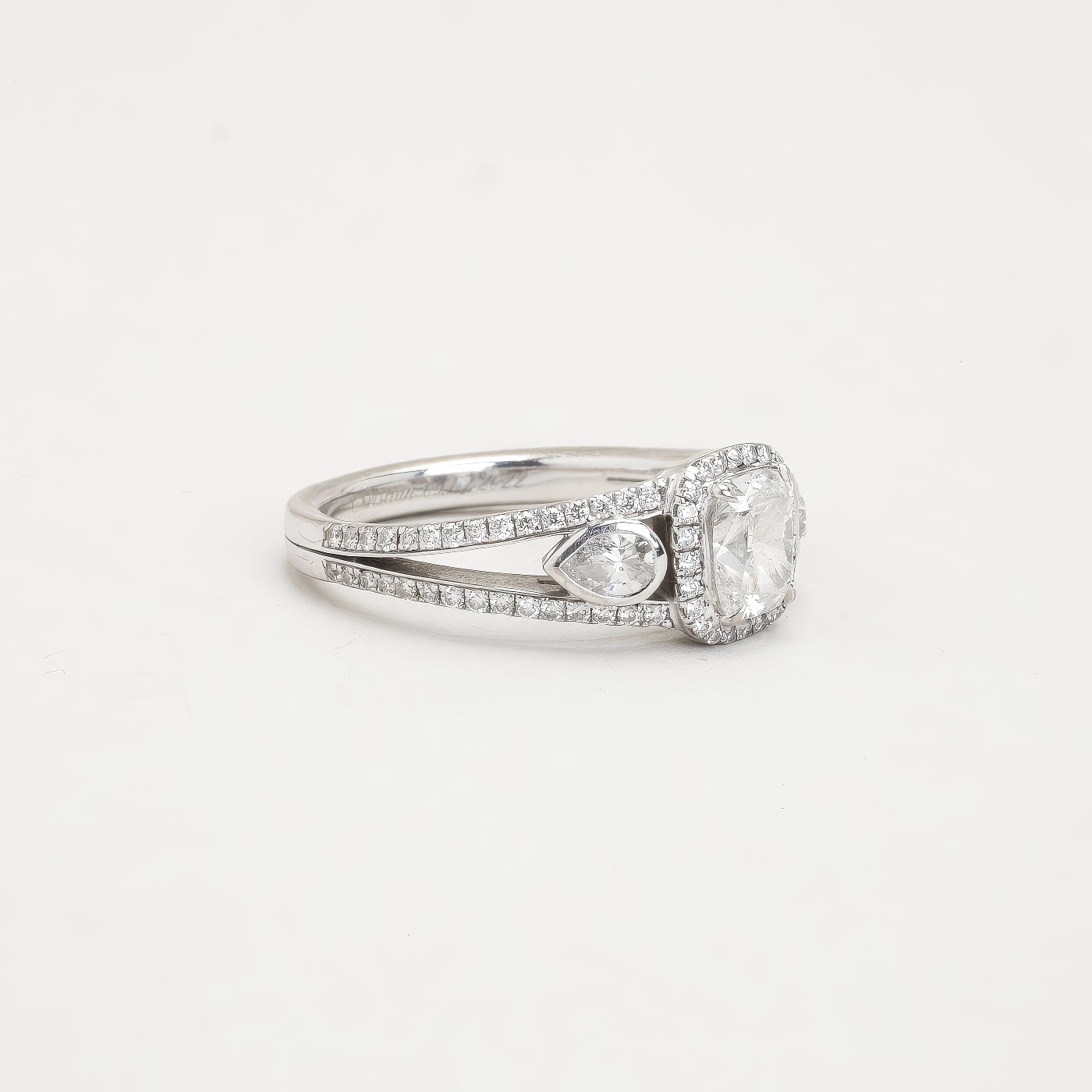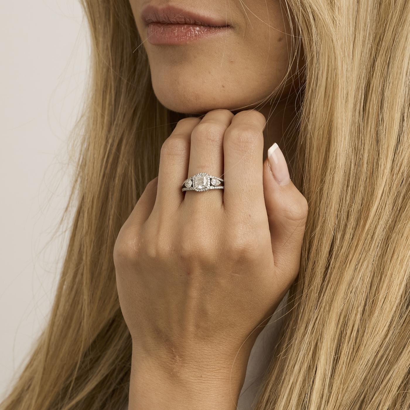 Bach Mouritsen trestensring i 18K hvidguld, med diamanter, Str. 53