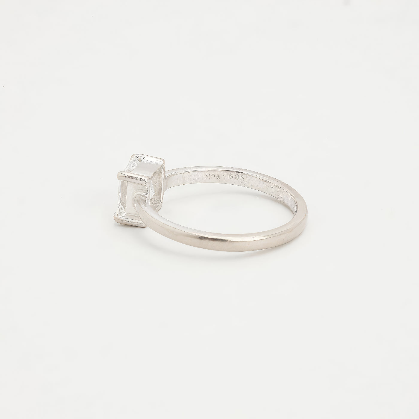 Egenskaber: Ring i 14 karat Hvidguld isat 1 x 1 ct. emerald_cutsleben Diamant, i alt 1 ct. Top Wesselton/vvs2.