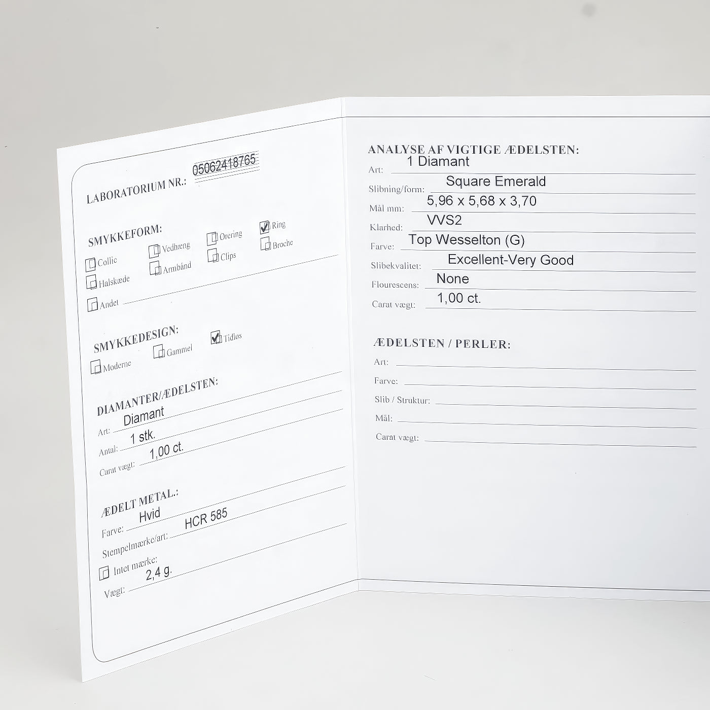 Diamanter: 1.00 ct. totalt fordelt på 1 naturlige diamanter. Centerstenen på 1.00 ct. emerald_cut-cut diamant (Farve Top Wesselton)