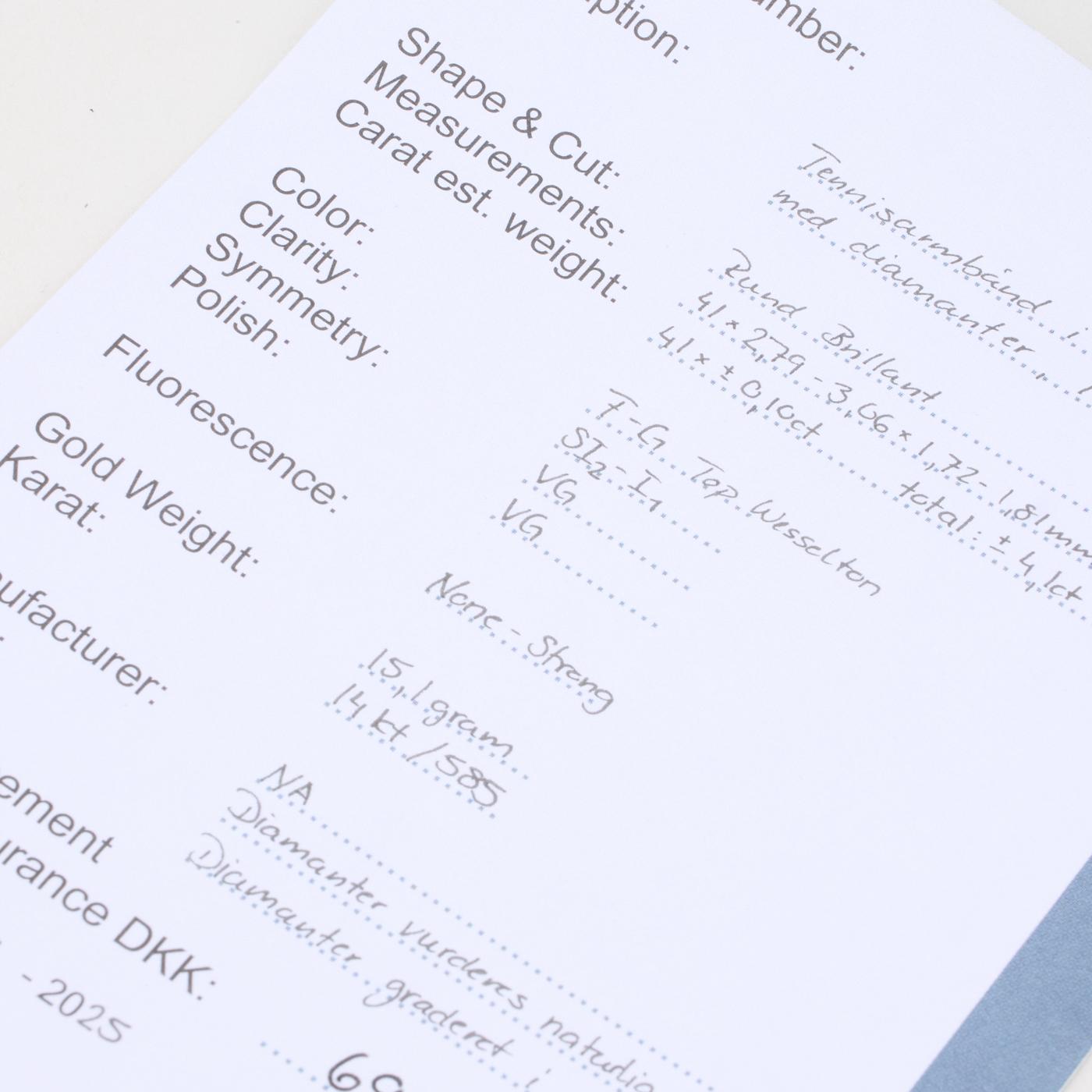 Tennisarmbånd i 14K hvidguld med diamanter (4 ct), 17,5 cm, kasselås