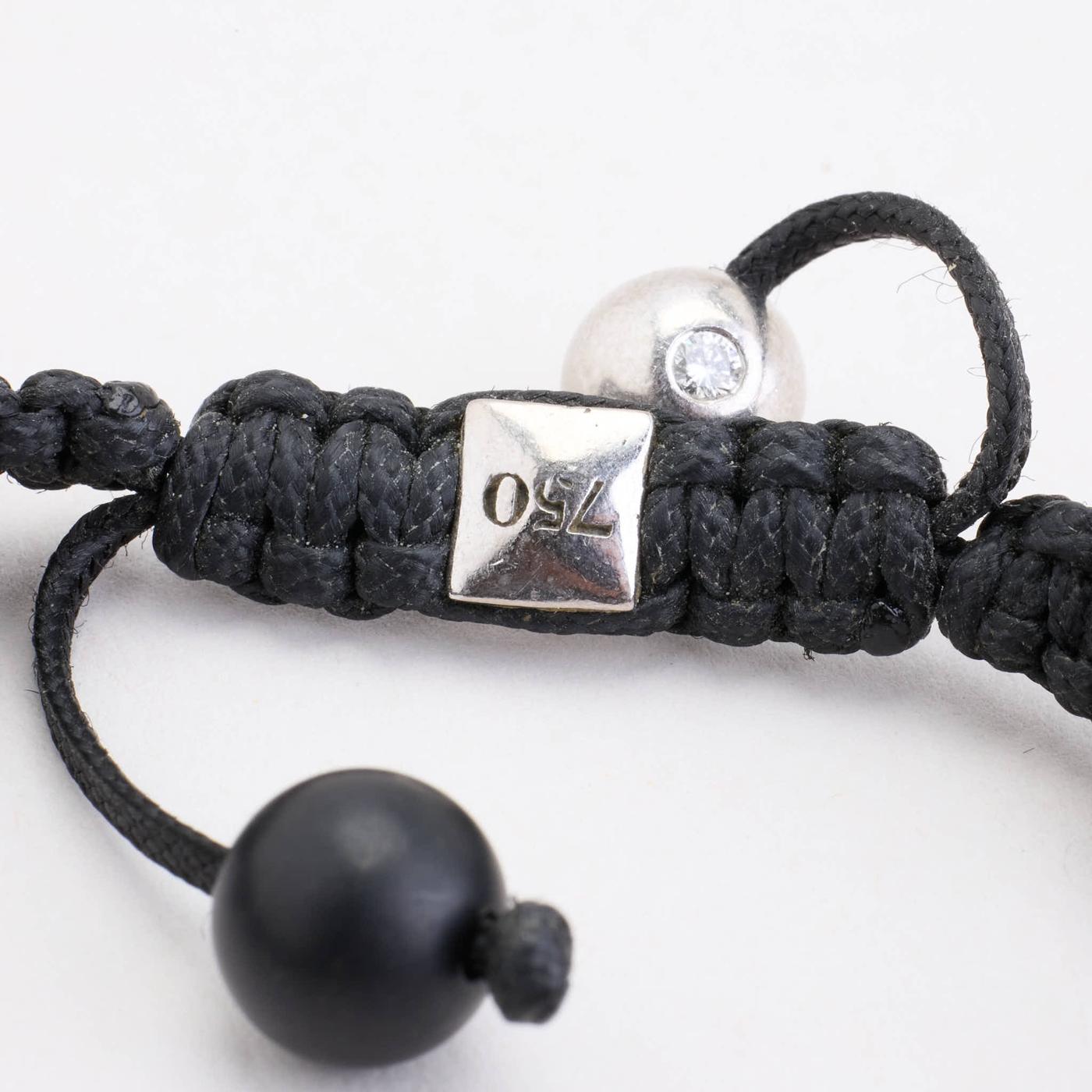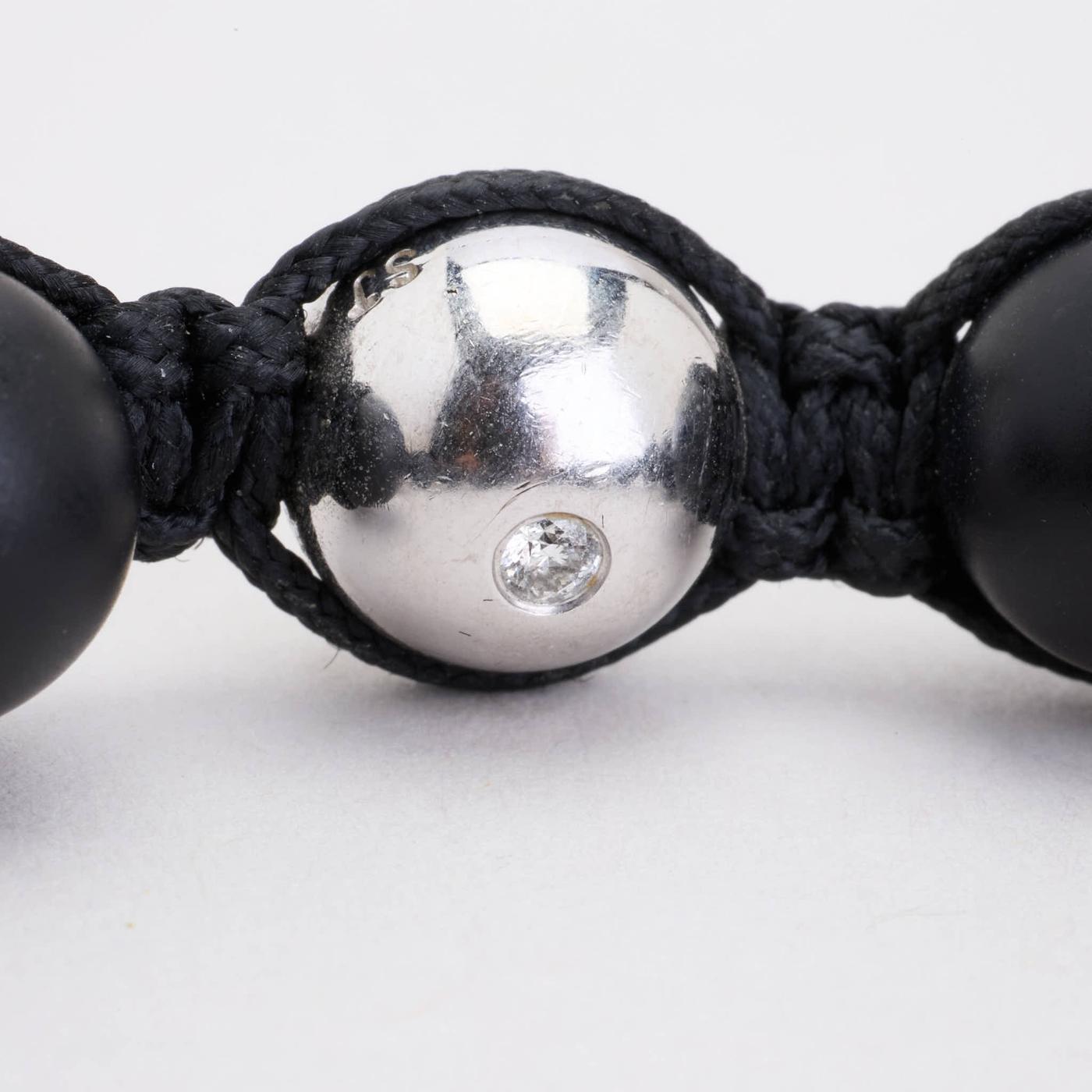 Shamballa armbånd i 18K hvidguld med diamanter (0.03 ct) og onyks, 22.5 cm