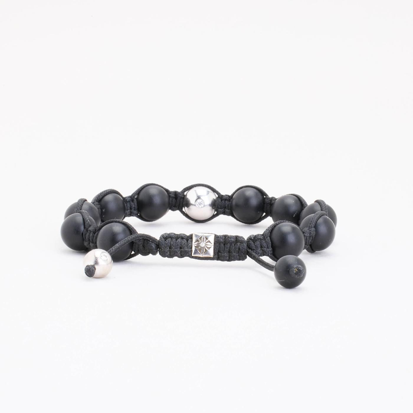 Model: Shamballa armbånd i 18K hvidguld med diamanter (0.03 ct) og onyks, 22.5 cm