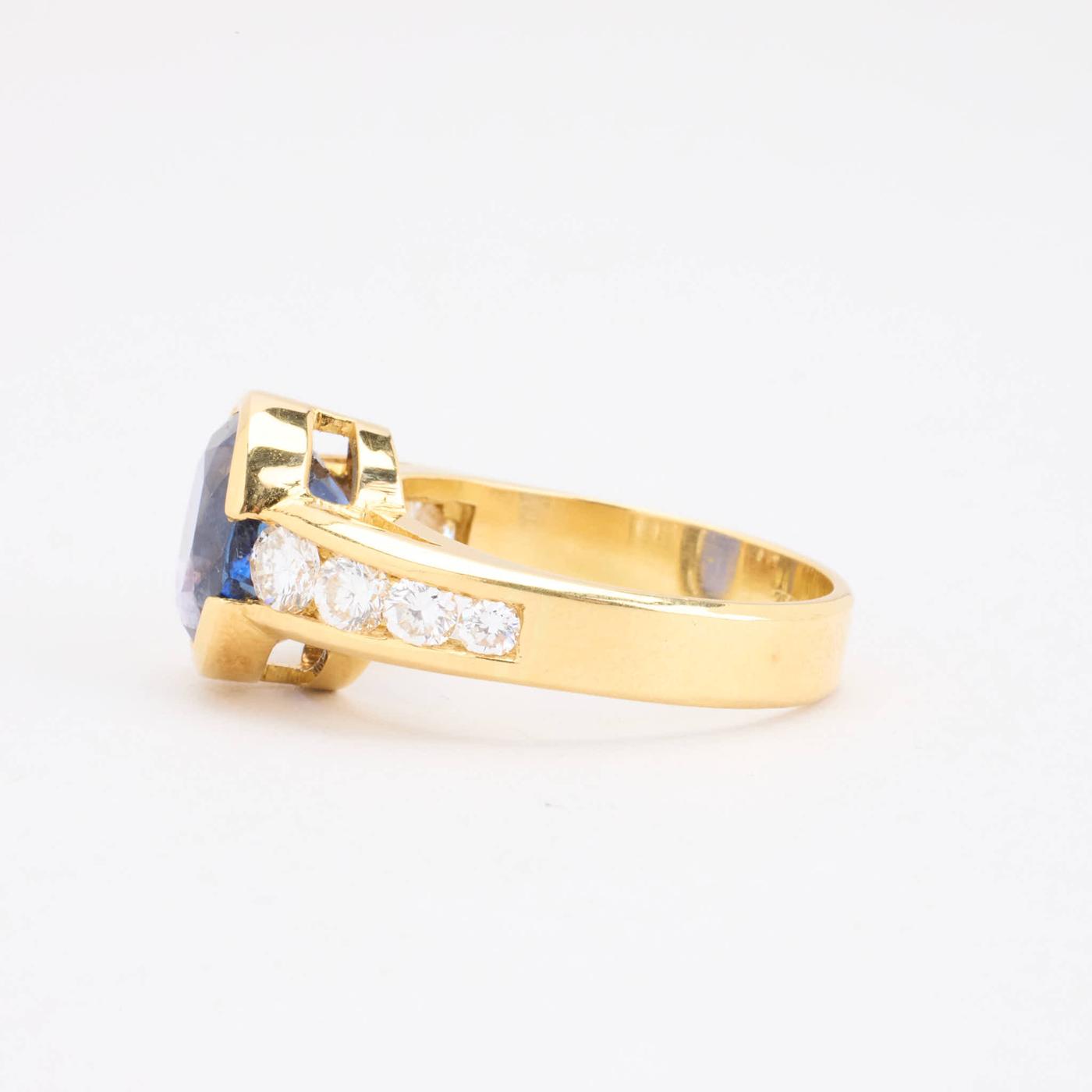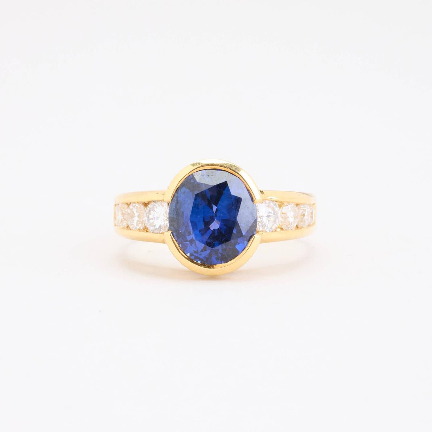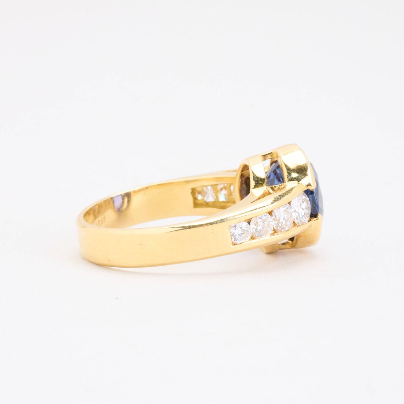 Cocktailring i 18K guld med diamanter og én safir, Str. 67