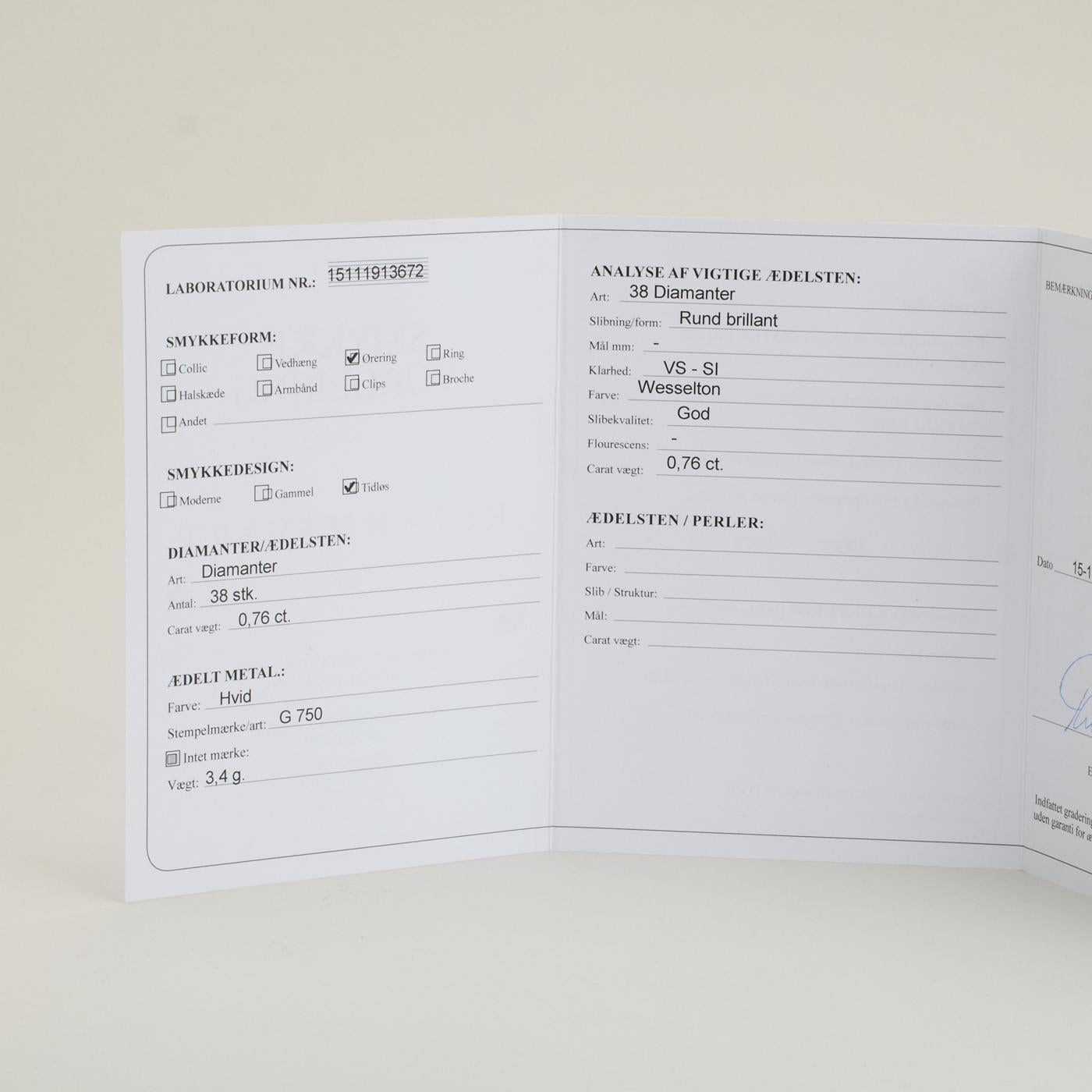 Ørestikker i 18K hvidguld, med diamanter (0,76 ct), 9,53 mm