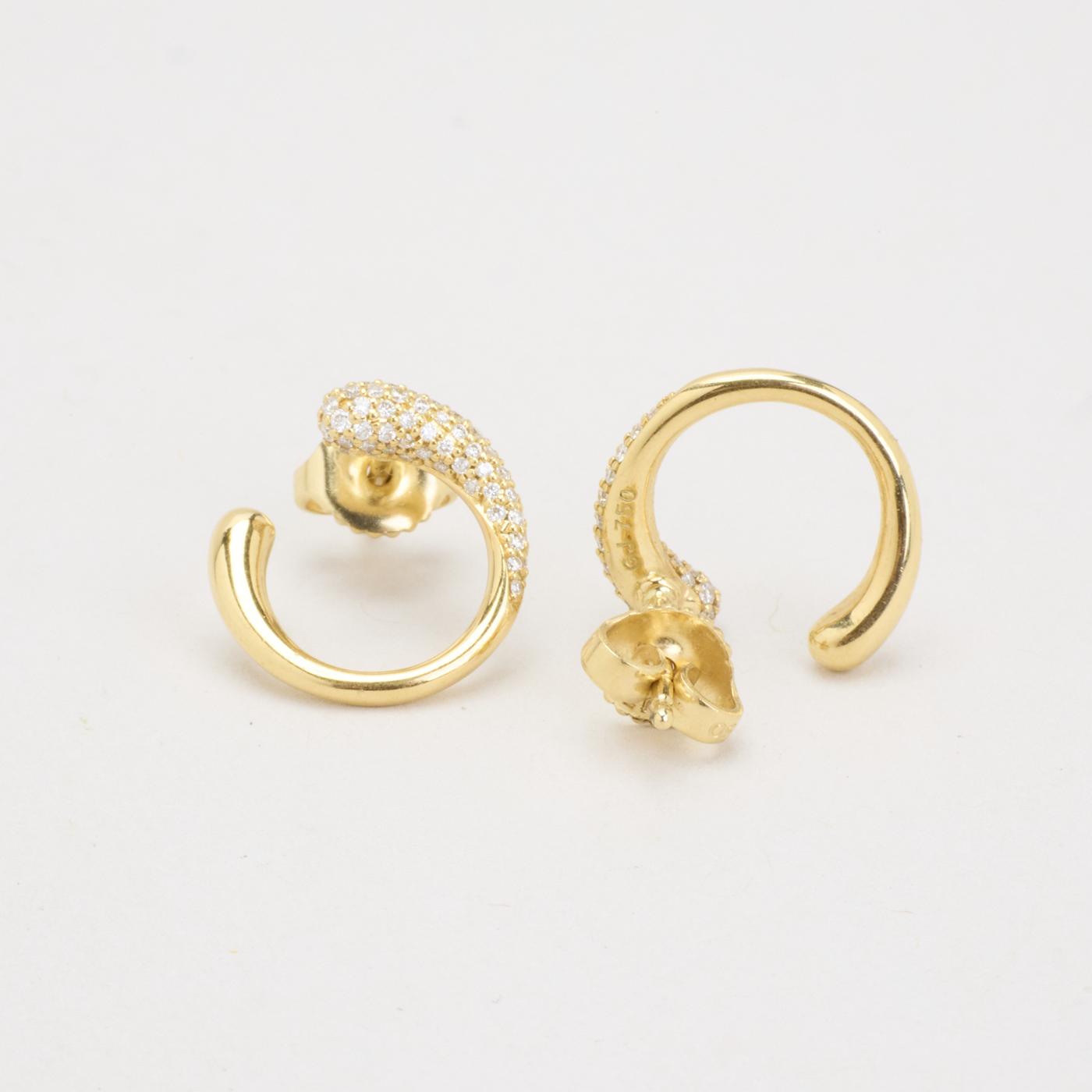 Georg Jensen pavé ørestikker i 18K guld med diamanter (0.38 ct), 8.05 cm