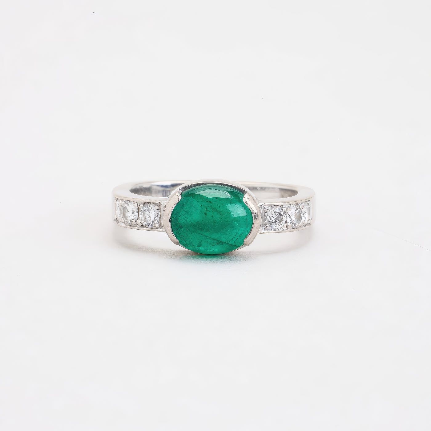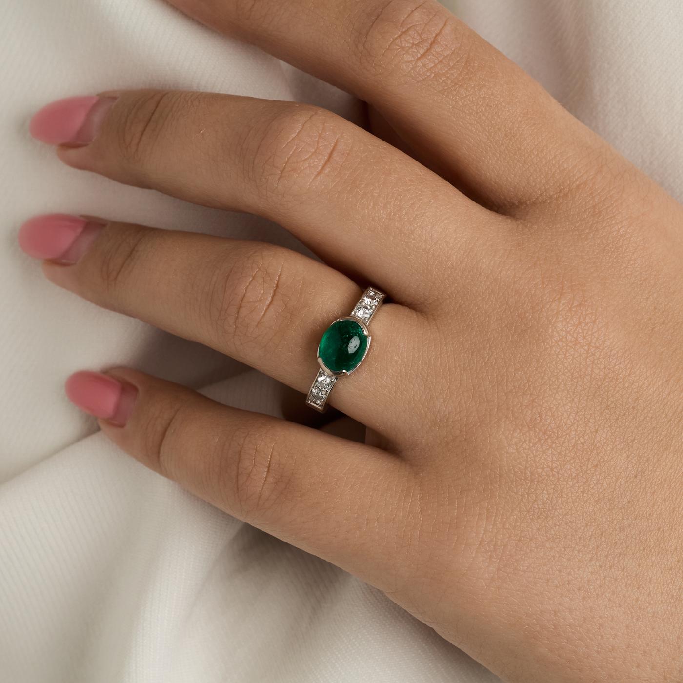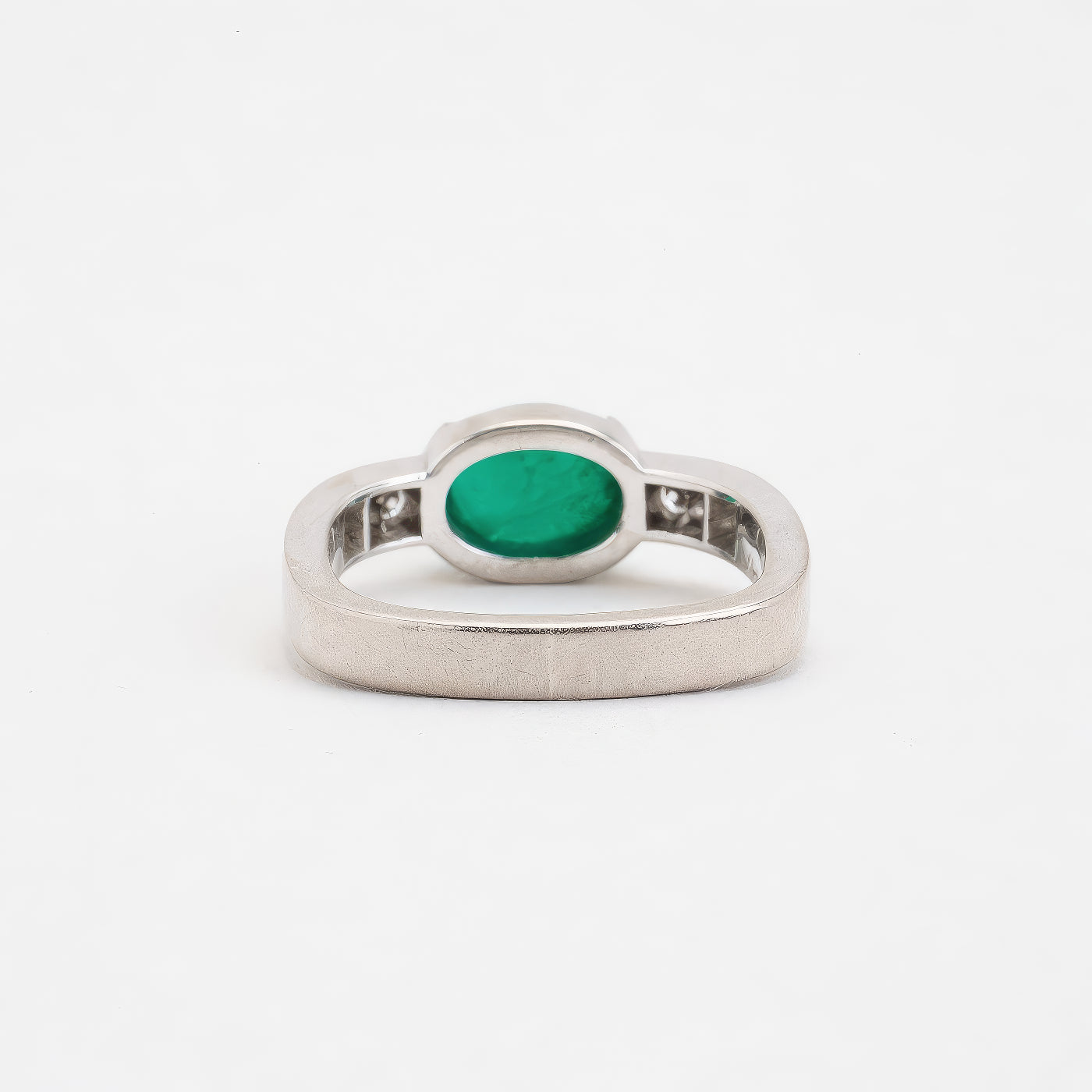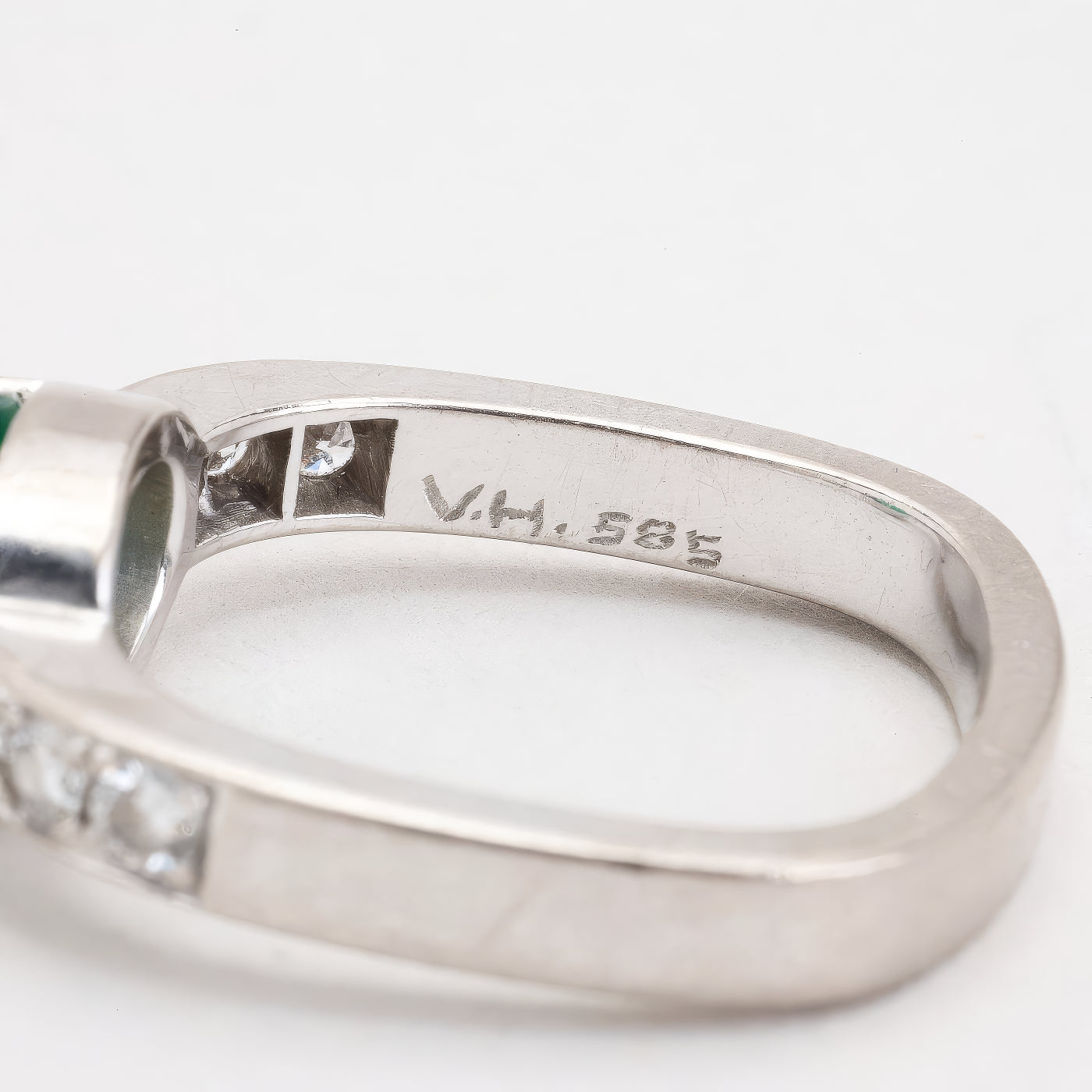 Alliance solitairering i 14K hvidguld med en smaragd og diamanter (0.19 ct), Str. 52