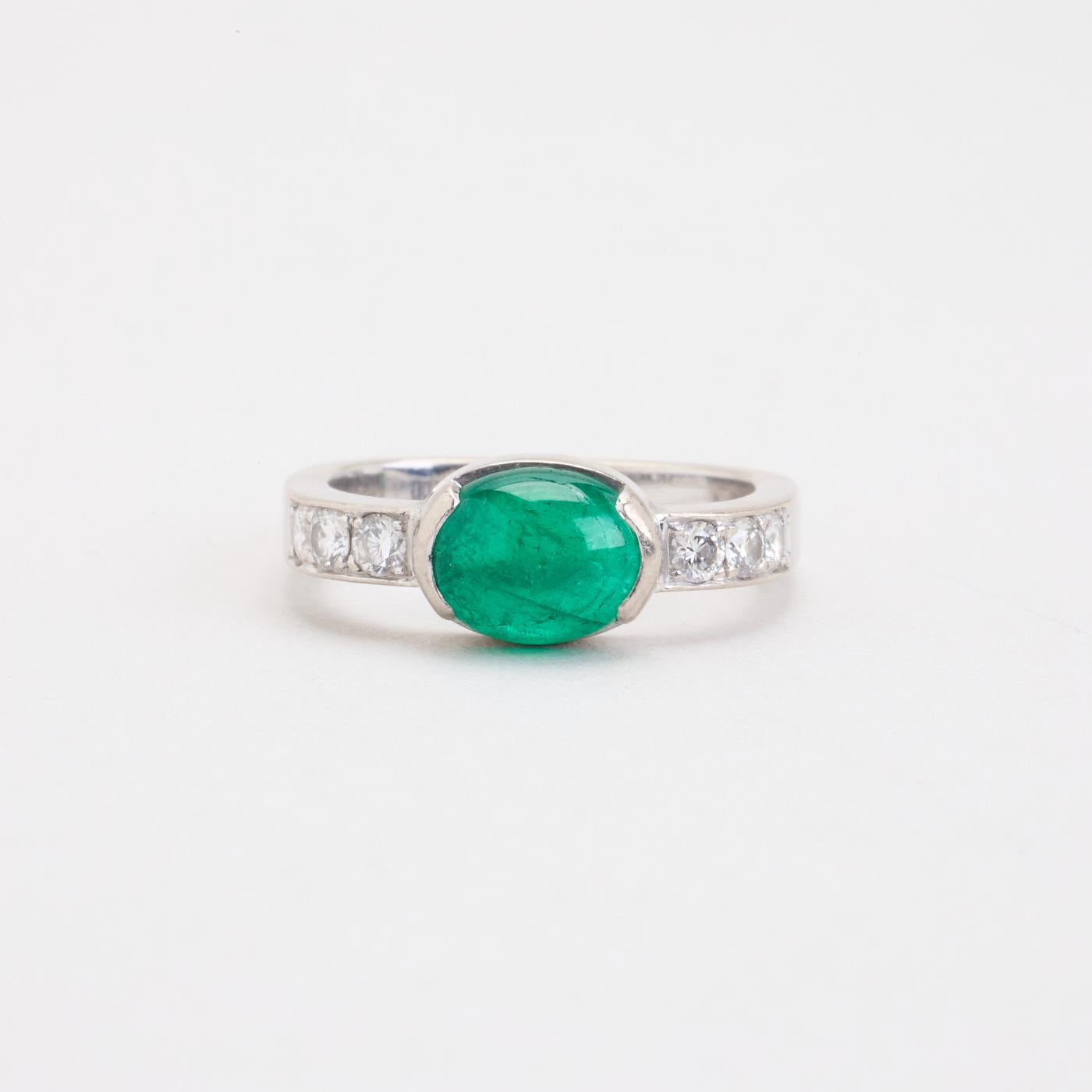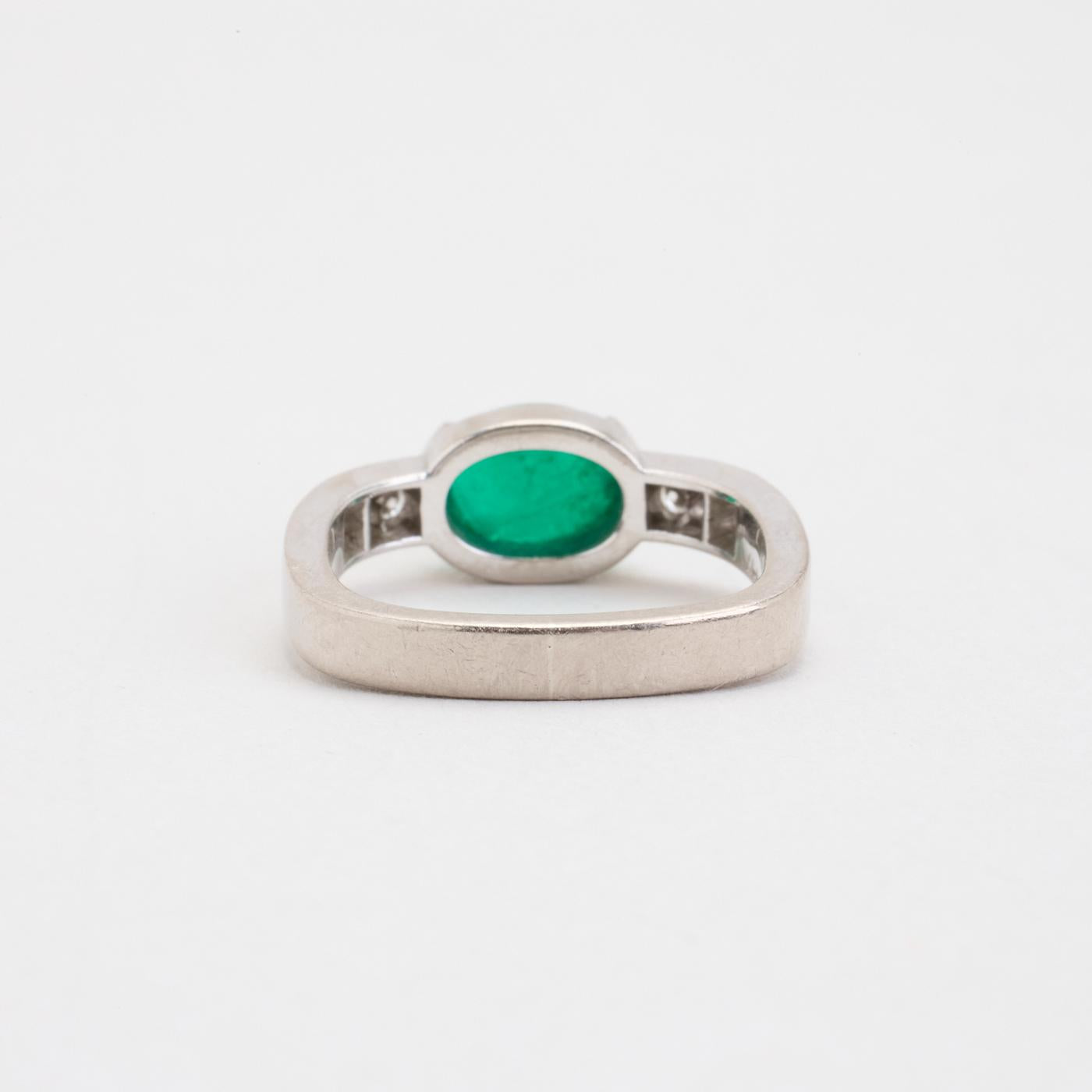 Solitairering i 14K hvidguld med en smaragd og hvide sten (0.19 ct), Str. 52
