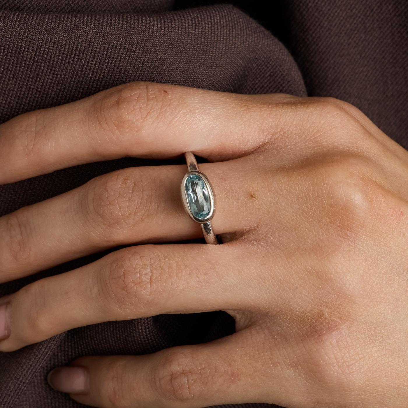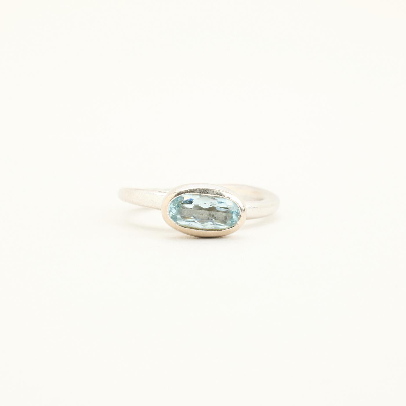 Ole Lynggaard solitairering i 14K hvidguld med en akvamarin, Str. 58