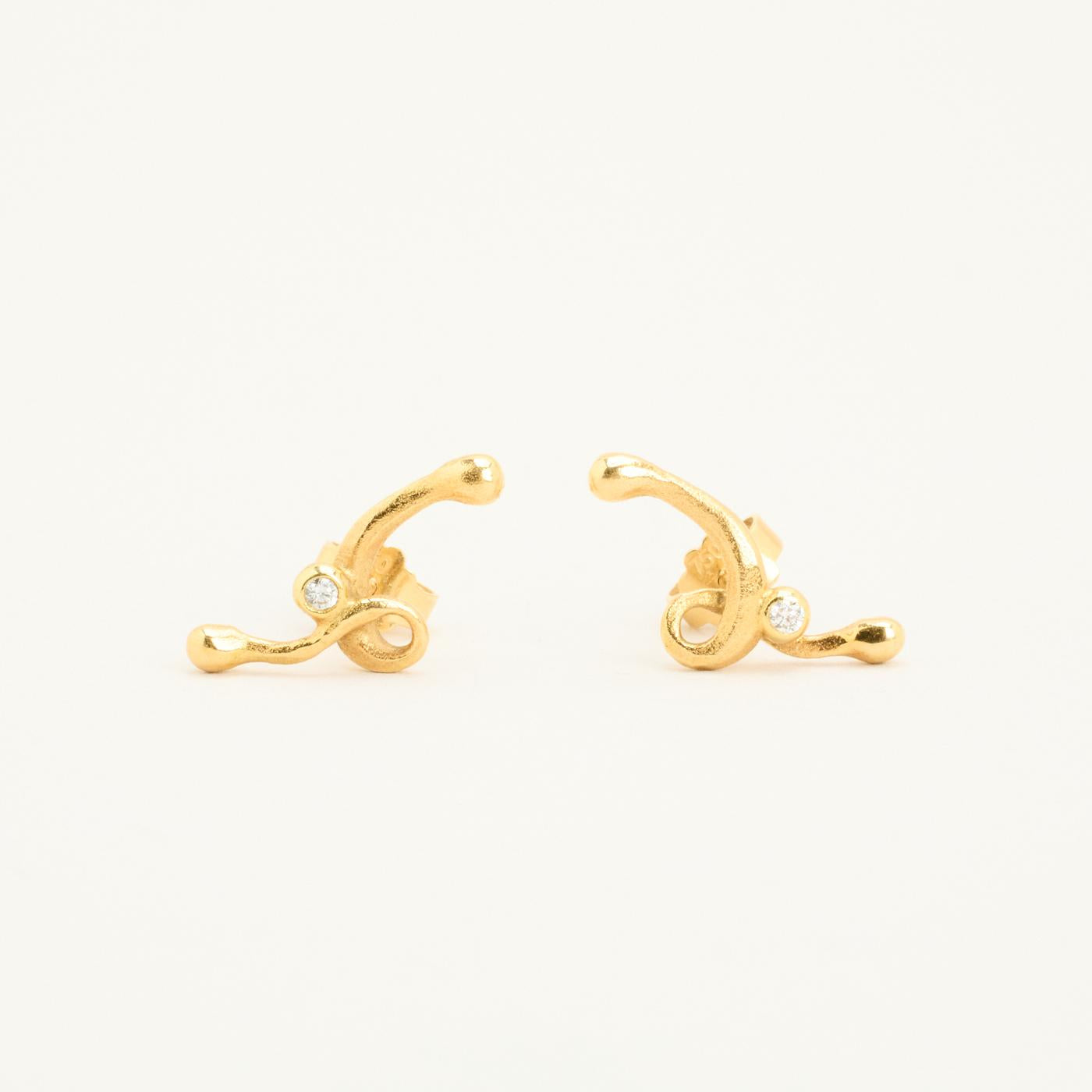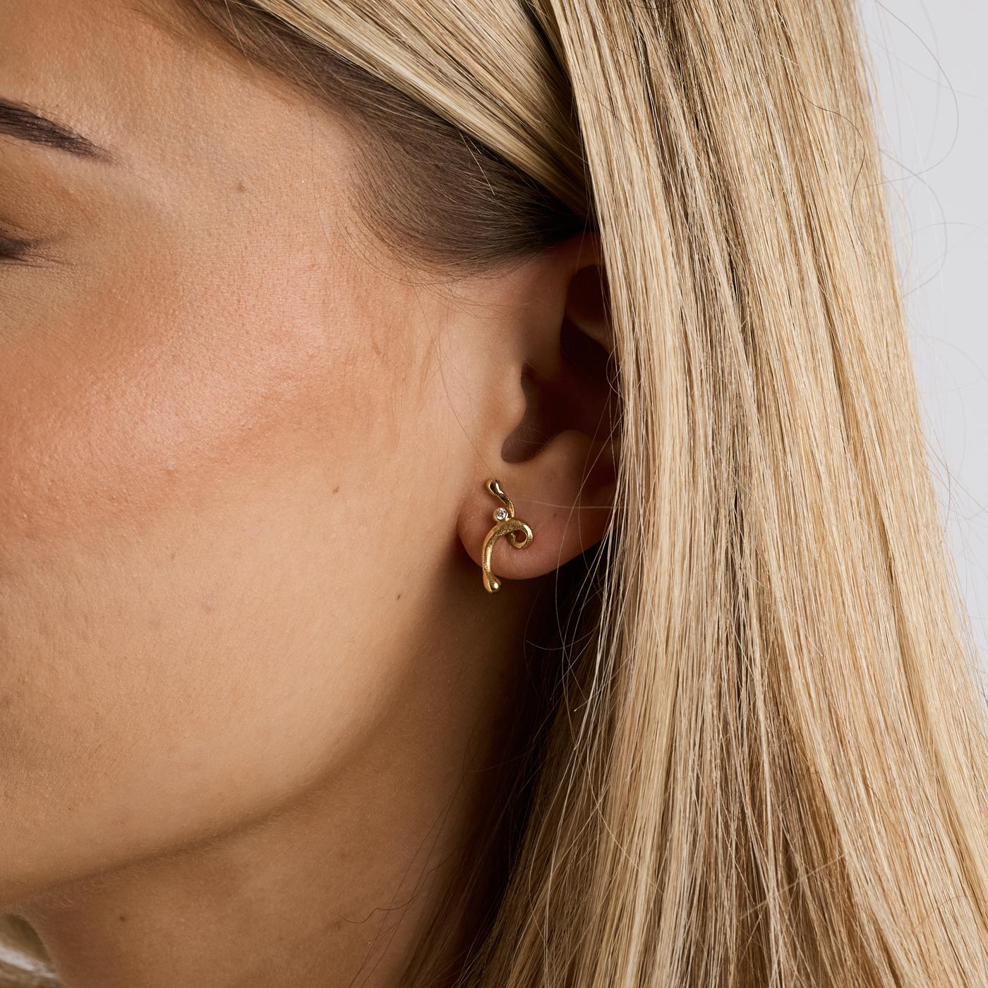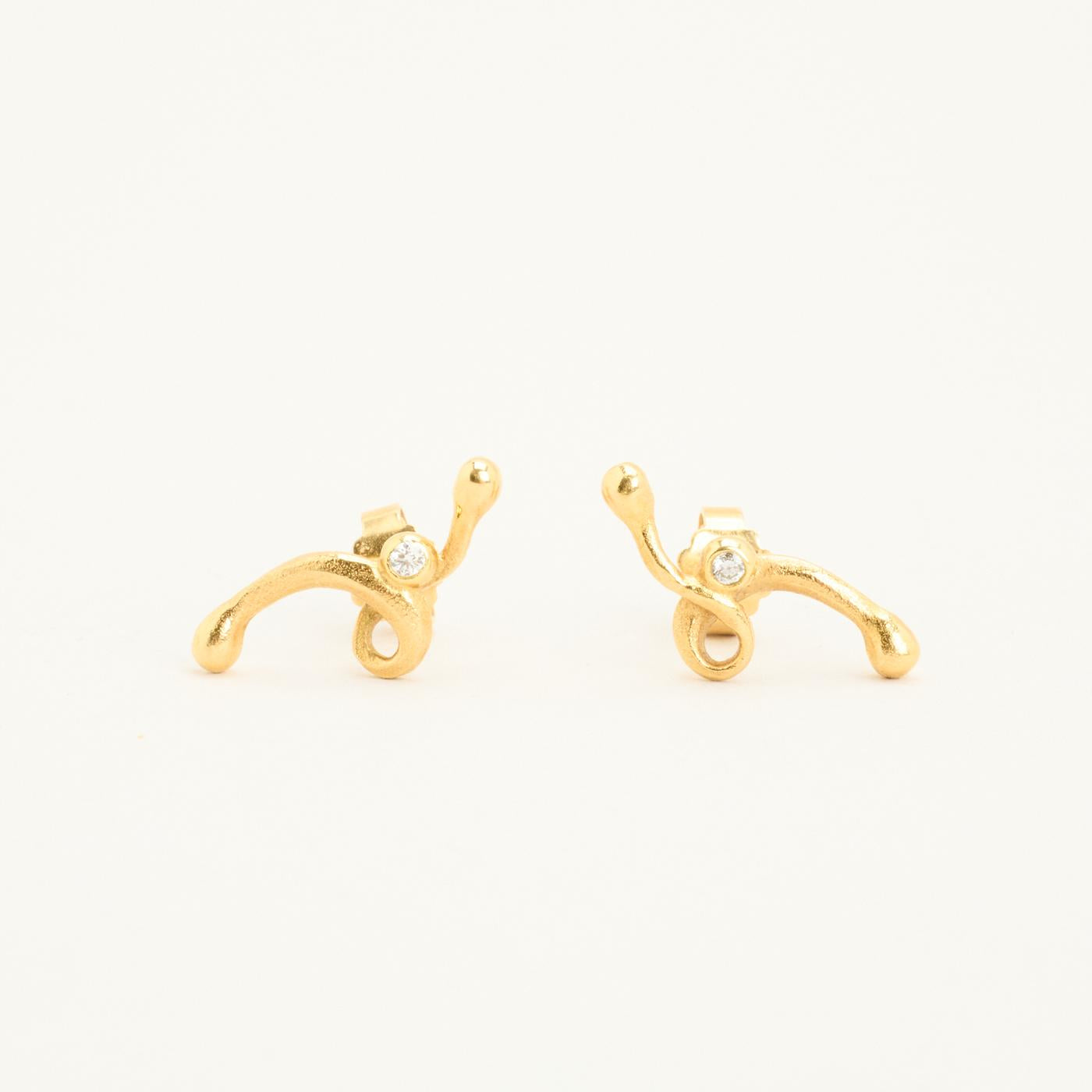 Øreringe med stik i 18K guld med diamanter (0.02 ct), 1.6 cm