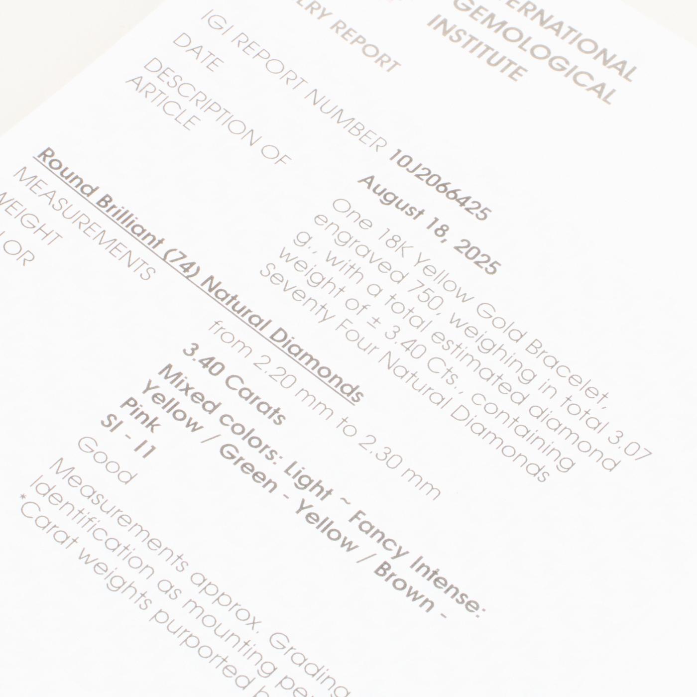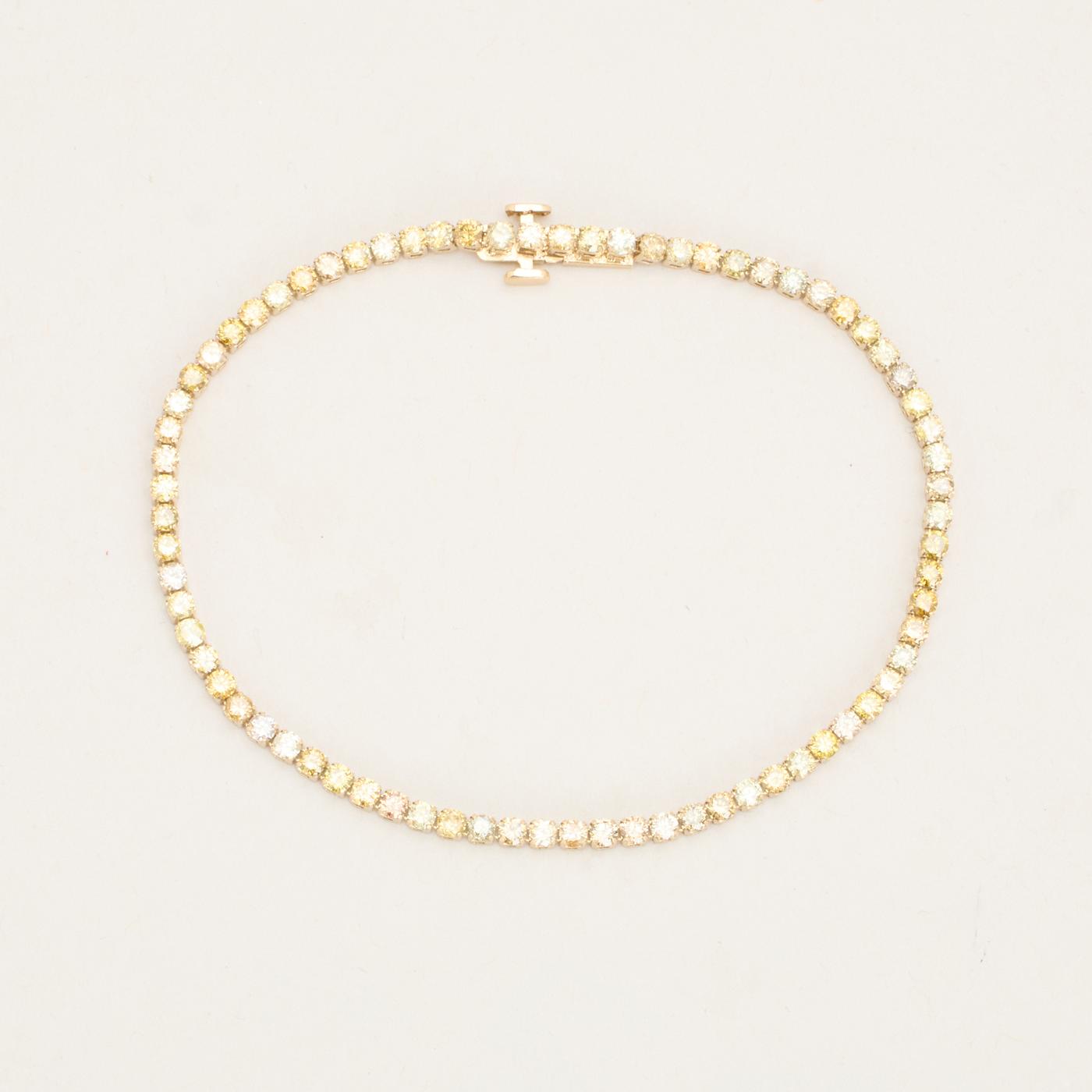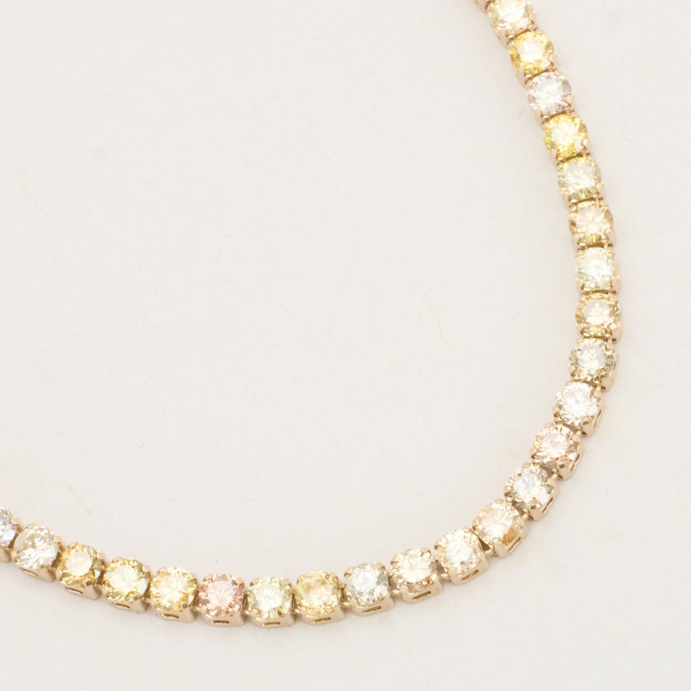 Diamanter: 6.80 ct. totalt fordelt på 74 naturlige diamanter. og 74 x 0.05 ct. Farve Light Yellow-Yellow. Klarhed SI-SI1 og Øvrige sten på i alt 3.40 ct.