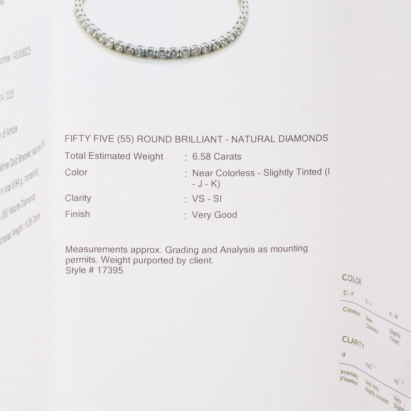 Tennisarmbånd i 14K hvidguld med diamanter (6,58 ct), 18 cm