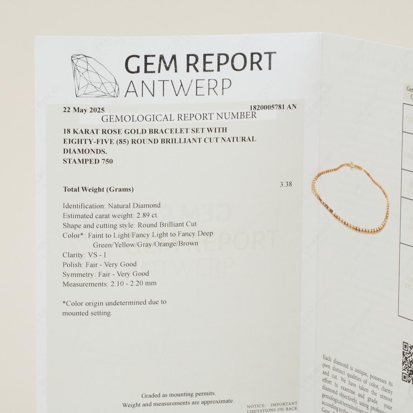 Model: Tennisarmbånd i 18K roséguld med diamanter (2.89 ct), 21 cm