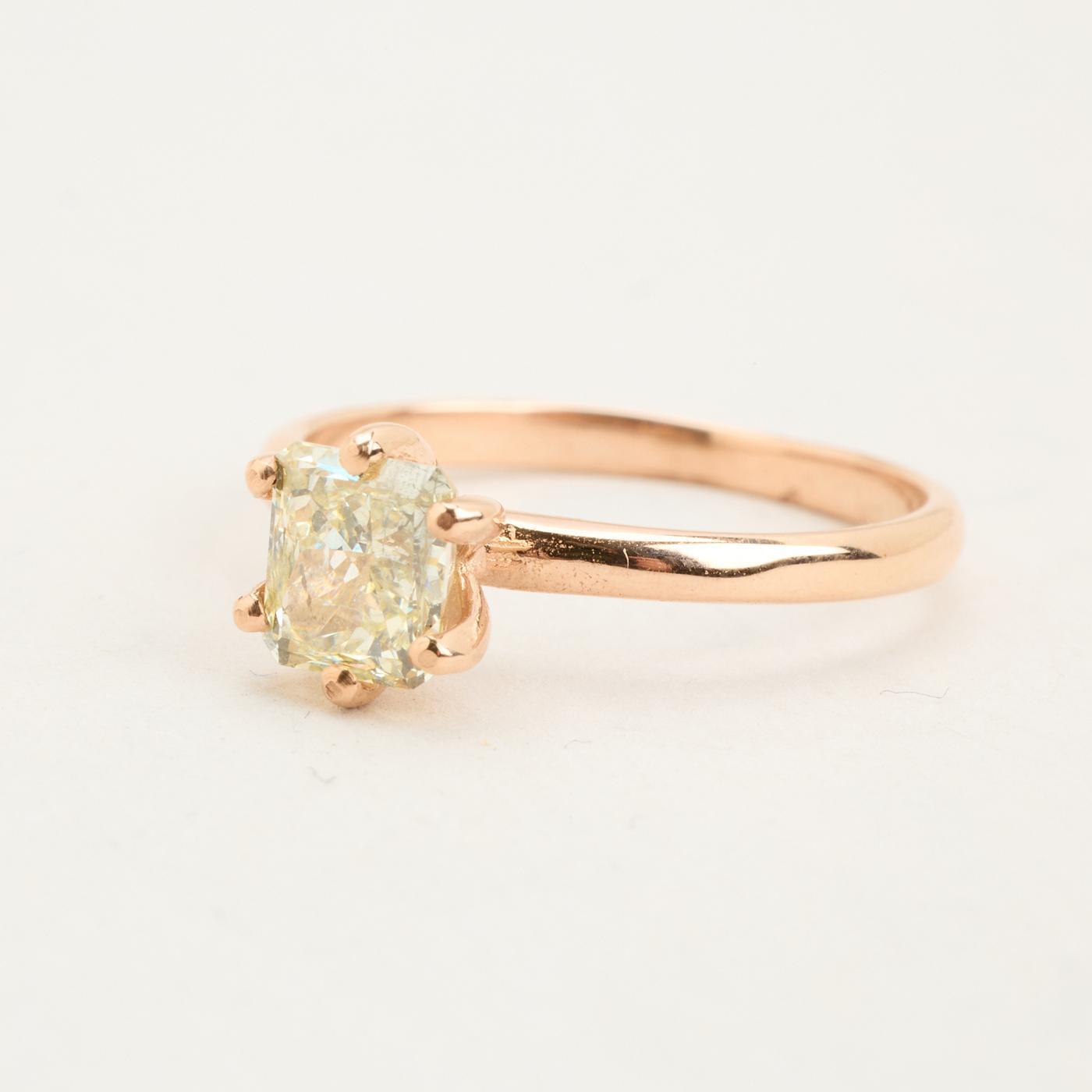 Solitairering i 14K roséguld med en diamant (0.93 ct), Str. 51