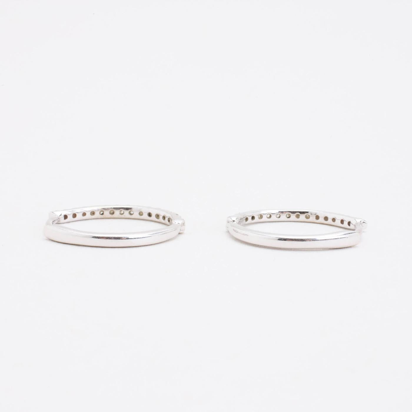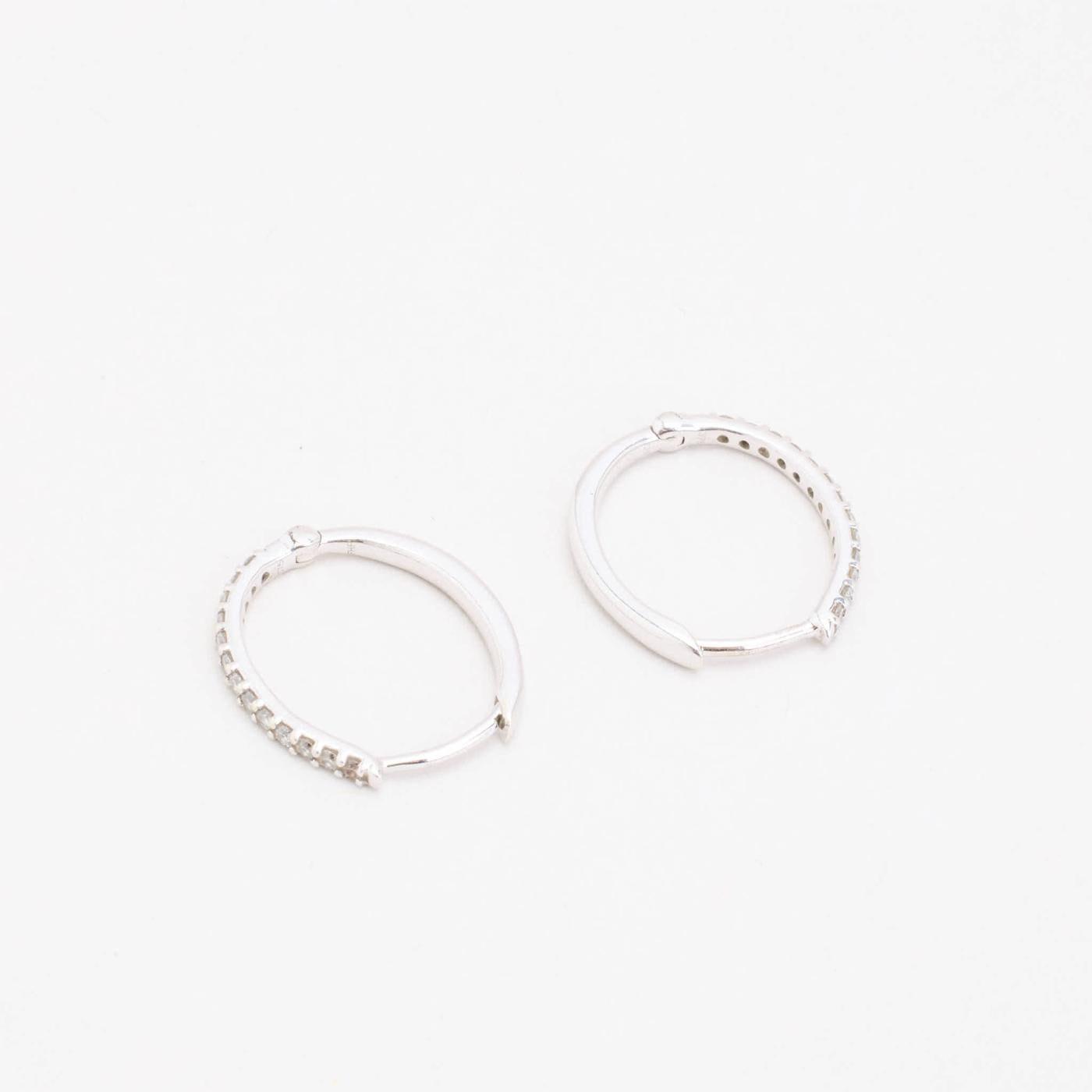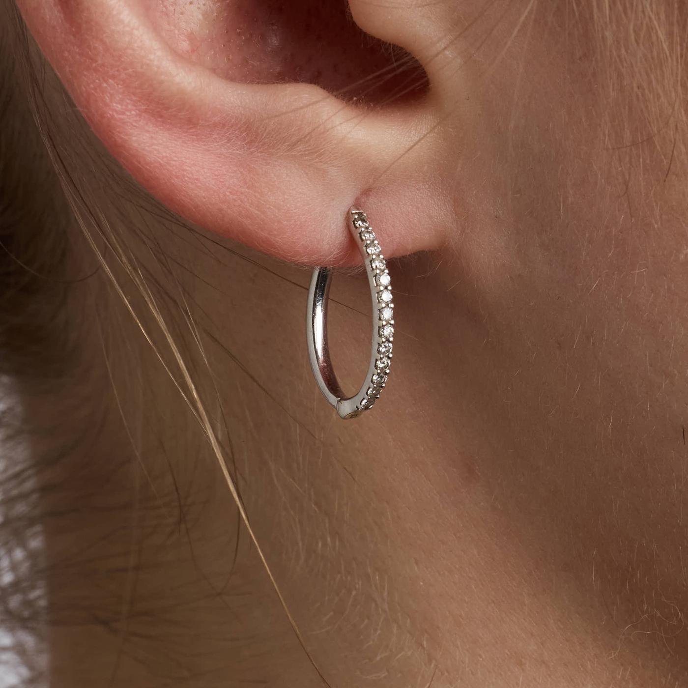 Creoler i 14K hvidguld med diamanter (0.27 ct), 1.6 cm