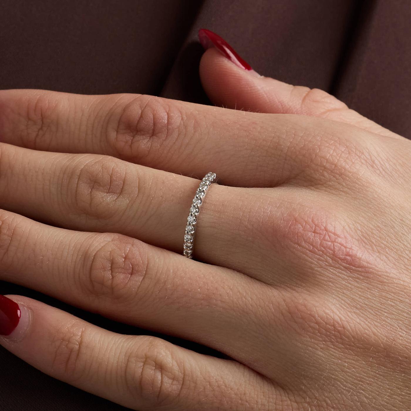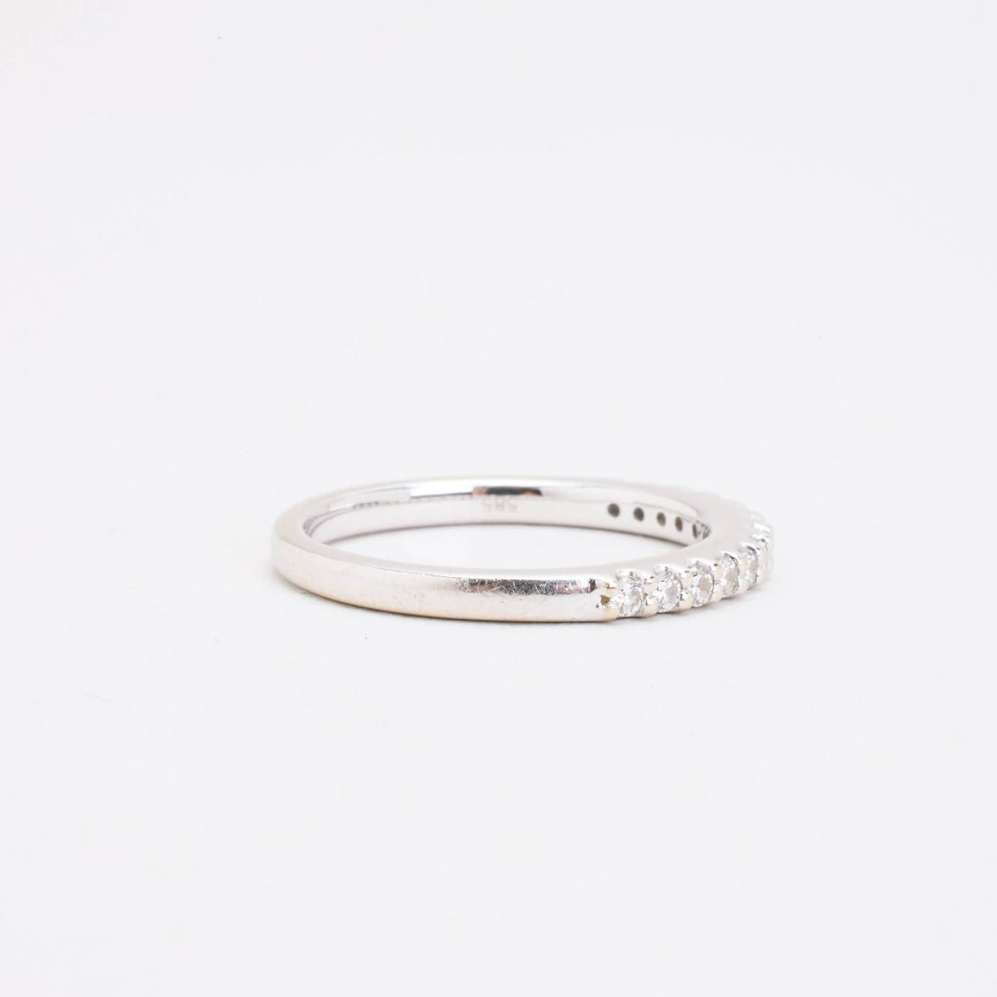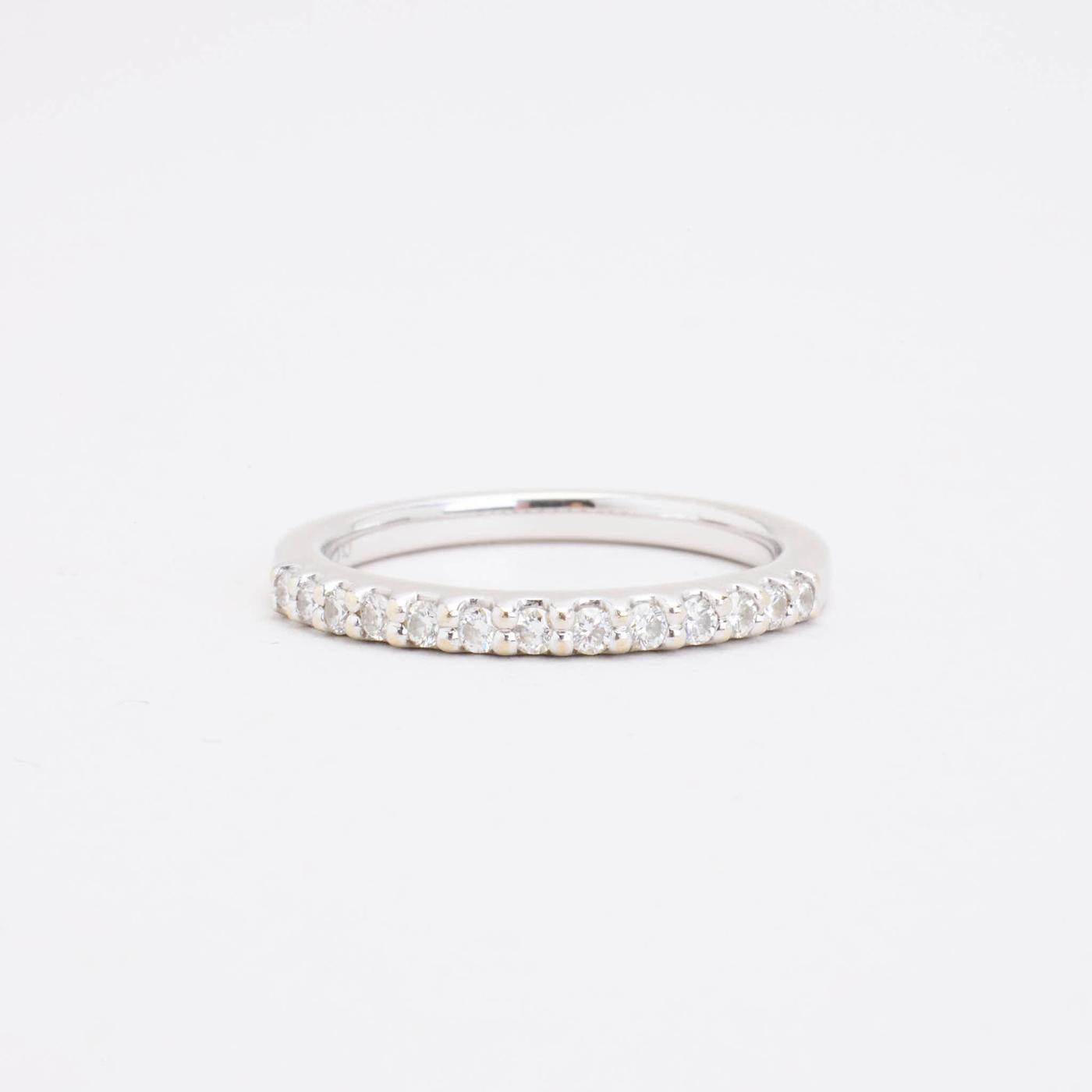 Alliancering i 14K hvidguld med diamanter (0.14 ct), Str. 53