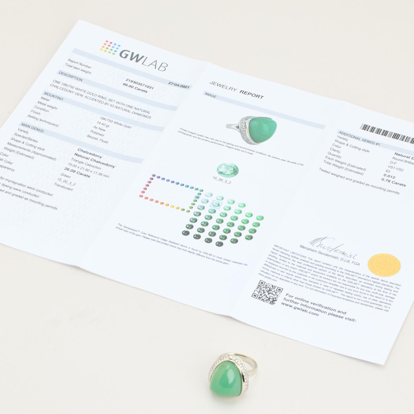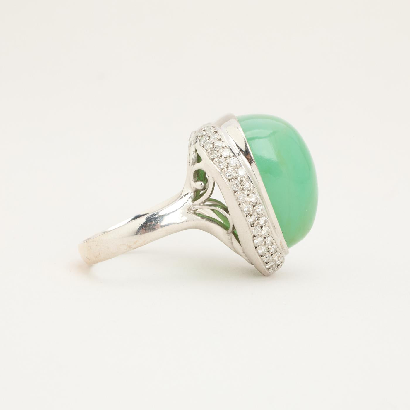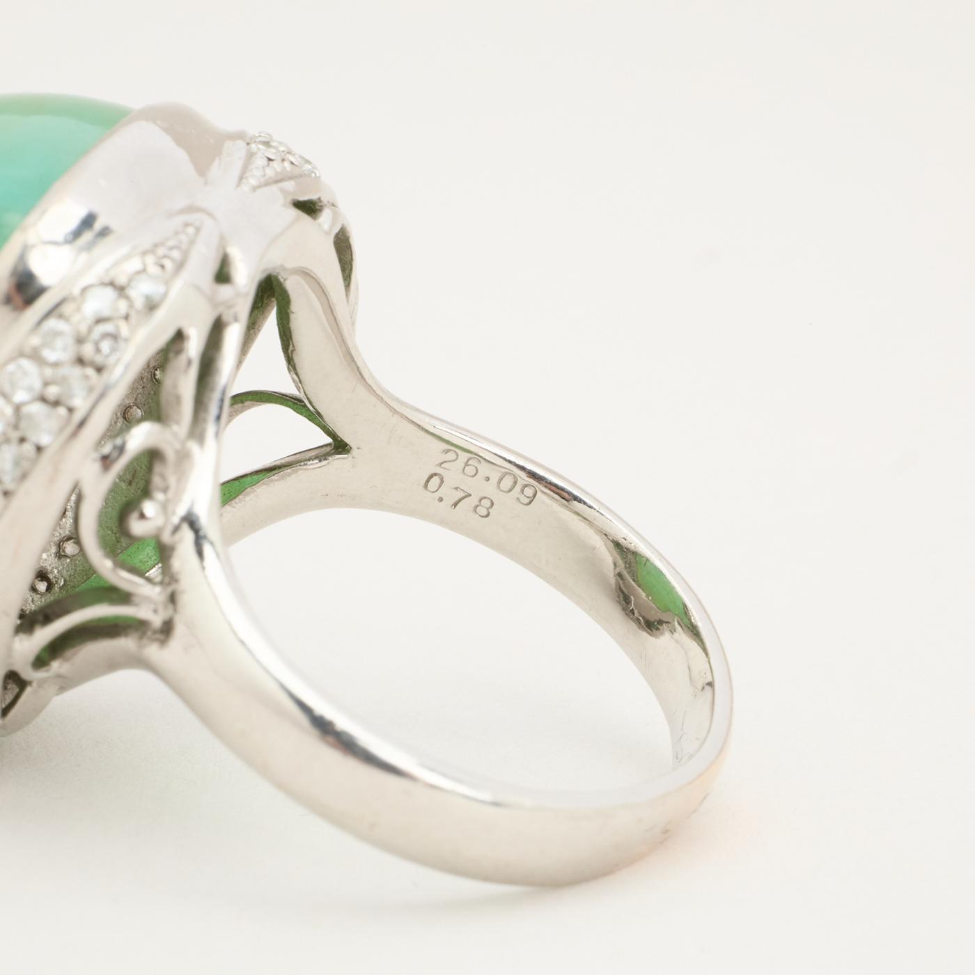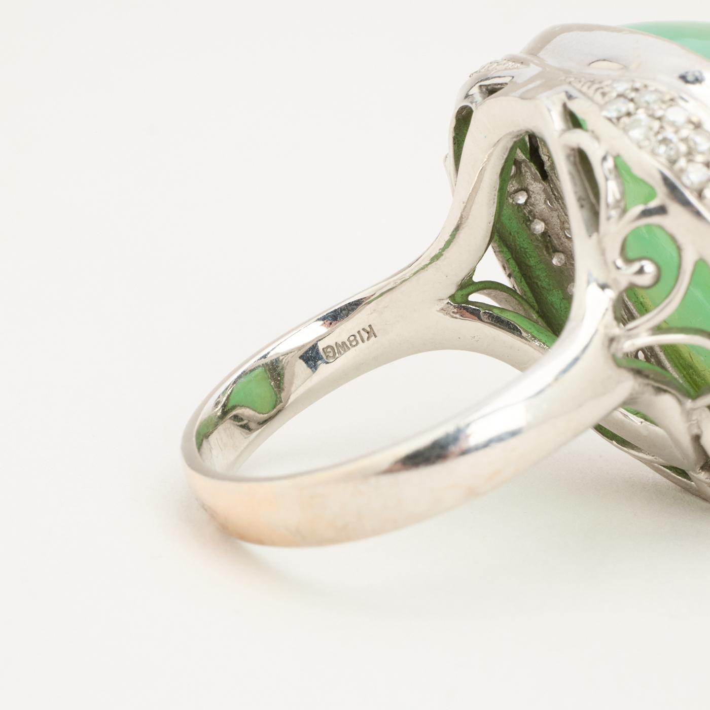 Cocktailring i 18K hvidguld med en kalcedon og diamanter, Str. 64