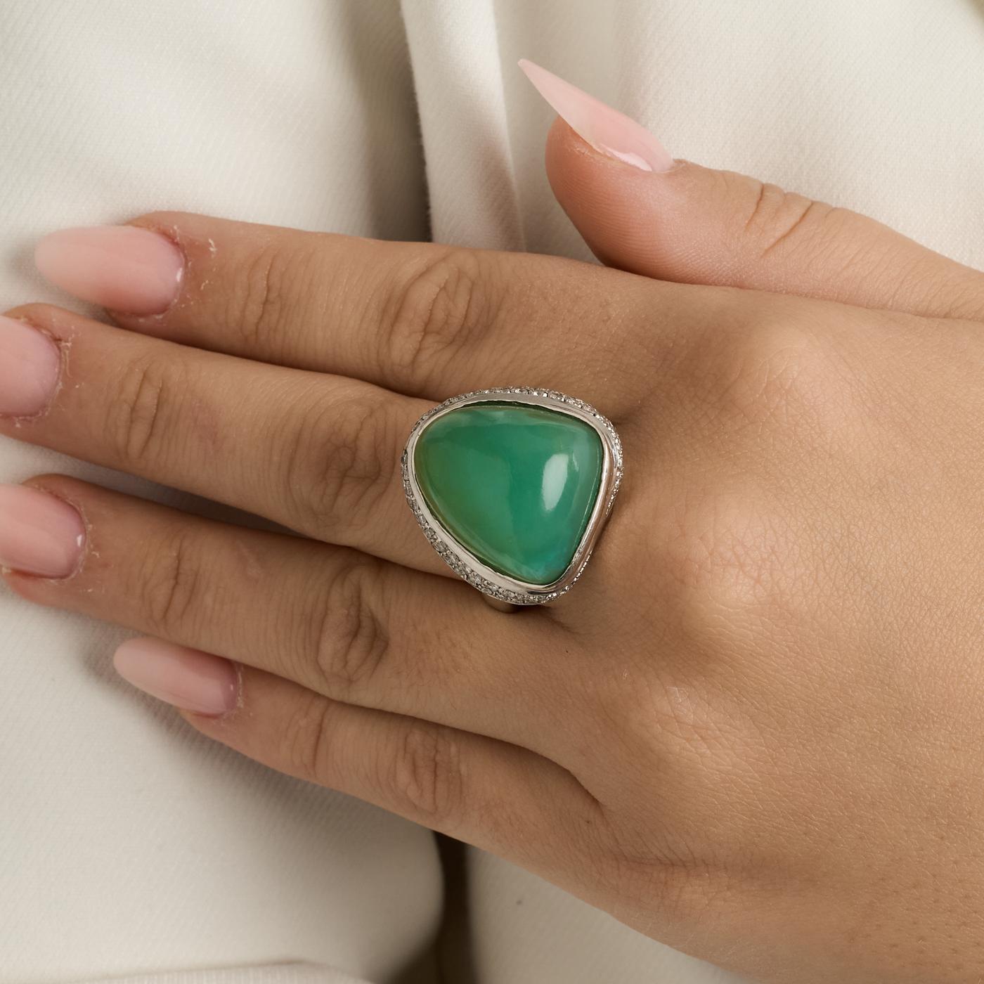Cocktail ring med diamant i 18 karat med en Kalcedon str. 64
