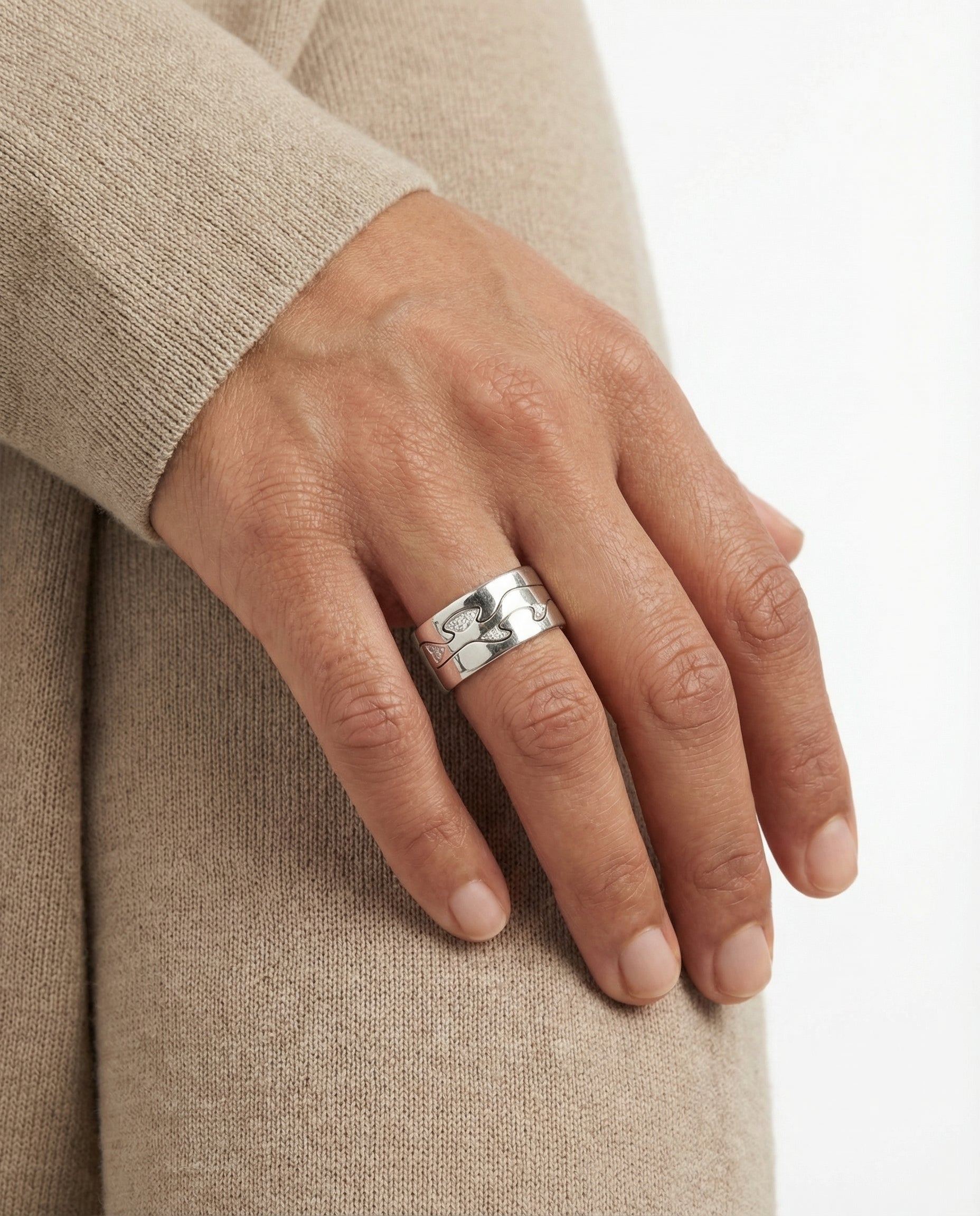 Georg Jensen Fushion Ring med diamant (0.28 ct) i 18K hvidguld str. 52, 16.63 g
