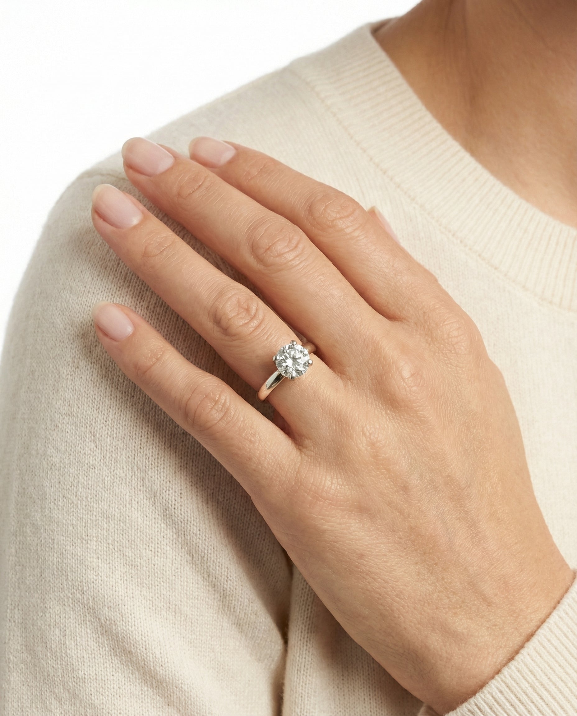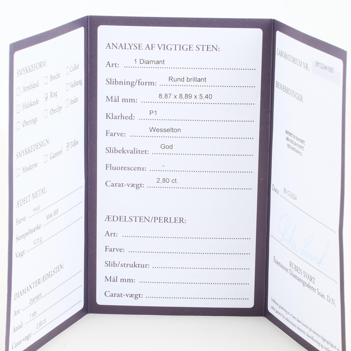 Solitairering i 14K hvidguld med en diamant (2.8 ct), Str. 52