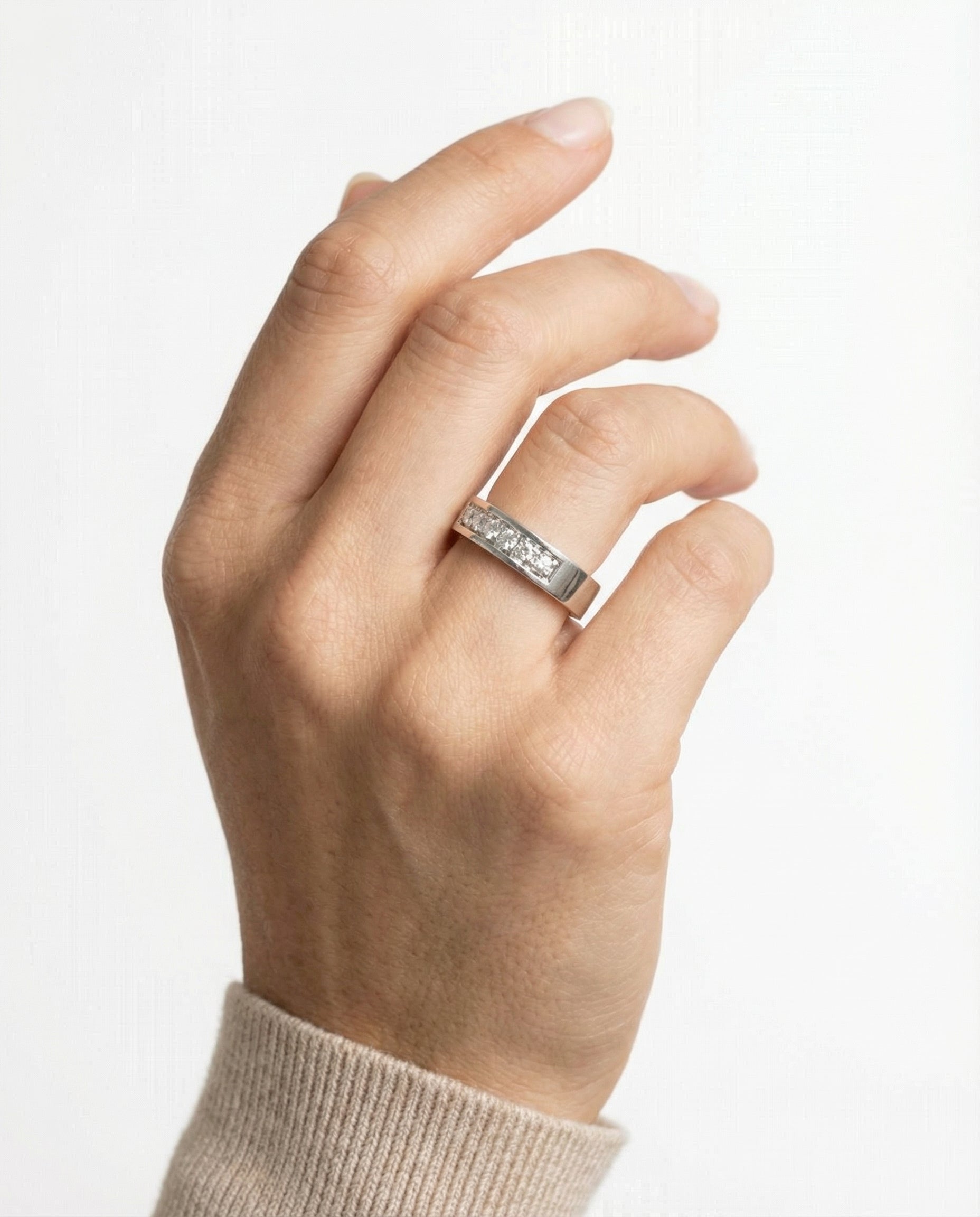 Alliancering i 14K hvidguld med diamanter (0.83 ct), Str. 54