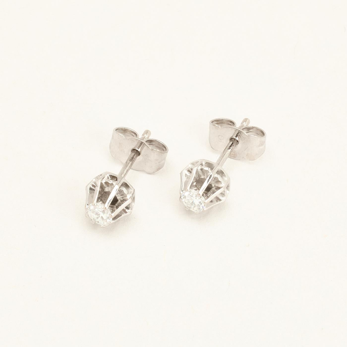Solitaire øreringe med diamant (0.32 ct) i 14K hvidguld, 0.6 cm,