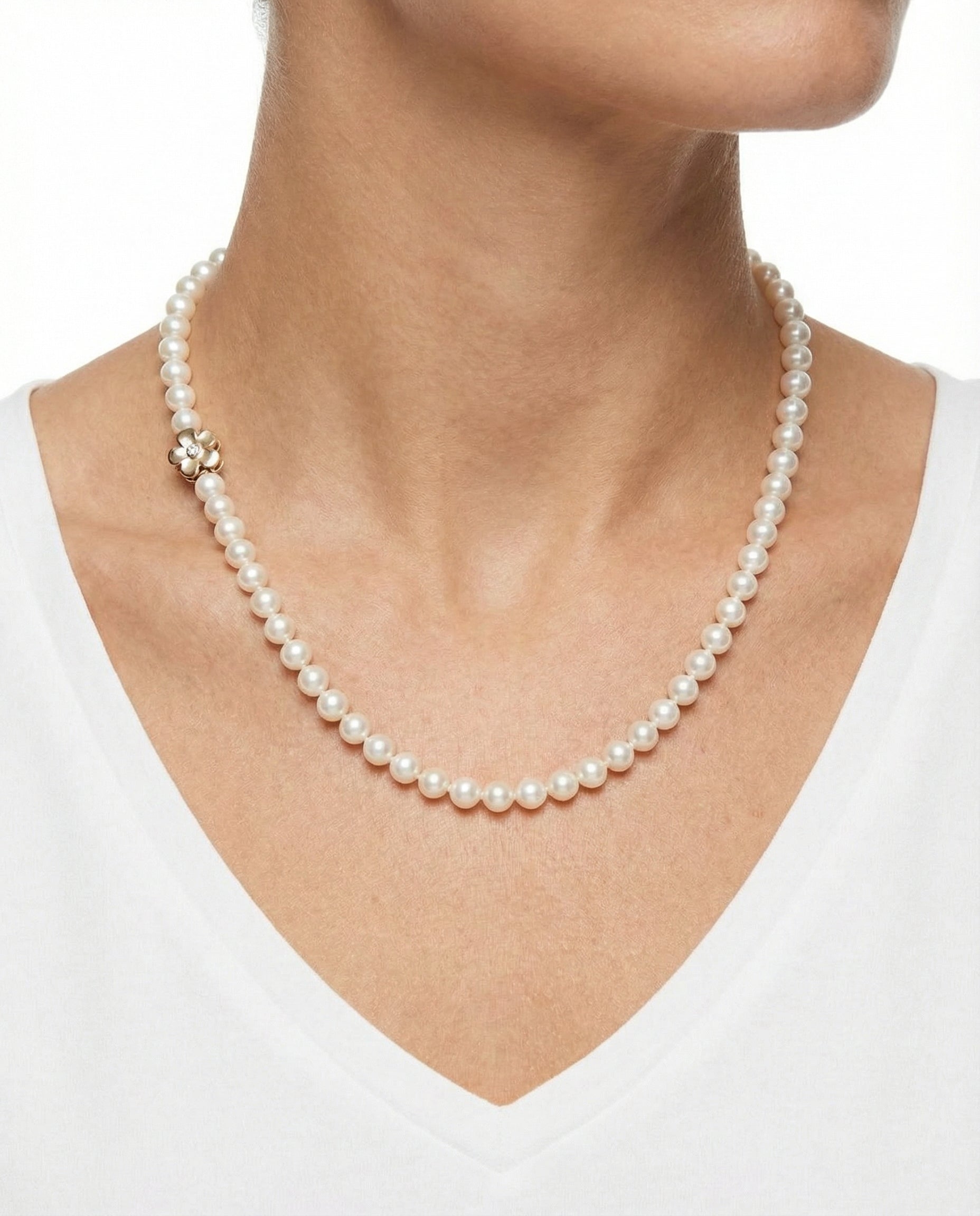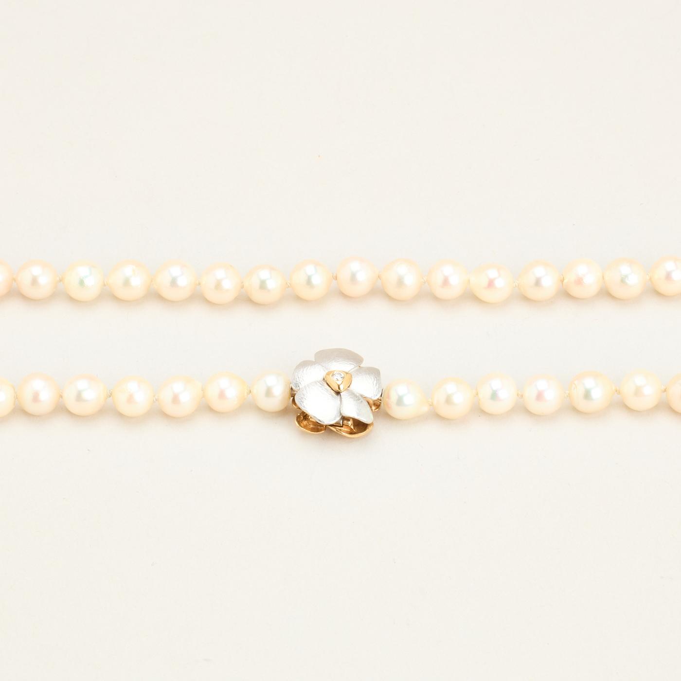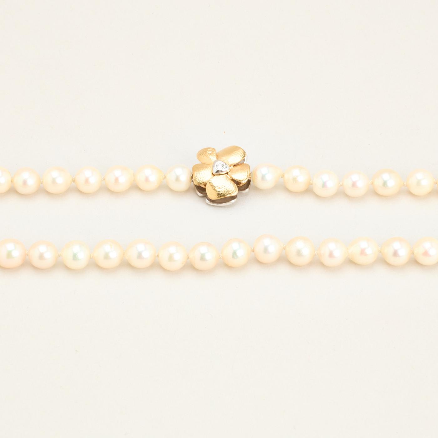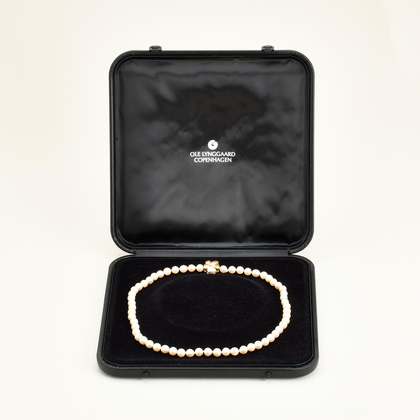 Ole Lynggaard Perlehalskæde med diamant (0.08 ct) i 18K guld og hvidguld med en perle, 45 cm, 29.75 g