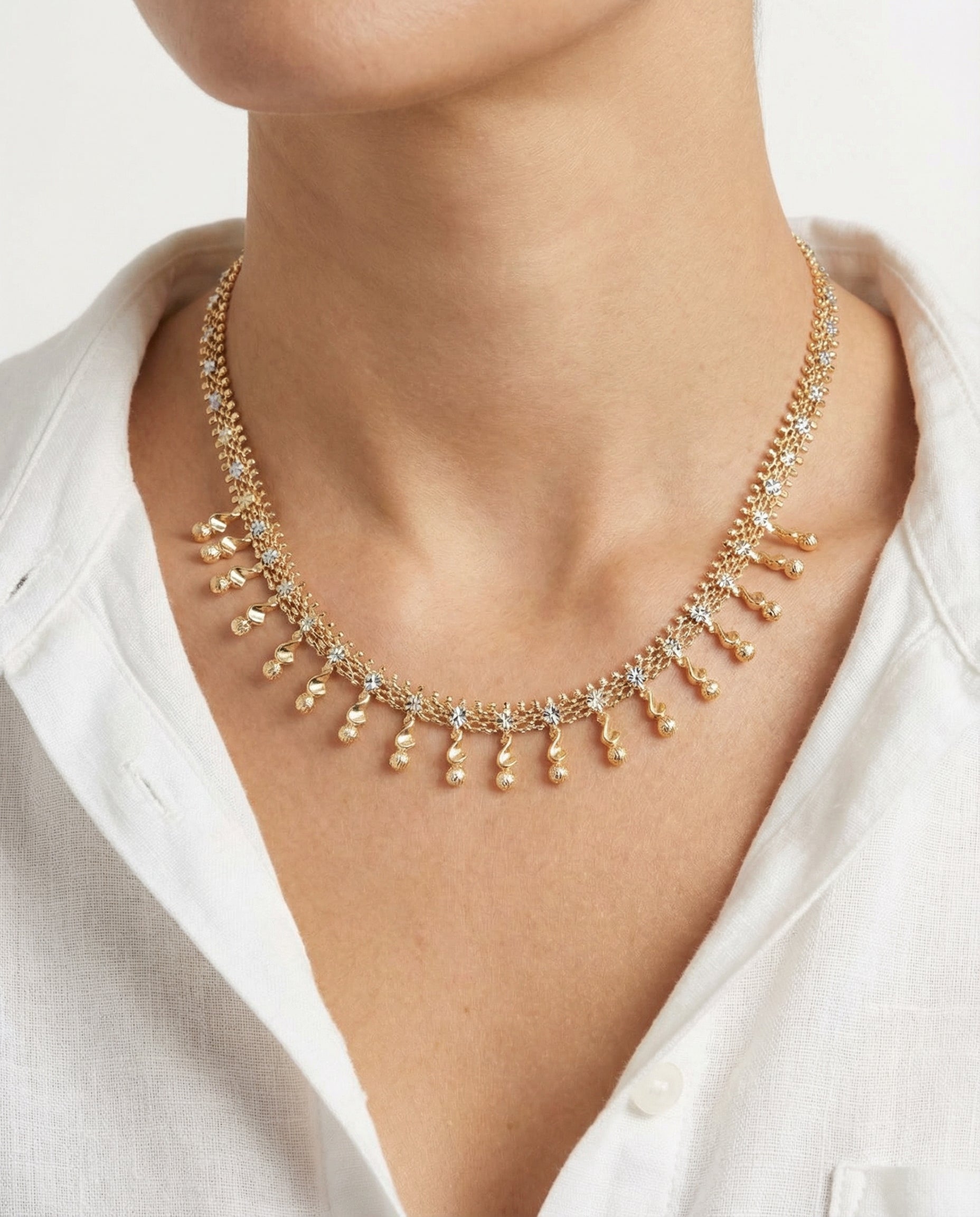 Collier i 18K guld og hvidguld, 44 cm, 24.75 g