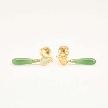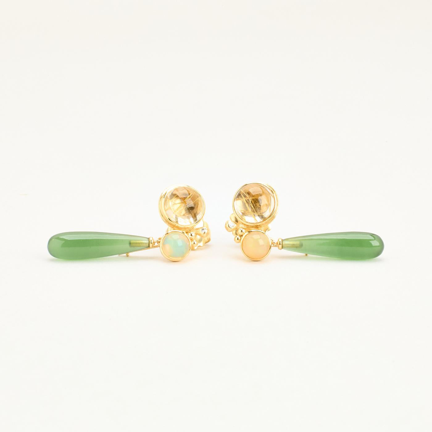 Ole Lynggaard Lotus Ørehængere med diamant (0.02 ct) i 18K guld med rutilkvarts, turmalin og opal, 3.5 cm,