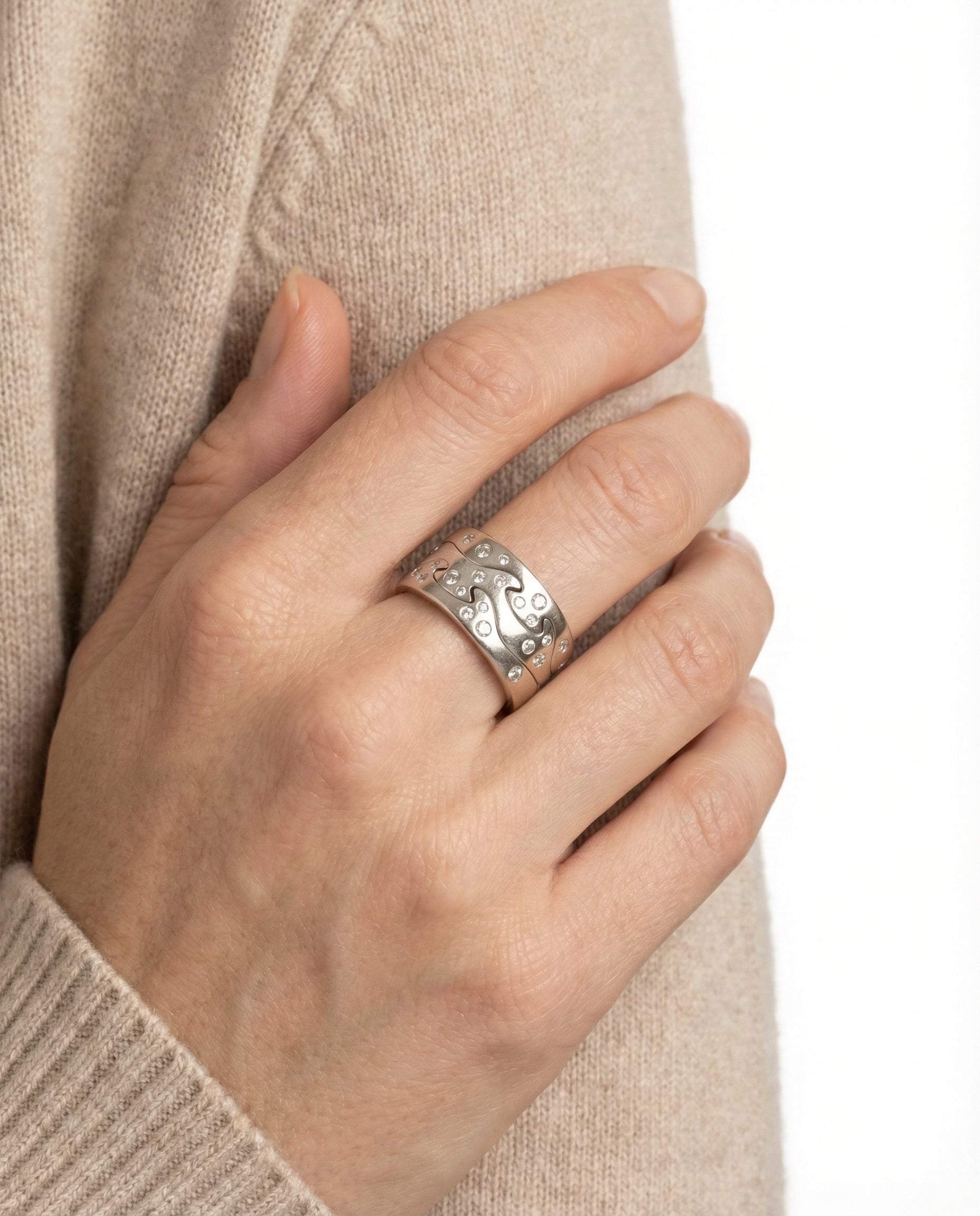Georg Jensen Fusion ring i hvidguld med diamanter (0,48 ct), Str. 54