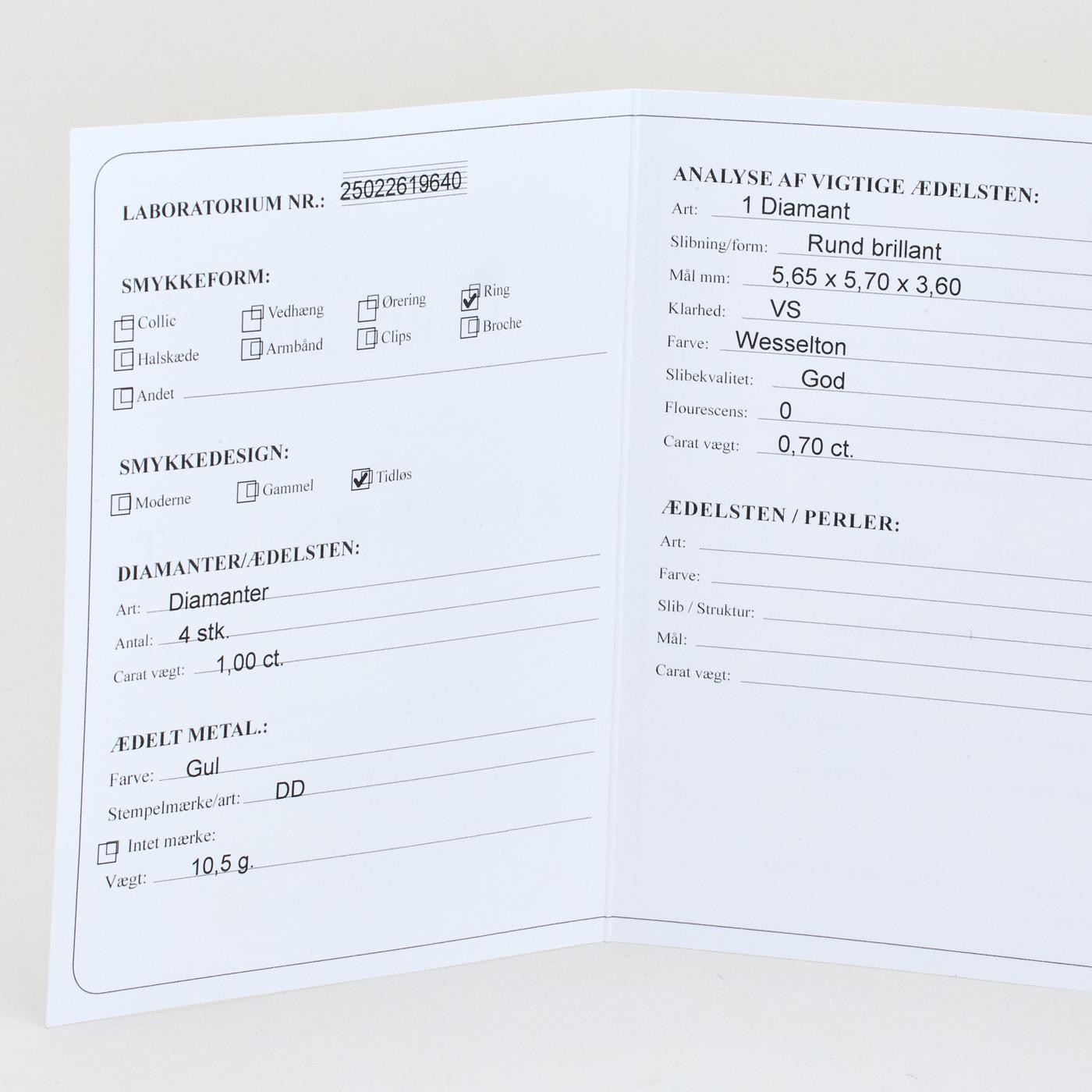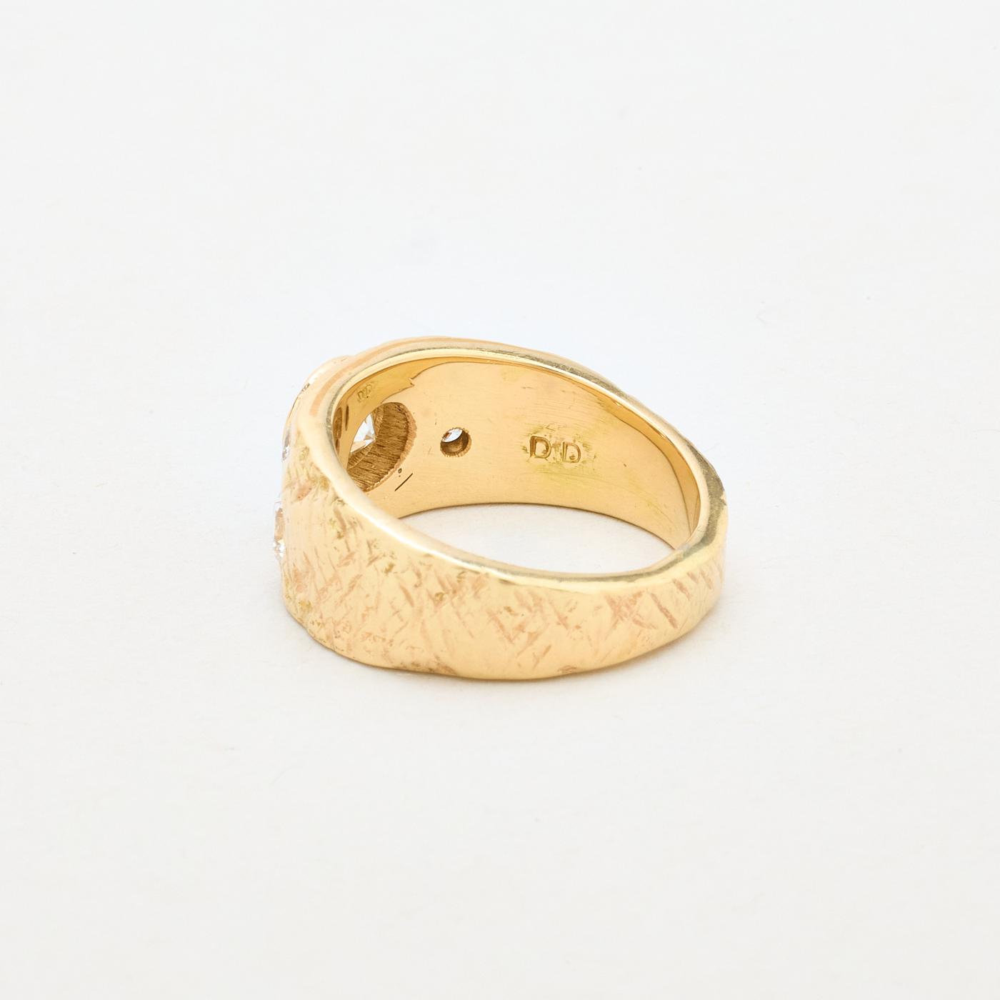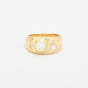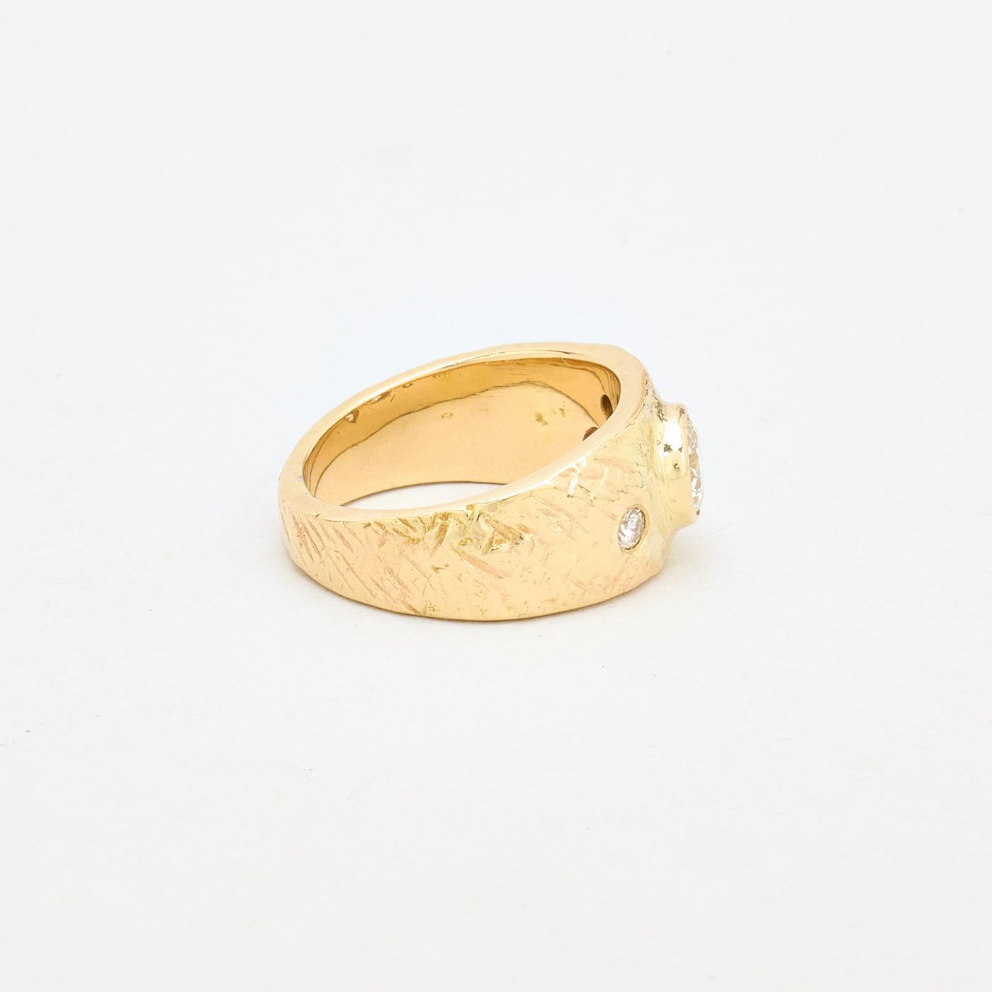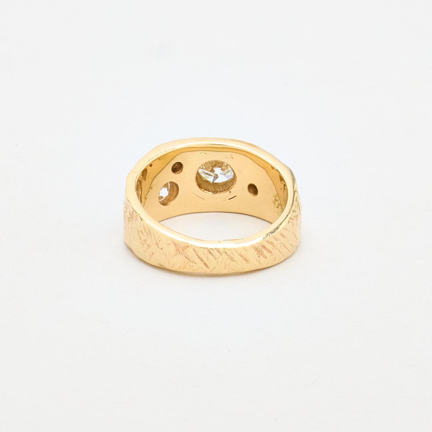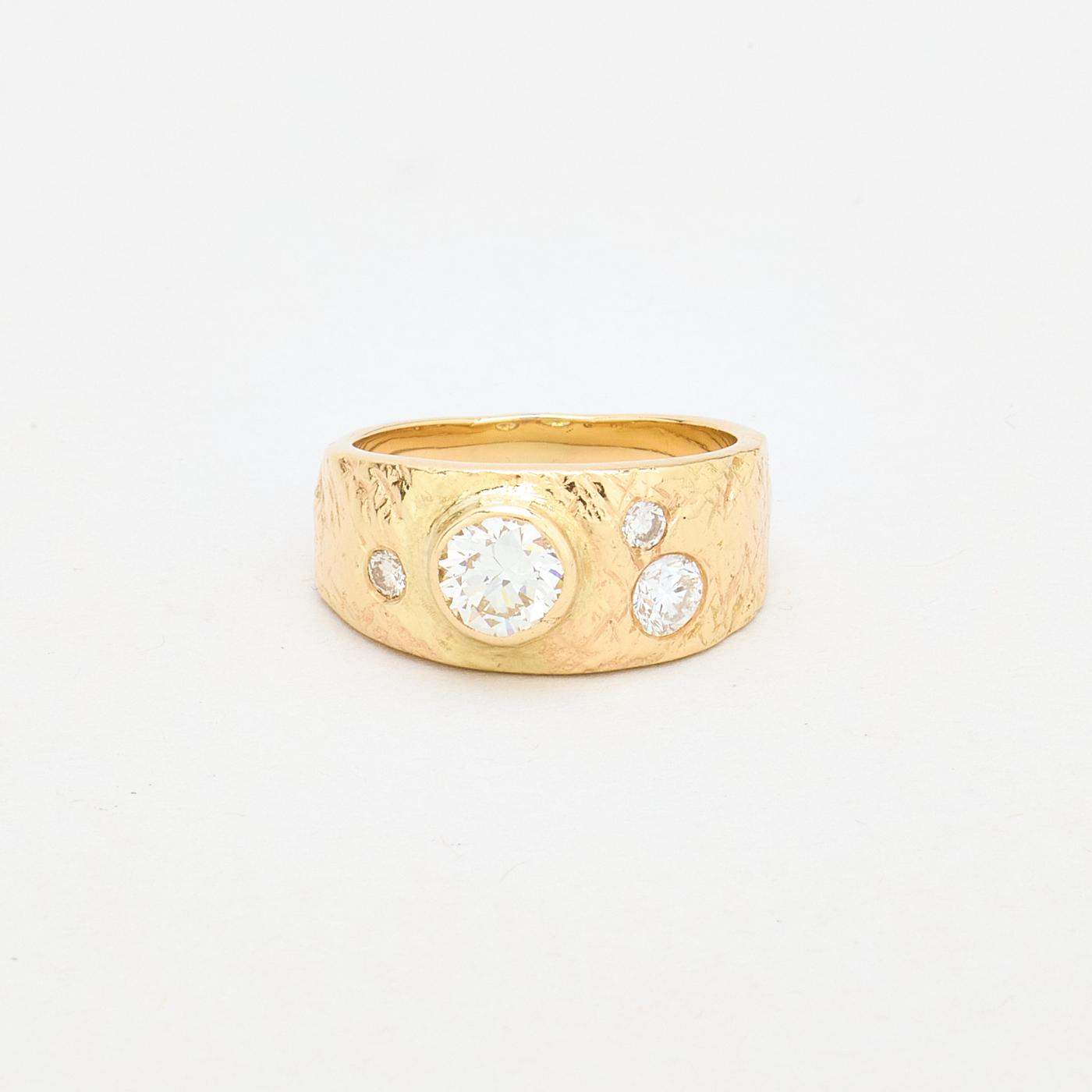 Hammerslået Gypsyring i 14 kt guld med flere diamanter (1 ct), Str. 54