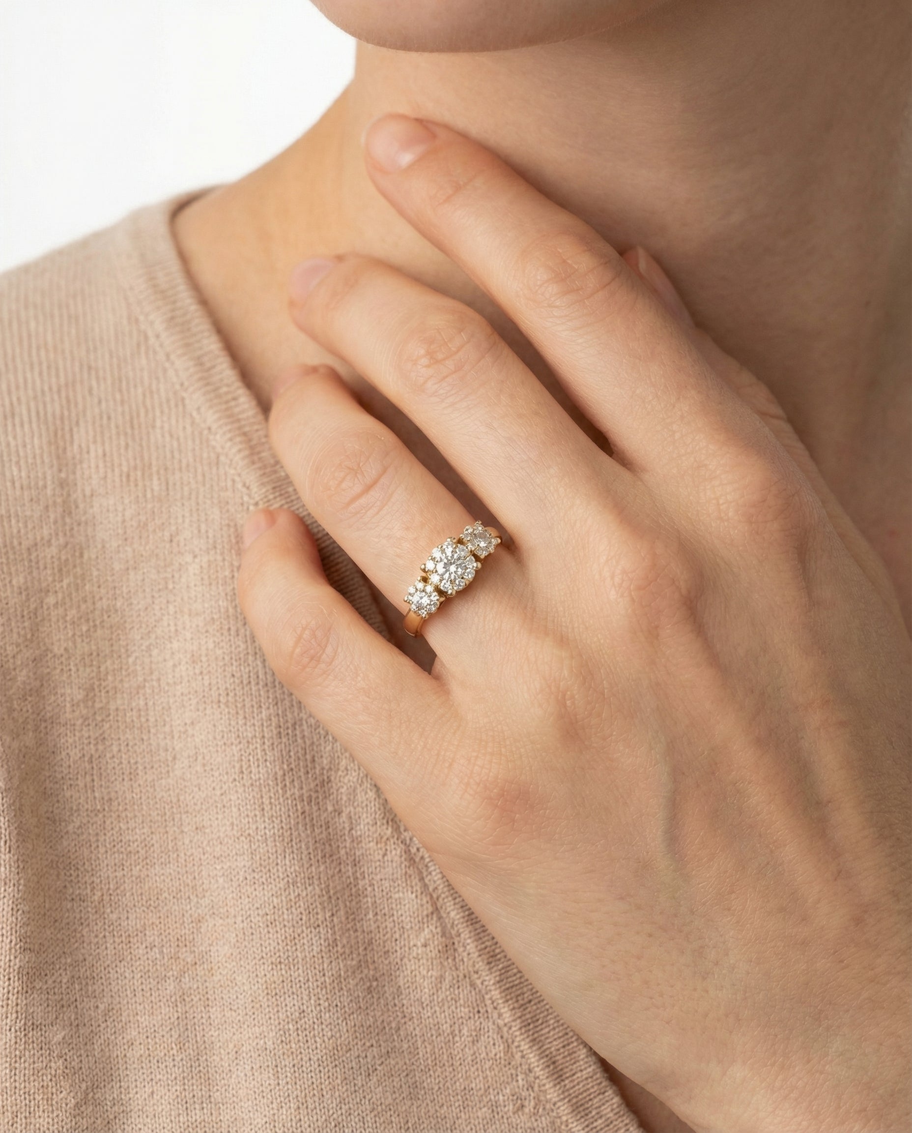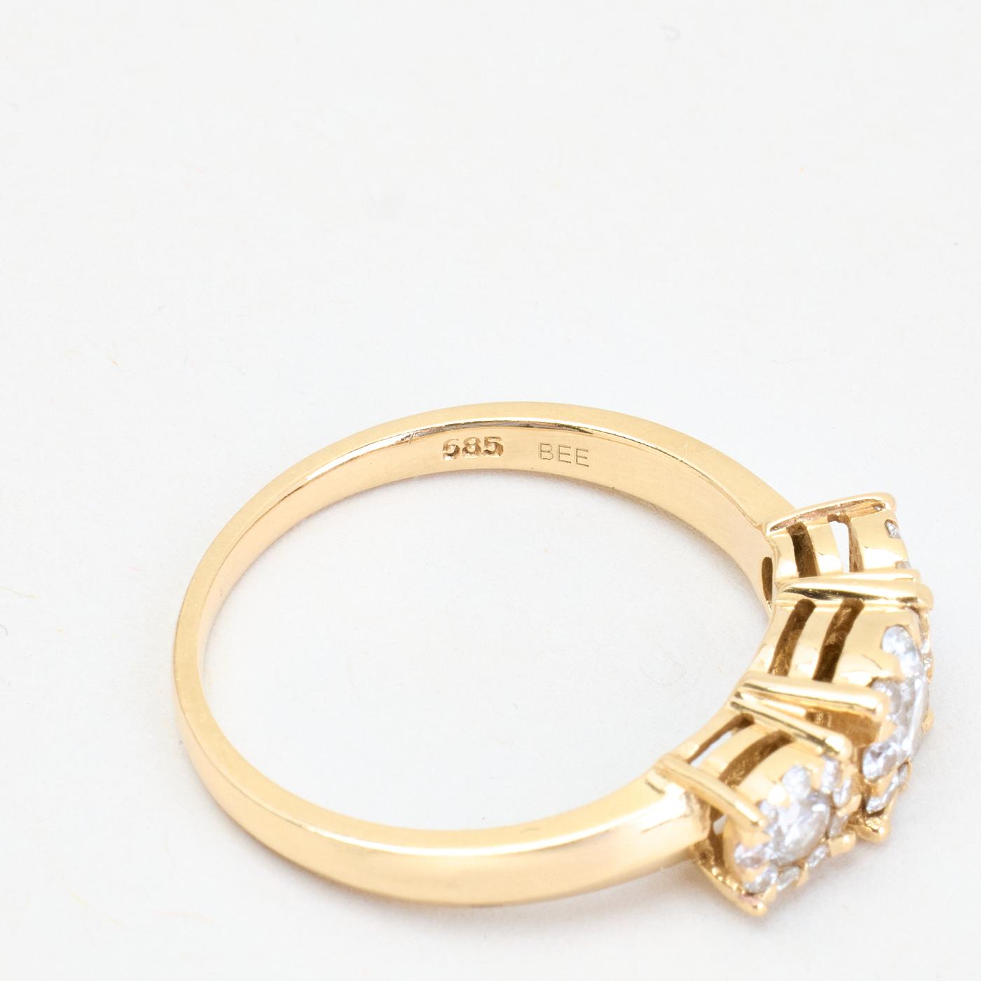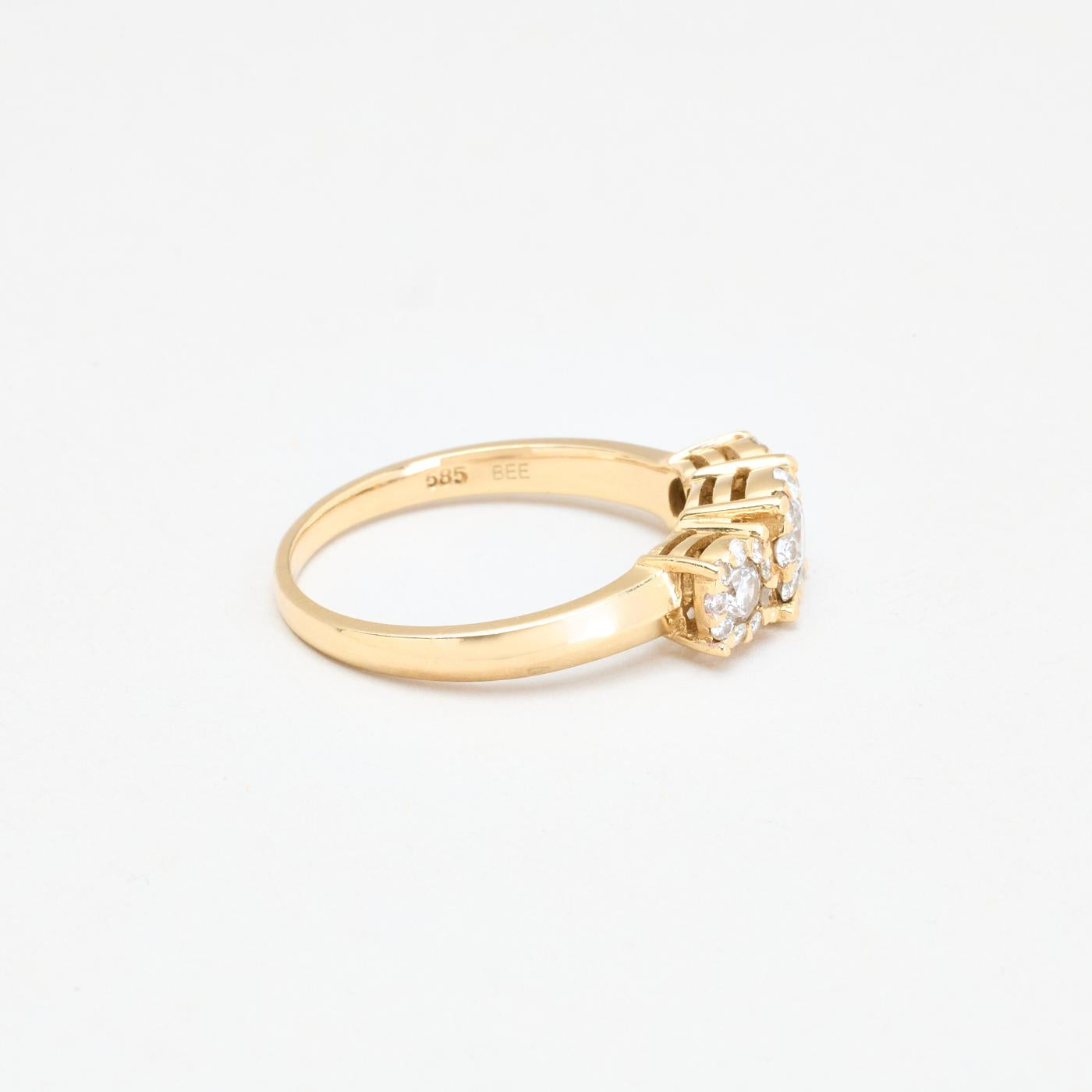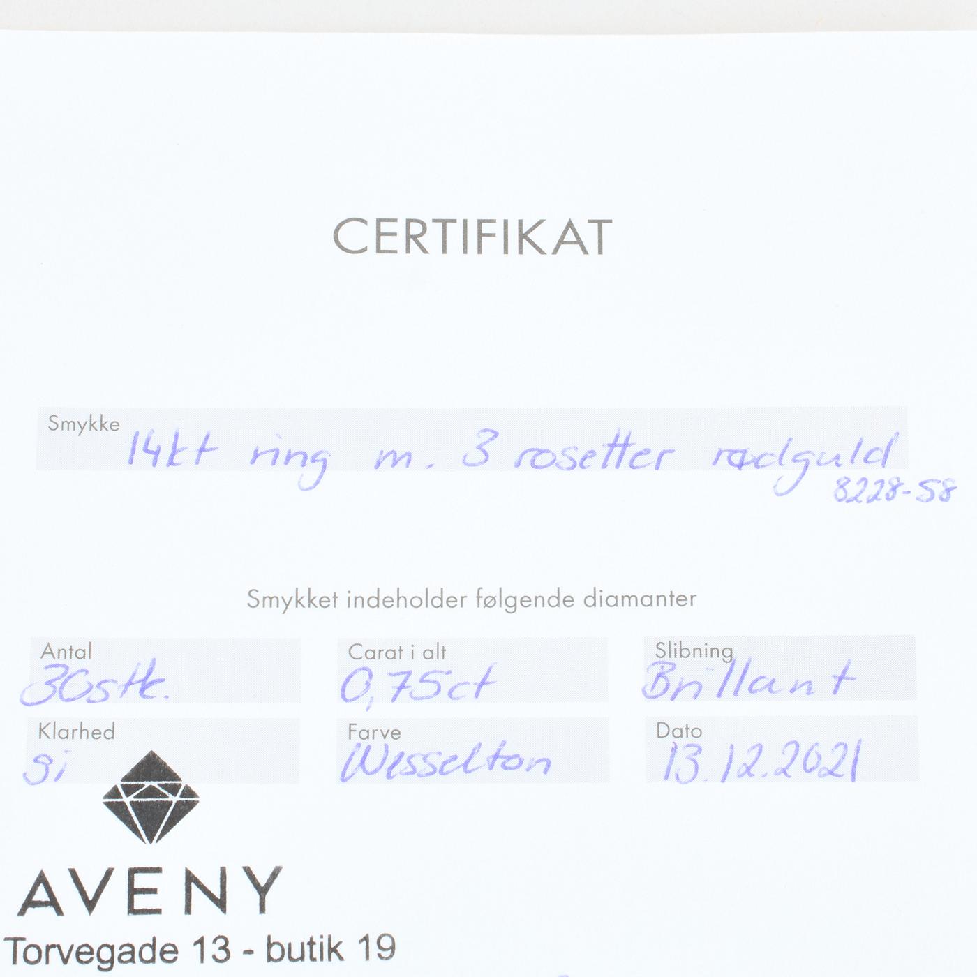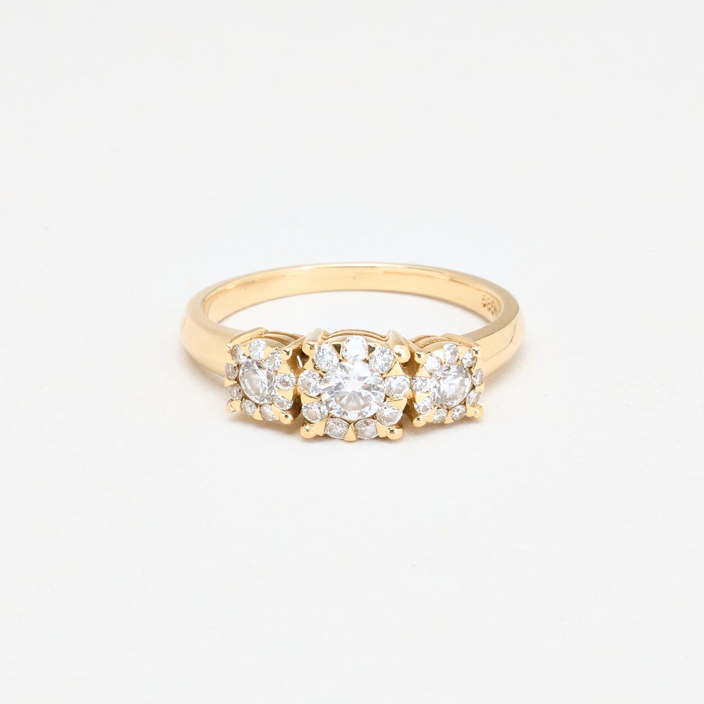 Tre stens Roset ring i 14K guld med diamanter (0,75 ct), str. 57