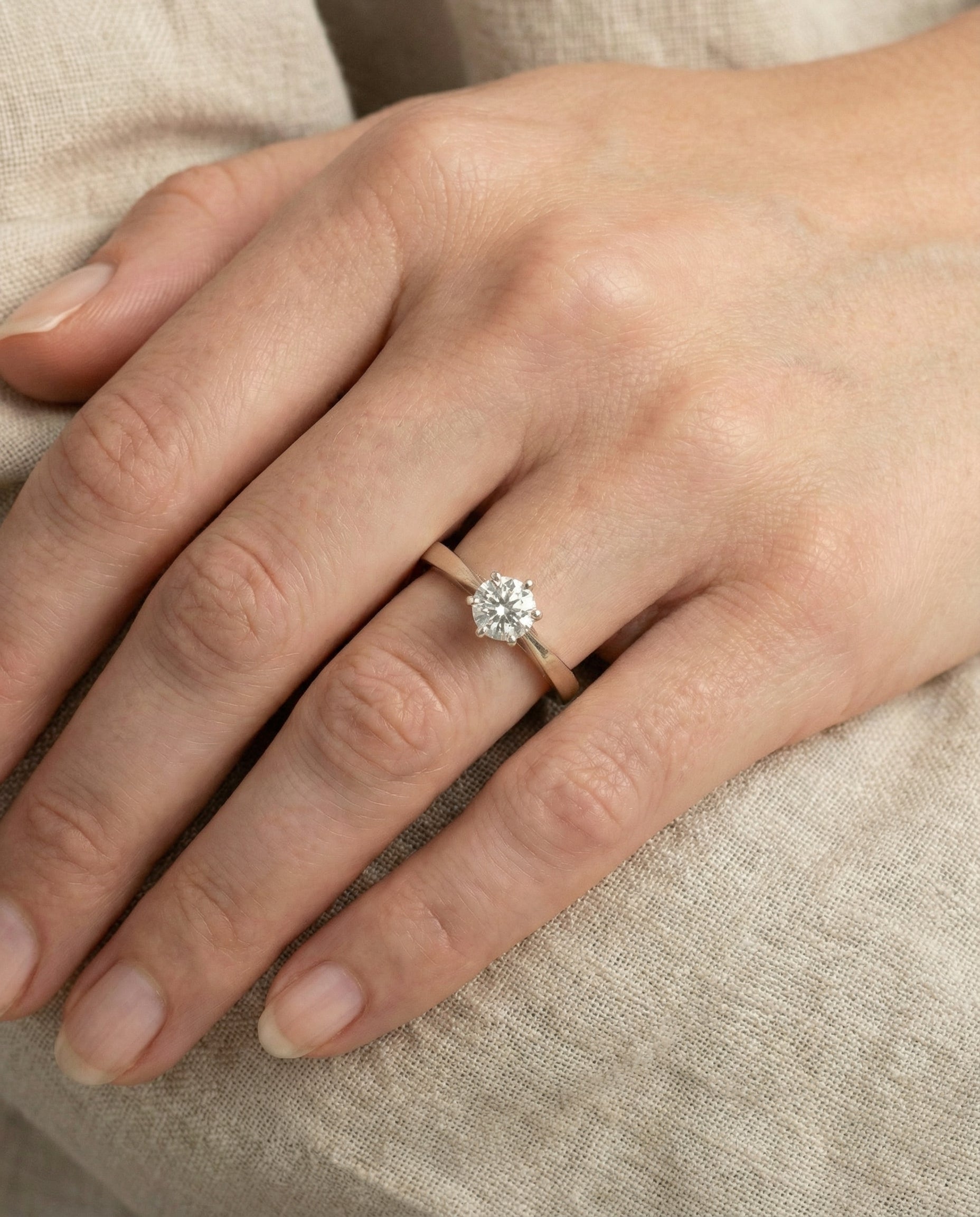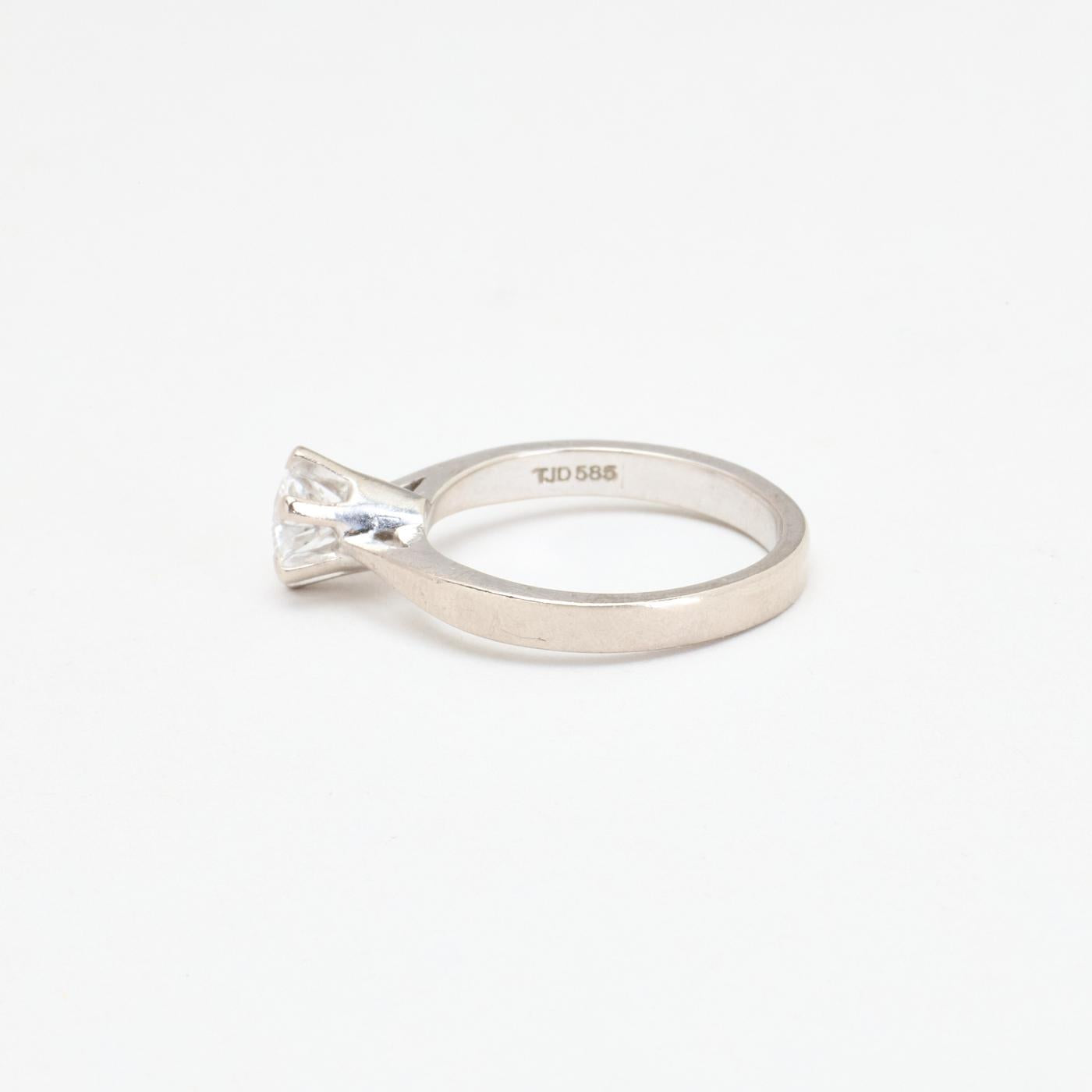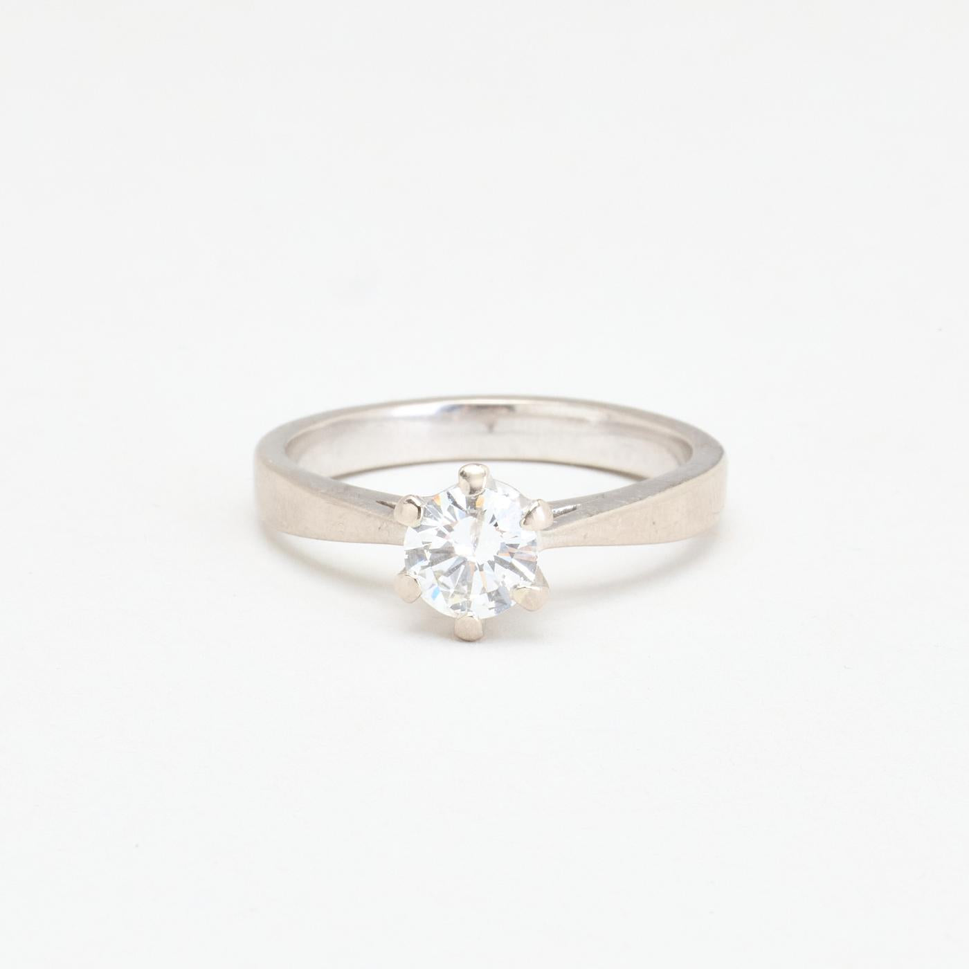 Klassisk soliatire ring i 14K hviguld med en diaamant (0,87 ct), str. 61