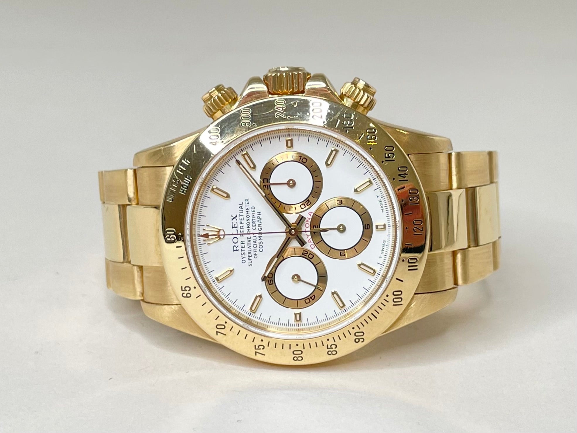 Super fint eksemplar af Rolex Daytona i fuld guld, med det legendariske Zenith Værk.Varenummer: KG63