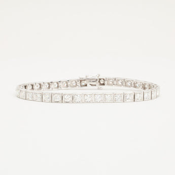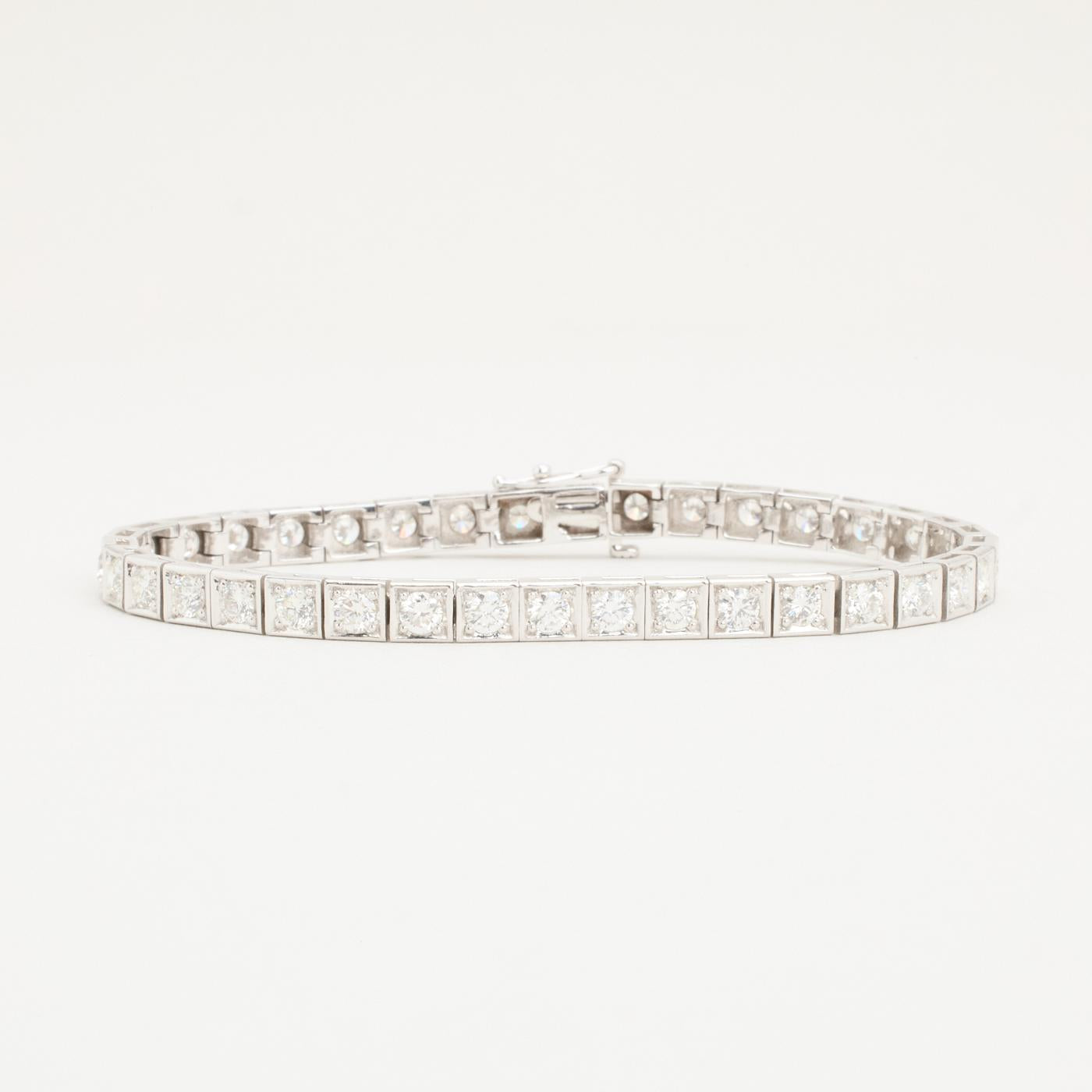 Tennisarmbånd i 18 karat hvidguld med 37 brillantslebne diamanter (5,92 ct), 18 cm, kasselås med sikkerhedsarm